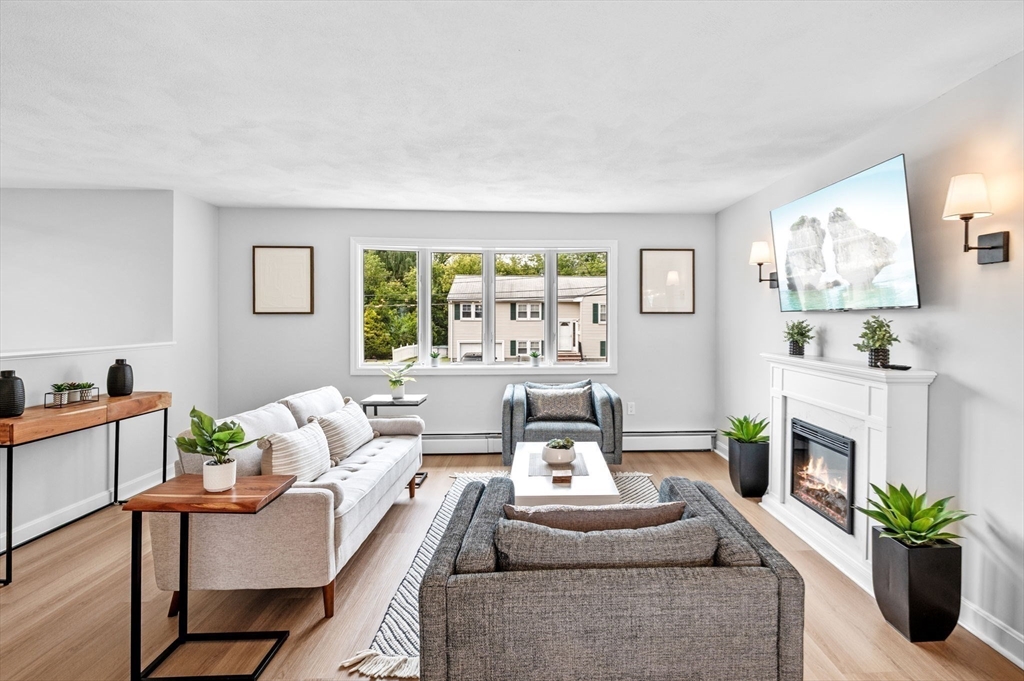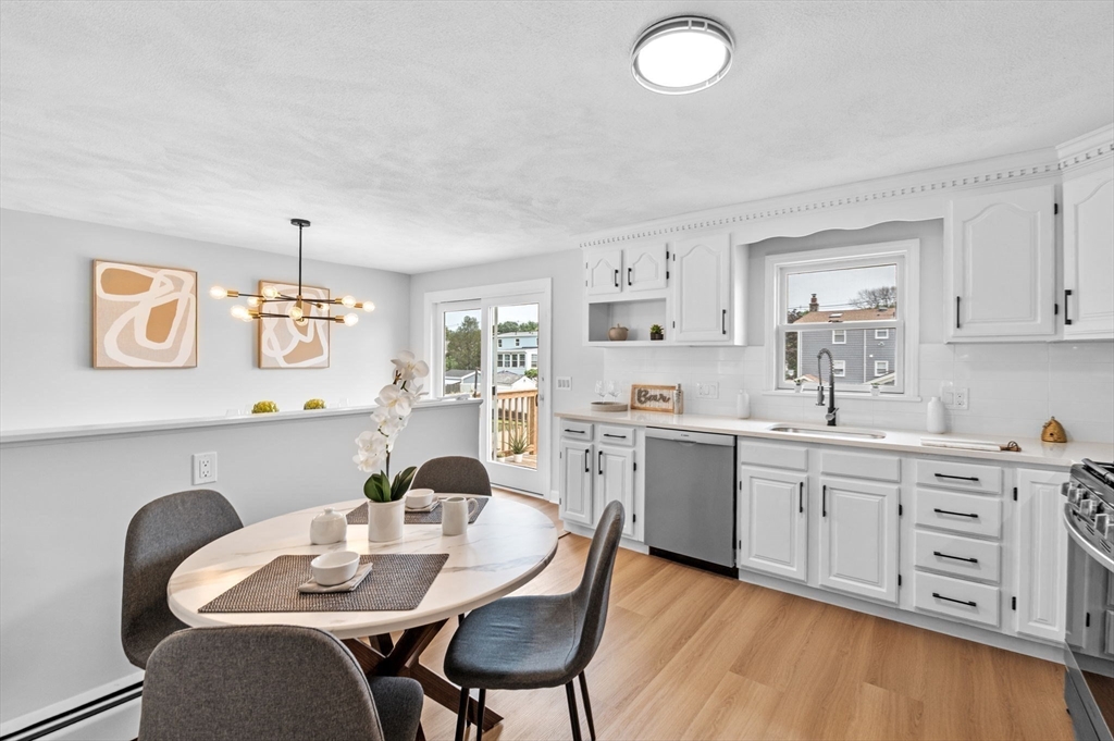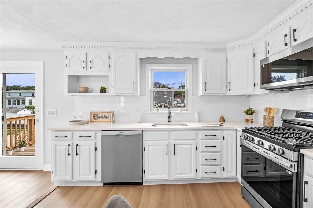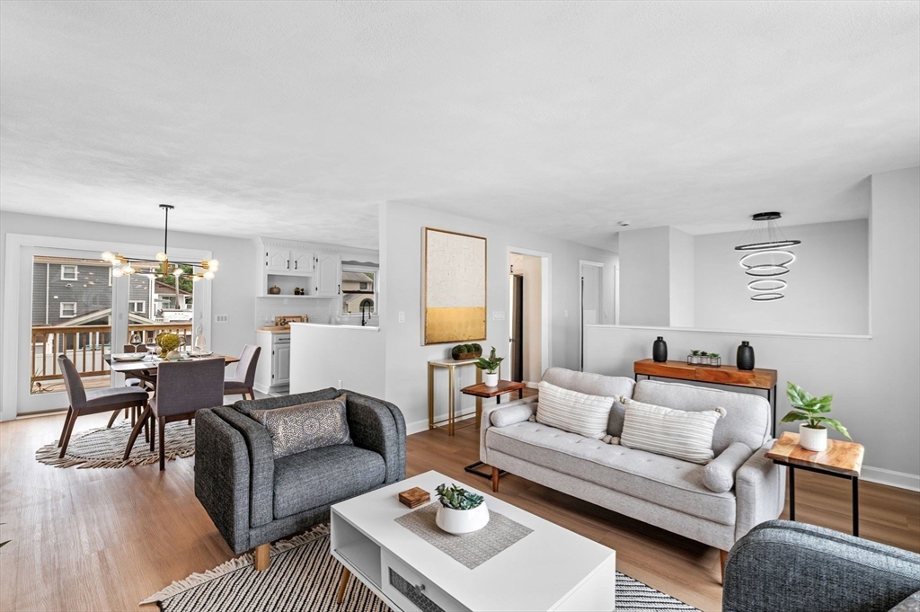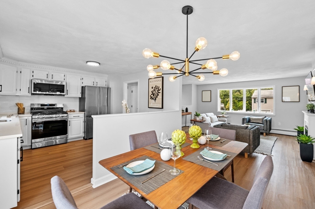 This charming Peabody home offers a fantastic blend of modern updates and desirable features. Boasting 3 bedrooms, 2.5 bathrooms, and a gorgeous eat-in kitchen equipped with brand new stainless steel appliances, the main level also features a sun-lit living room, a gorgeous fireplace and an open layout to the dining room, creating a warm and inviting atmosphere. Sliding doors off the dining room lead to your deck, an ideal space for unwinding at the end of the day. The finished lower level offers versatility as an additional family room, playroom, or office space and also presents great potential for an in-law or additional bedrooms, with access to your garage.The large backyard offers great outdoor space for entertaining and even has potential for a pool, if your heart desires. Located in a highly sought-after area of Peabody, with easy access to Rt. 114 and Rt. 128, a major plus for commuters and just a short distance to Peabody Square with its great restaurants and entertainment.