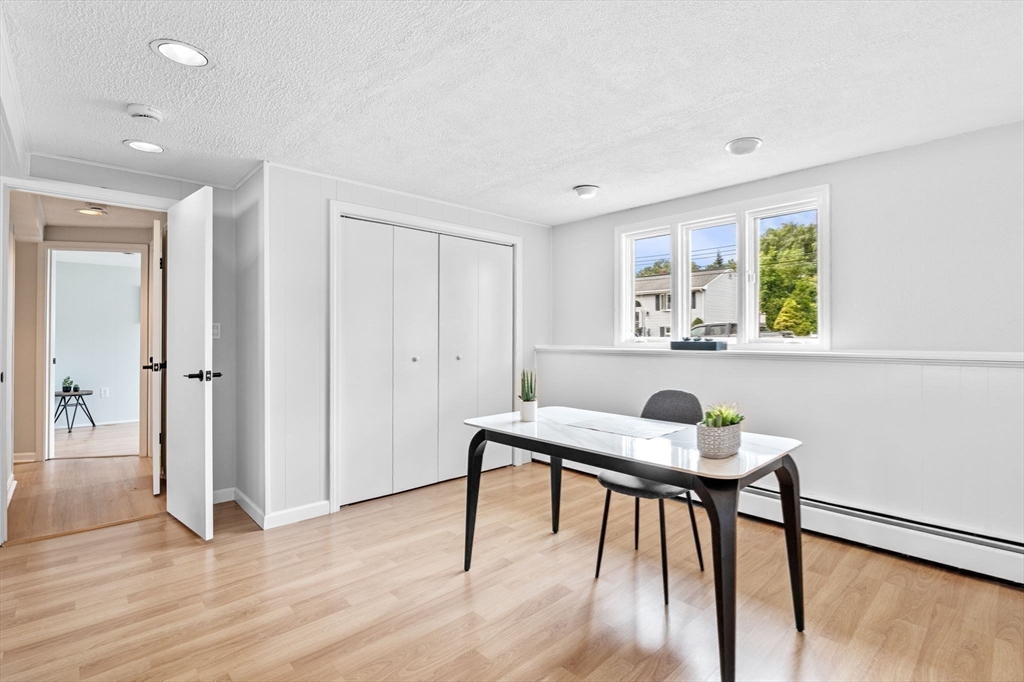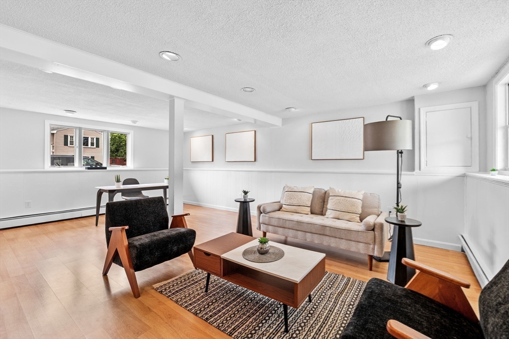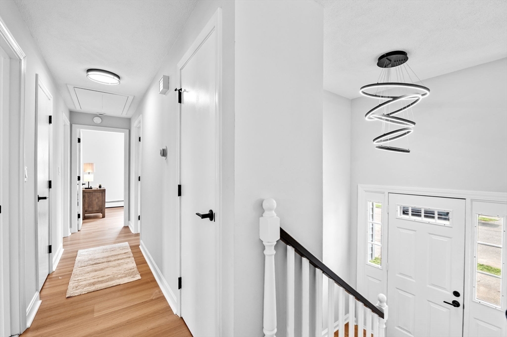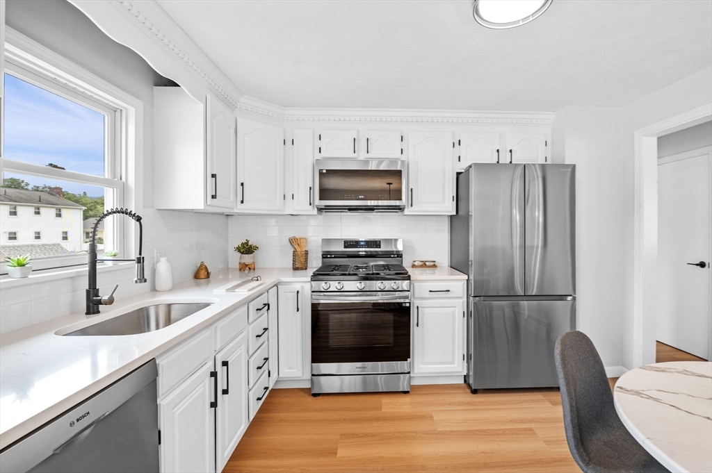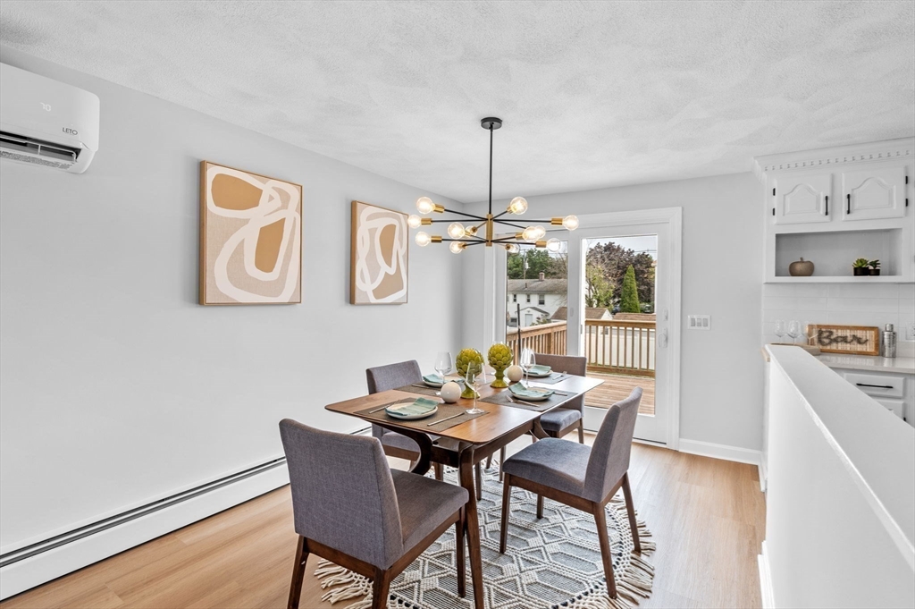 This charming Peabody home offers a fantastic blend of modern updates and desirable features. Boasting 3 bedrooms, 2.5 bathrooms, and a gorgeous eat-in kitchen equipped with brand new stainless steel appliances, the main level also features a sun-lit living room, a gorgeous fireplace and an open layout to the dining room, creating a warm and inviting atmosphere. Sliding doors off the dining room lead to your deck, an ideal space for unwinding at the end of the day. The finished lower level offers versatility as an additional family room, playroom, or office space and also presents great potential for an in-law or additional bedrooms, with access to your garage.The large backyard offers great outdoor space for entertaining and even has potential for a pool, if your heart desires. Located in a highly sought-after area of Peabody, with easy access to Rt. 114 and Rt. 128, a major plus for commuters and just a short distance to Peabody Square with its great restaurants and entertainment.