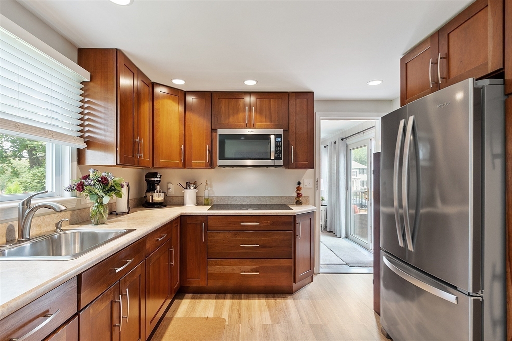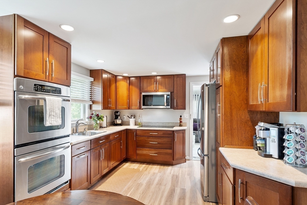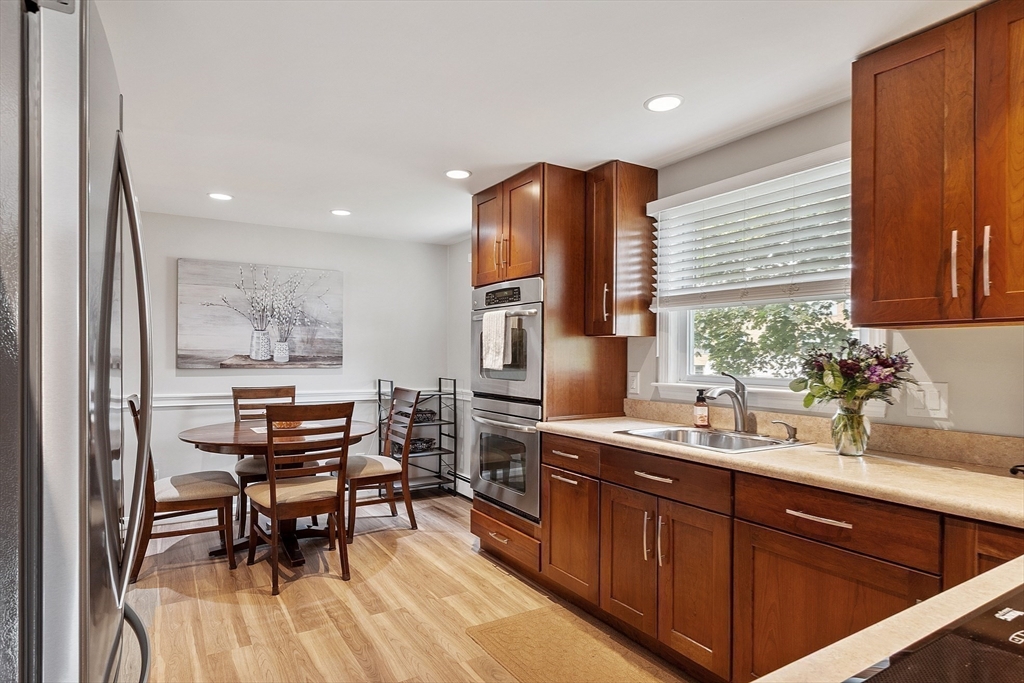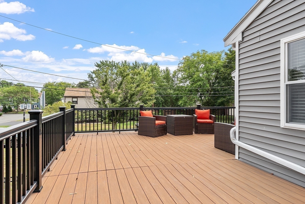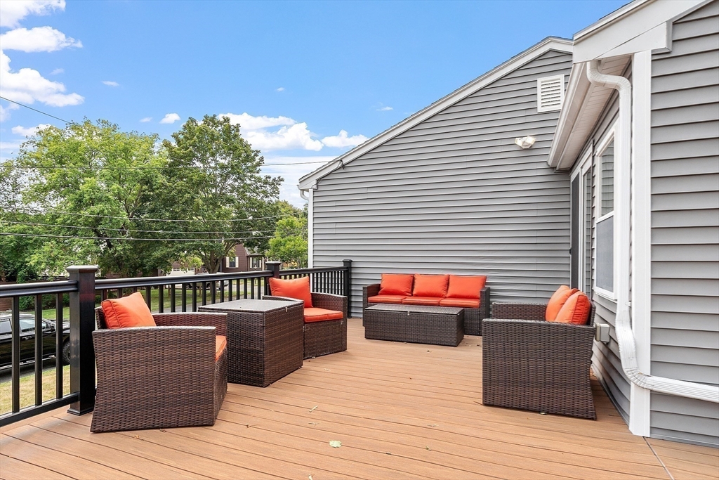 Discover the charm of Beverly, America’s hottest ZIP code, in this thoughtfully updated raised ranch on a lovely cul-de-sac. This 3BR, 1.5BA home offers 1,888 sf of flexible living space. Engineered vinyl plank flooring runs through most rooms, w/ hardwood in the living room & hall. The renovated kitchen features ample cabinetry, newer SS appliances, a Viking cooktop, double wall ovens, & built-in microwave. A cozy den w/ wood-burning FP opens to a 24x20 Azek deck—perfect for relaxing or entertaining. Stairs lead to a brick patio & fully enclosed yard w/ rod steel & stockade fencing, ideal for play & pets. The lower level includes a bonus room w/ closet, half bath w/ laundry, & access to a 2-car garage. A garage door on the storage area beneath the deck offers convenient access for tools, lawn equipment, & seasonal items. Updates: heating system (2019), oil tank (2023), vinyl siding (2019), & fresh interior paint (2024). Convenient to highways, schools, parks, & commuter rail.