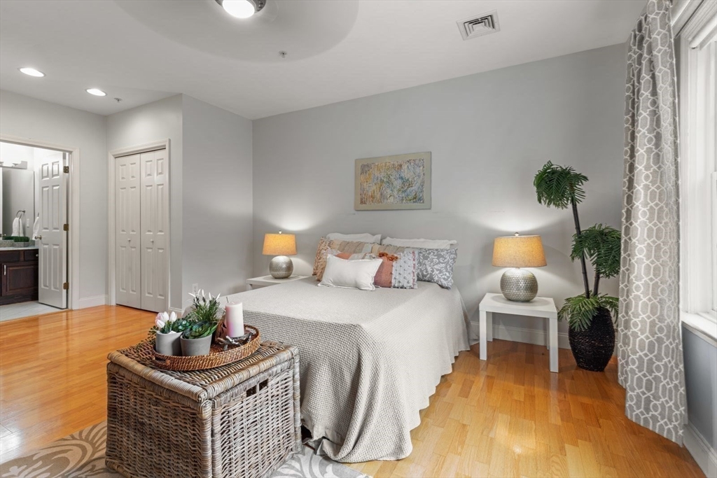 Welcome to this stunning 2 bd, 2 bth condo featuring gleaming hardwood floors throughout & a thoughtfully designed layout perfect for comfortable living. Let the flicker of the gas fireplace set the tone for relaxing evenings.The spacious primary suite includes a private en- suite bthrm, while the second generously sized bedroom is complemented by a separate full bath.Kitchen boasts granite counters & appliances have been purchased in the past 5 years except dishwasher. New Windows were installed in 2021 ensuring energy efficiency. The Paul Revere community is a commuters dream just a stones throw to Canton Station & provides direct access to Boston's Back Bay in 30 minutes. Enjoy the convenience of a one-car garage and the vibrant lifestyle offered by Canton's beautiful town center, complete with shops, restaurant & post office-just minutes away.Pet lovers enjoy the nearby dog park and relax on your private balcony, complete with extra storage closet. This is a true GEM!