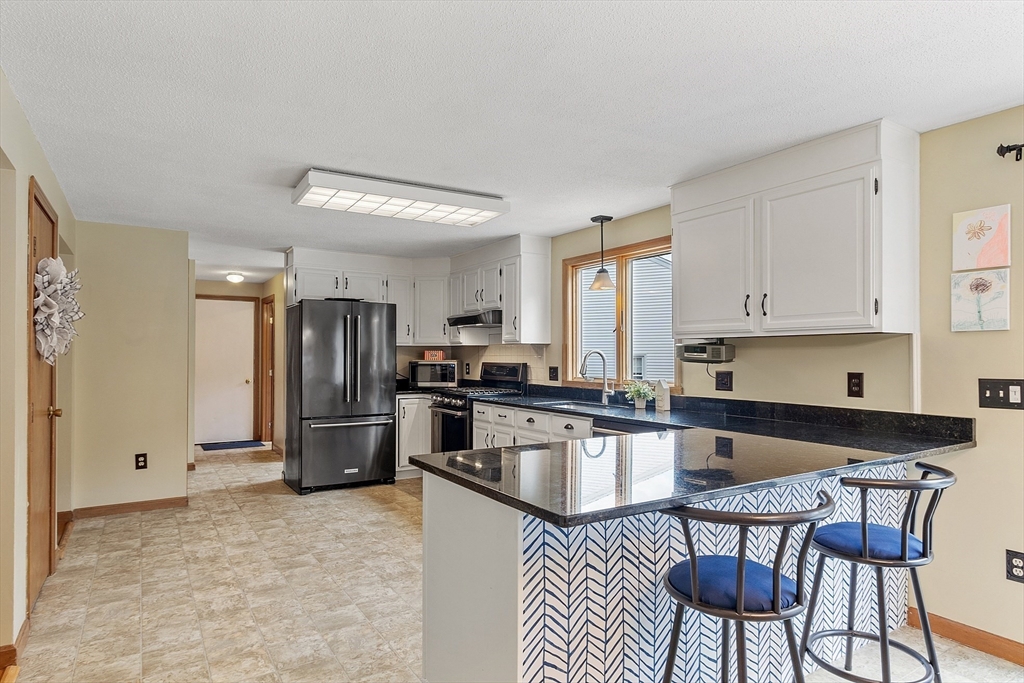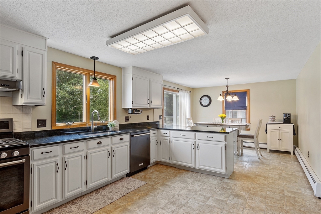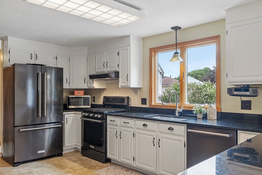 Meticulously maintained by its original owners, this classic 4-corner New England Colonial offers timeless charm, energy efficiency, & true move-in-ready condition. With 2,102 sq ft of living space, it features 4 spacious bedrooms, 2.5 baths, including a primary suite with its own bath. Gleaming hardwood floors enhance the sunlit living room with wood-burning fireplace and traditional dining room. The spacious eat-in kitchen boasts Granite counters, updated appliances & opens to new maintenance-free Trex deck. Enjoy the New Wall-Mounted On-Demand Boiler, full Mass Save insulation added, natural gas heat, updated roof, first-floor laundry, convenient half bath, attached 1-car garage w/storage & public water and sewer. Curb appeal shines with manicured landscaping and a welcoming front façade. The full high-ceiling basement offers expansion potential. Nestled in Pawtucketville centrally located near walking trails, NH tax-free shopping, and commuter routes—this is truly the Perfect Home!