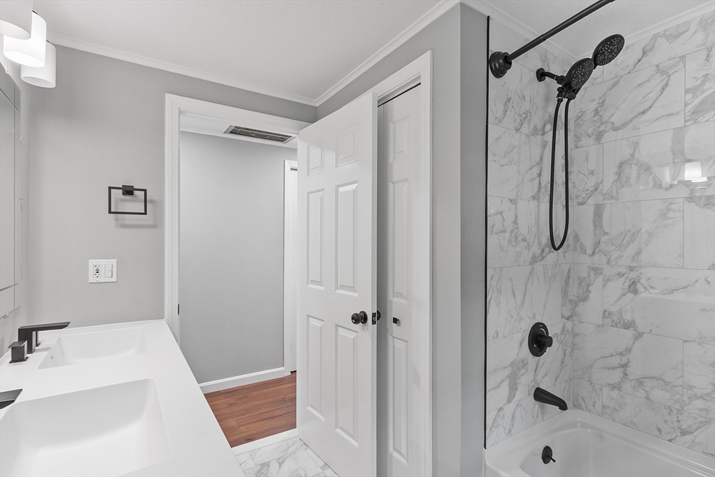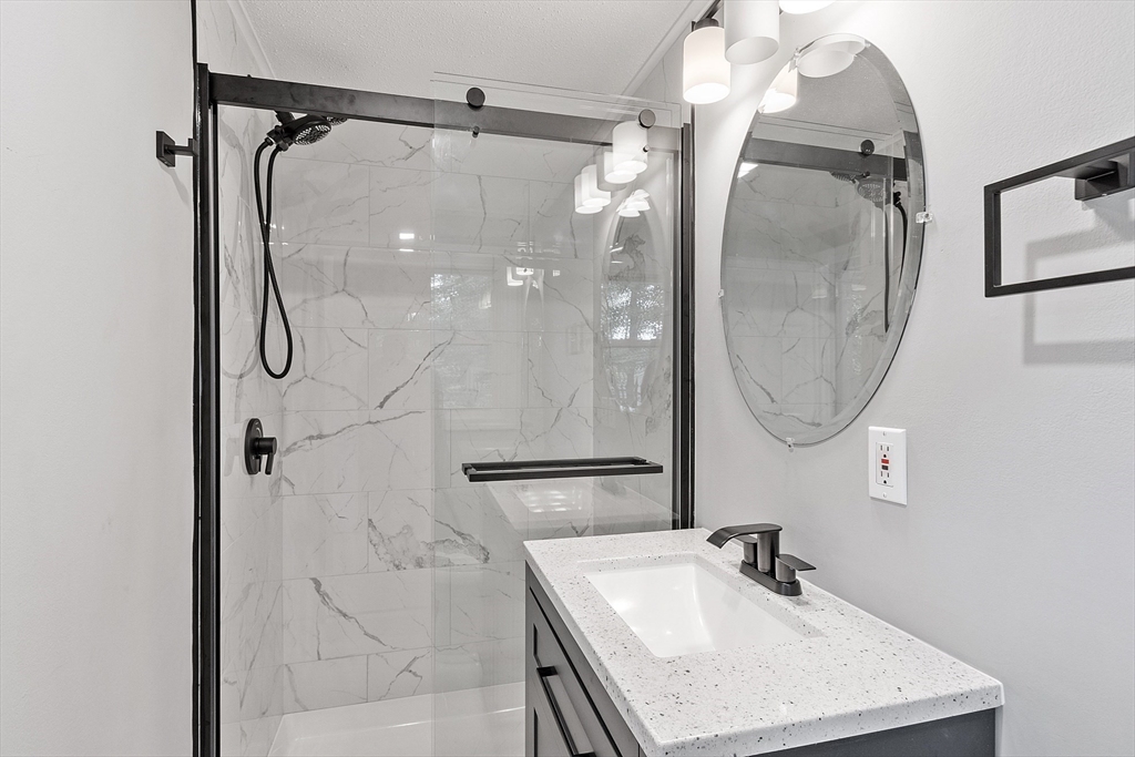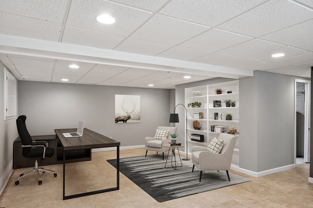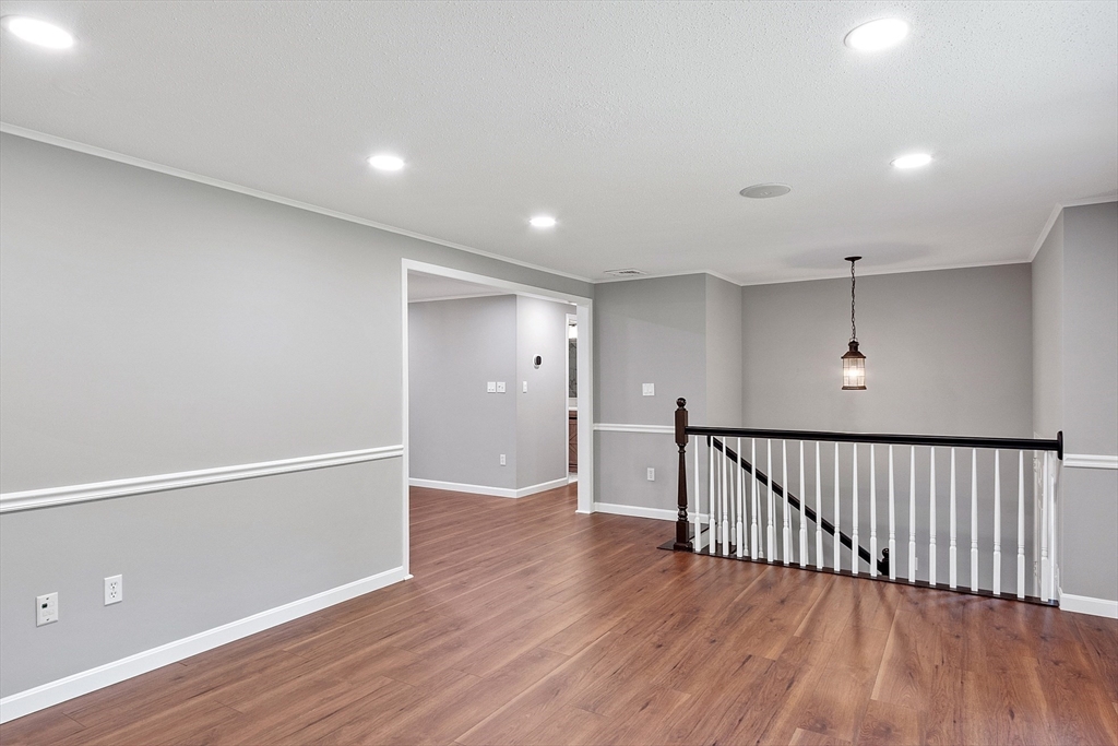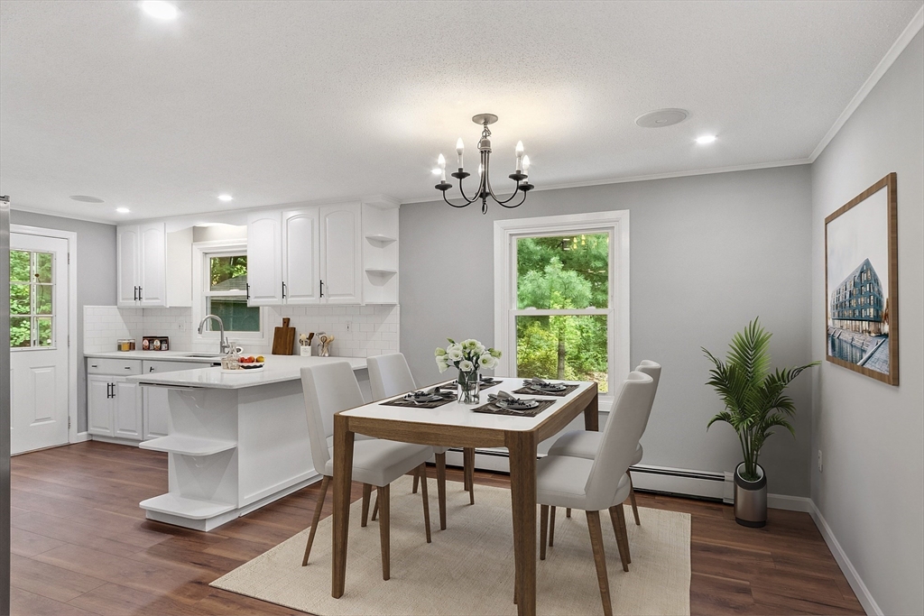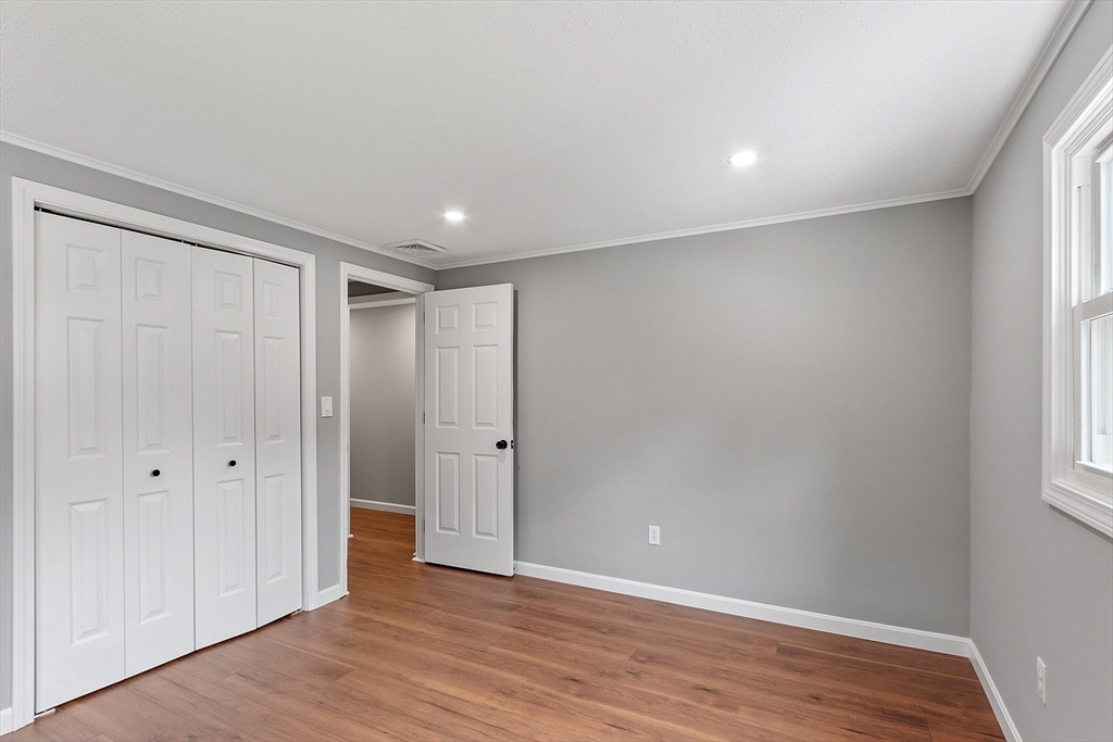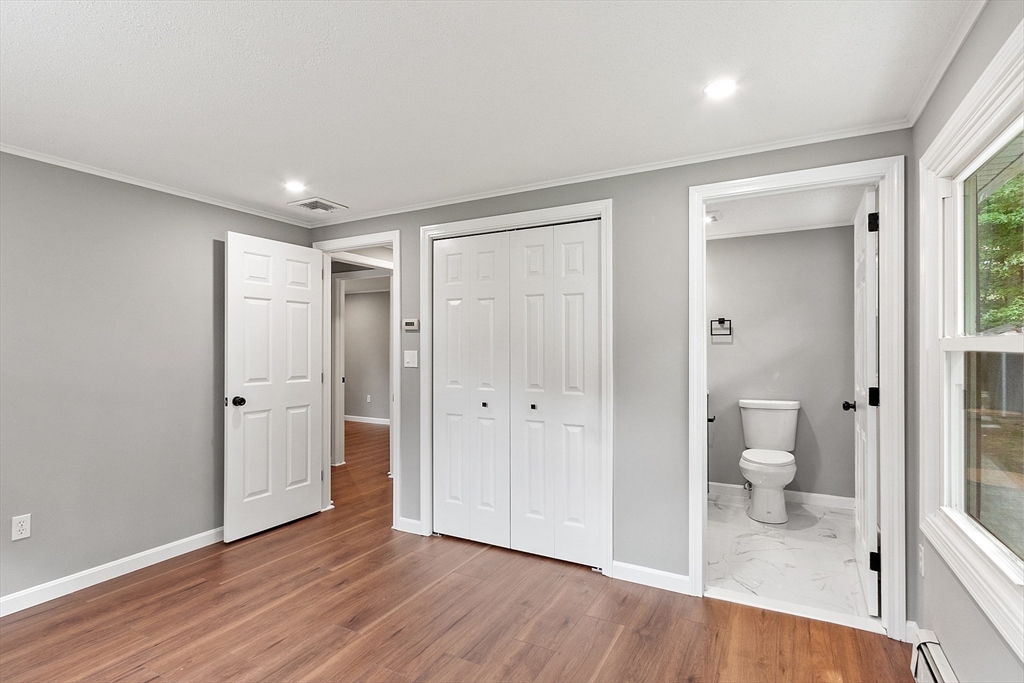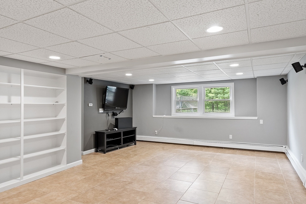 Nestled a 1/4mile off Pleasant Street, this private & stunning seven-room split-level home sits on nearly an acre of land, enveloped by serene woodlands that border Callahan State Park, offering a nature lover’s paradise. This home features a spacious living room with recessed lights, pellet stove, and a picture-perfect window for entertaining. The newly renovated kitchen boasts quartz countertops, stainless steel appliances, and new flooring, while three generously sized bedrooms and two newly updated bathrooms complete the main level. The lower level includes built-ins, recessed lighting, tile floors, and access to a two-car garage. Further upgrades include a NEW ROOF, heat pump, EV charger, brand new landscaped patio, and painted deck. The home is equipped with Bose surround sound in basement, in-ceiling speakers in living room, dining room, kitchen and outside. Conveniently located minutes from the Mass Pike, I-495, Route 9, schools & shopping. This move-in-ready home is a must see