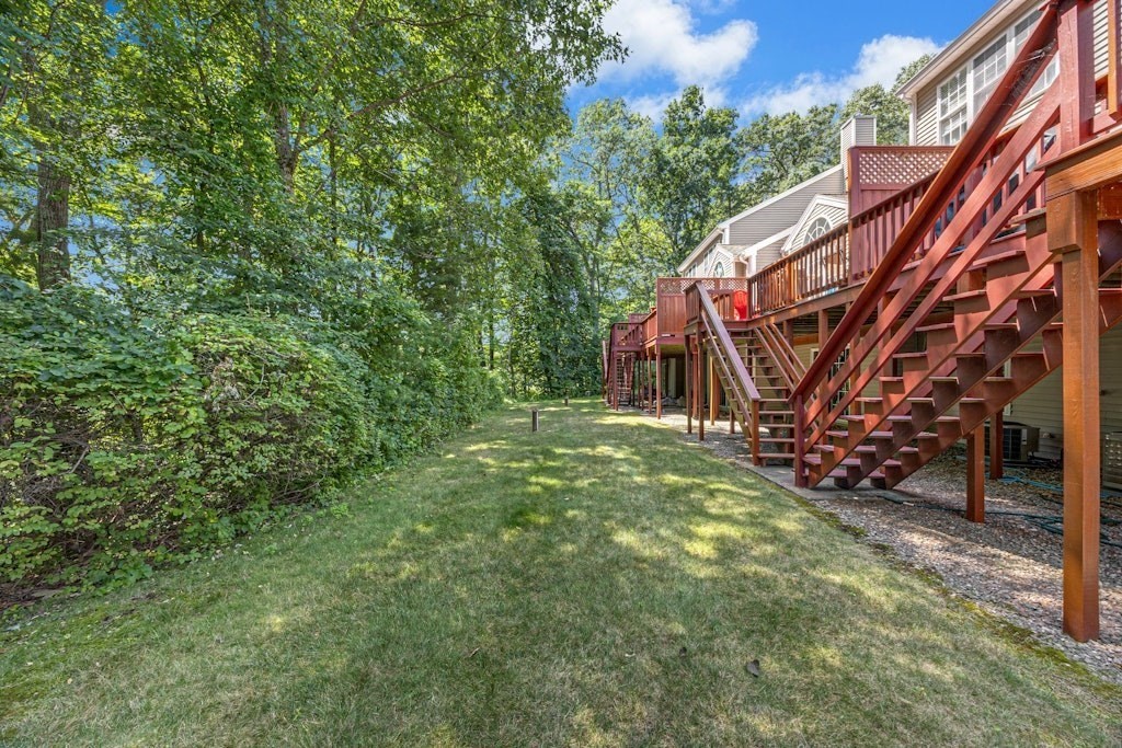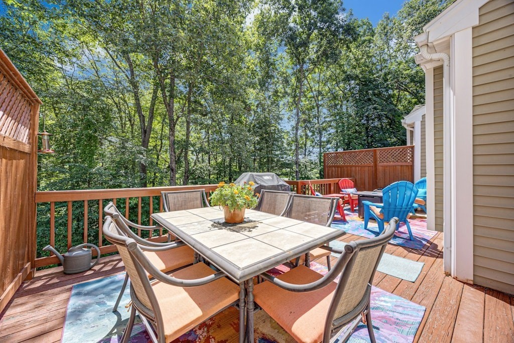 Updated townhome located at Smith Pond. Enjoy the seasonal water views. Updates throughout this townhouse. Remodeled kitchen with stainless steel appliances, gas stove, quartz counters, tile backslash, custom cabinets & hardwood floors. Living room with Italian marble gas fireplace, bay window, vaulted ceiling w/ skylights & hardwood floors. Open concept dining room has slider to deck for additional outside dining. First floor bathroom. Loft area for home office with glass wall & views of Smith Pond. Two spacious bedrooms on the 2nd floor. Primary bedroom with double closets & access to remodeled bathroom. This luxurious bathroom has a soaking tub, tiled walk-in shower, custom vanity, quartz countertop & tiled floor. Second bedroom with closet. Large walkout basement. Sunny deck area. Central Air. Gas Heat and Gas Cooking. One car garage and driveway for additional parking. Located near Wegmans, Northborough Crossing. Commuter Rail, Rte. 9 and other major highways.