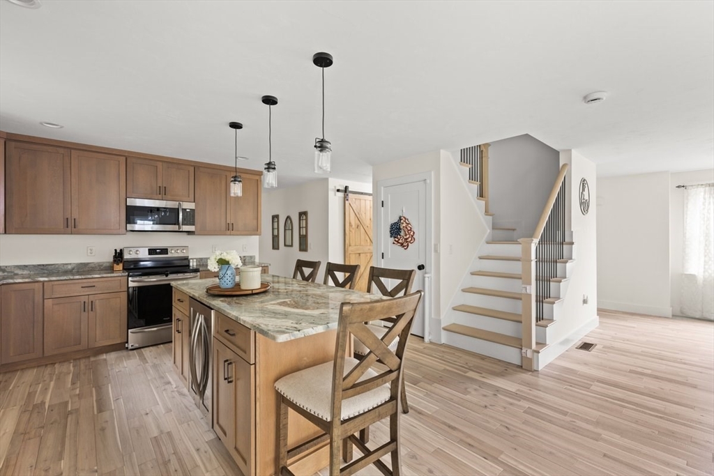 Stunning colonial home offering 4 bedrooms, 3 full baths and a 2 car garage. Located in a desirable newer subdivision on a cul-de-sac in Attleboro, this home is perfectly situated close to highways and shopping. The main level features beautiful wood floors and a gorgeous kitchen with granite countertops, stainless steel appliances, recessed lighting, and an open layout to the dining room. A spacious family room boasts cathedral ceilings & hardwood floors. Also on the main floor is a bedroom, a half bath with separate laundry and shower, and a large living area that is perfect for entertaining. The second level includes an office, 3 spacious bedrooms and 2 full baths. The primary suite impresses with cathedral ceilings, a walk in closet plus an additional closet, and a full bath with beautiful tiled shower. Spacious walk up attic and large walk out basement allow for future expansion possibilities!