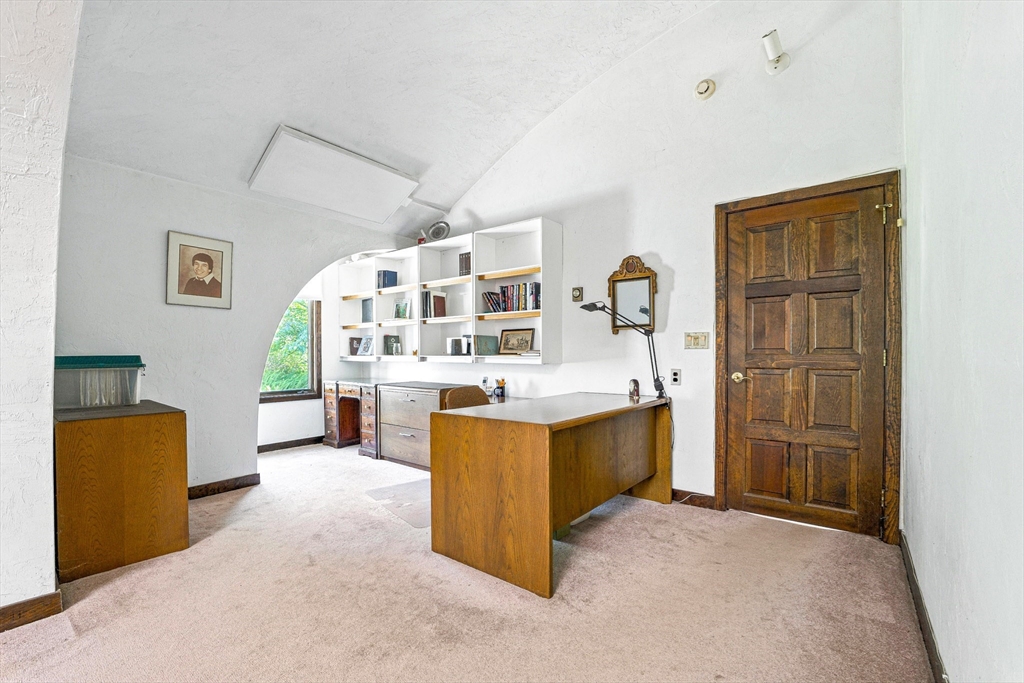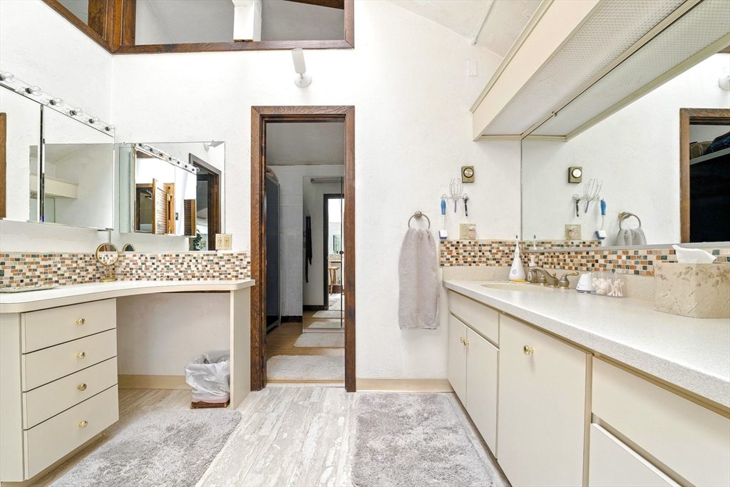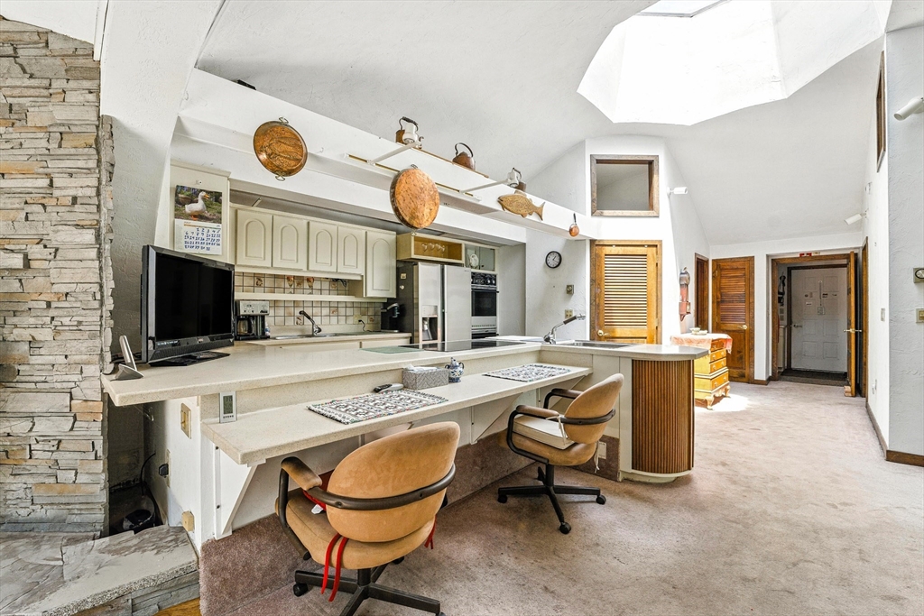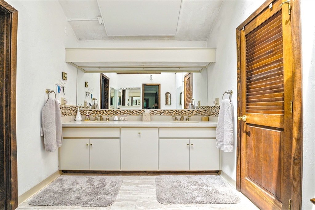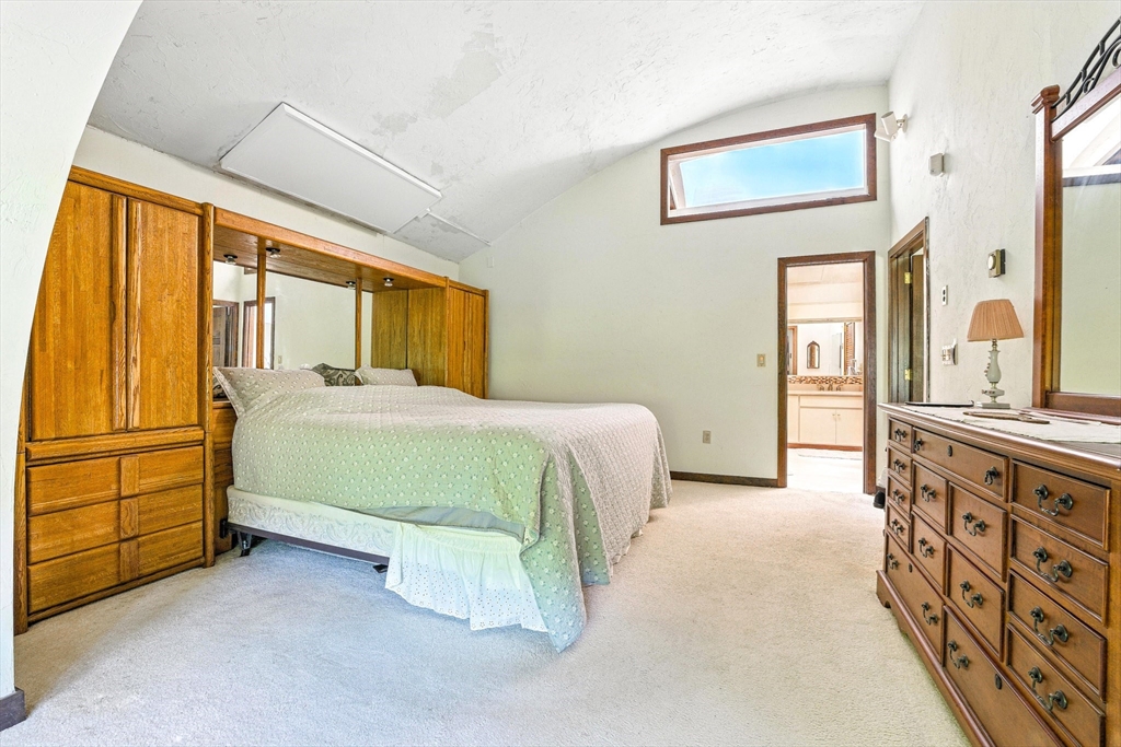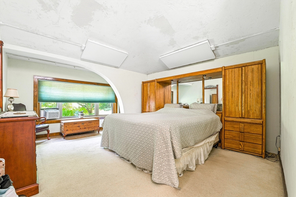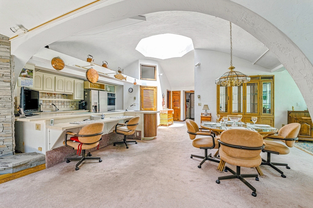 This remarkable Plympton home sits on a 6.63 wooded retreat lot & offers one-level living at its finest. The concrete construction makes this home virtually fireproof, indestructible & low maintenance. The open floor plan is unlike any other boasting a huge great room, kitchen/dining area & sunroom. You’ll also find 2 bedrooms, 2 baths, an office, laundry, craft/bonus room, & walk-in pantry. The main bedroom suite has dual sinks, jacuzzi style tub & walk-in closet. Skylights & 12’ vaulted ceilings add natural lighting & openness throughout. In addition to the 2-car garage, there’s a 2000 sq ft insulated shop with heat, power, water, 2 bays, 2 offices, storage & endless possibilities! The paved private road leads to a striking paver driveway & waterfall. Other features include a generator connection , solar array & more. Ideal for ADUs. Private, yet located 5 minutes from shopping, banking, eateries & more. Close to Rtes. 3, 44 & the "T" provides easy access to Boston & Cape Cod.