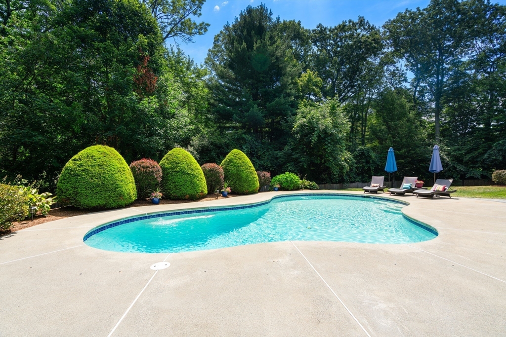EXCEPTIONAL CUSTOM COLONIAL set back in sought-after DORCHESTER BROOK ESTATES! This 4 BED, 2.5 BATH home showcases a DRAMATIC 2-STORY MARBLE FOYER, rich BRAZILIAN CHERRY FLOORS, and SUN-FILLED LIVING SPACES. The OPEN-CONCEPT KITCHEN is outfitted with CHERRY CABINETRY, GRANITE COUNTERS, SS APPLIANCES, and flows seamlessly to a FIRE-PLACED FAMILY ROOM and VAULTED FOUR-SEASON SUNROOM leading to the deck, and backyard. Upstairs, the PRIVATE PRIMARY SUITE features a PALLADIUM WINDOW, WALK-IN CLOSET, and SPA-LIKE BATH. Two more spacious bedrooms PLUS a MASSIVE BONUS ROOM/4th BEDROOM over garage offer flexible living. WALK-UP ATTIC and WALK-OUT BASEMENT provide expansion potential. Outside, enjoy a HEATED GUNITE POOL, NEW STONE PATIO, IRRIGATION, & FENCED YARD, your PRIVATE OASIS! Convenient to Rts 24/138/95, shopping, schools, and commuter rail. THIS IS THE ONE YOU’VE BEEN WAITING FOR!