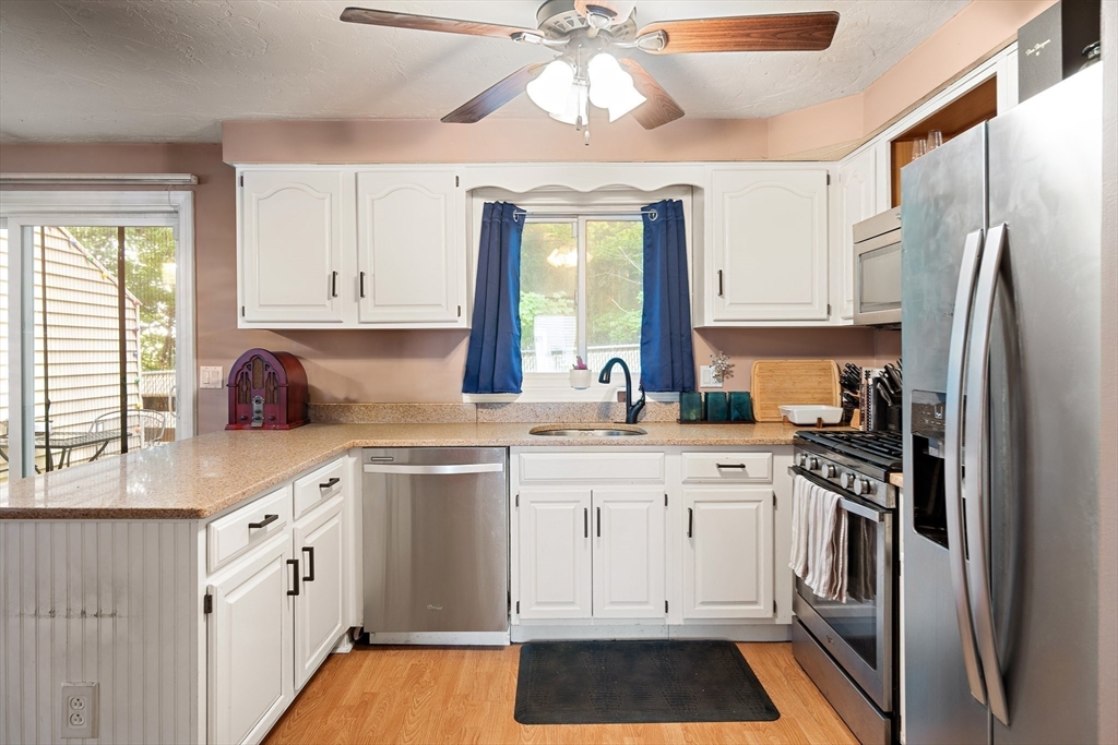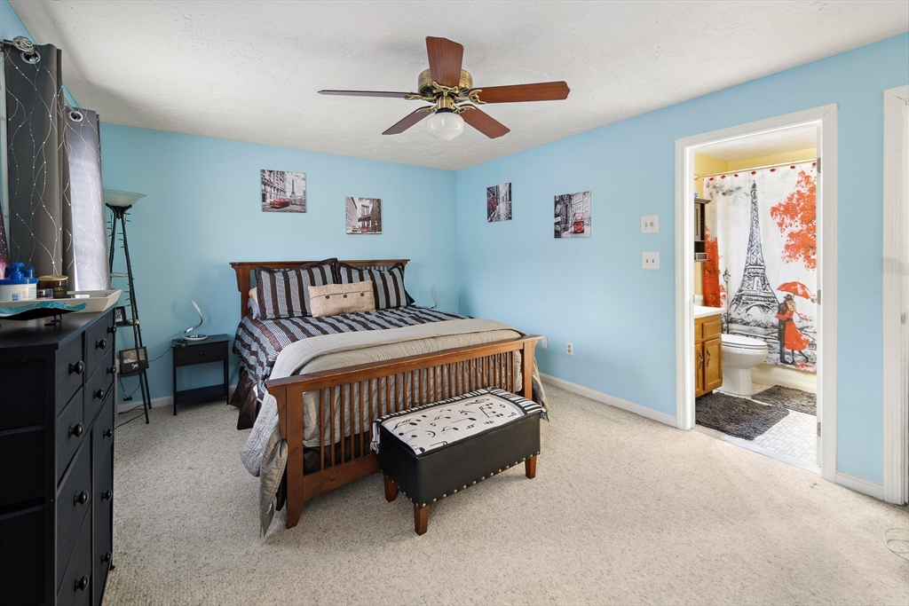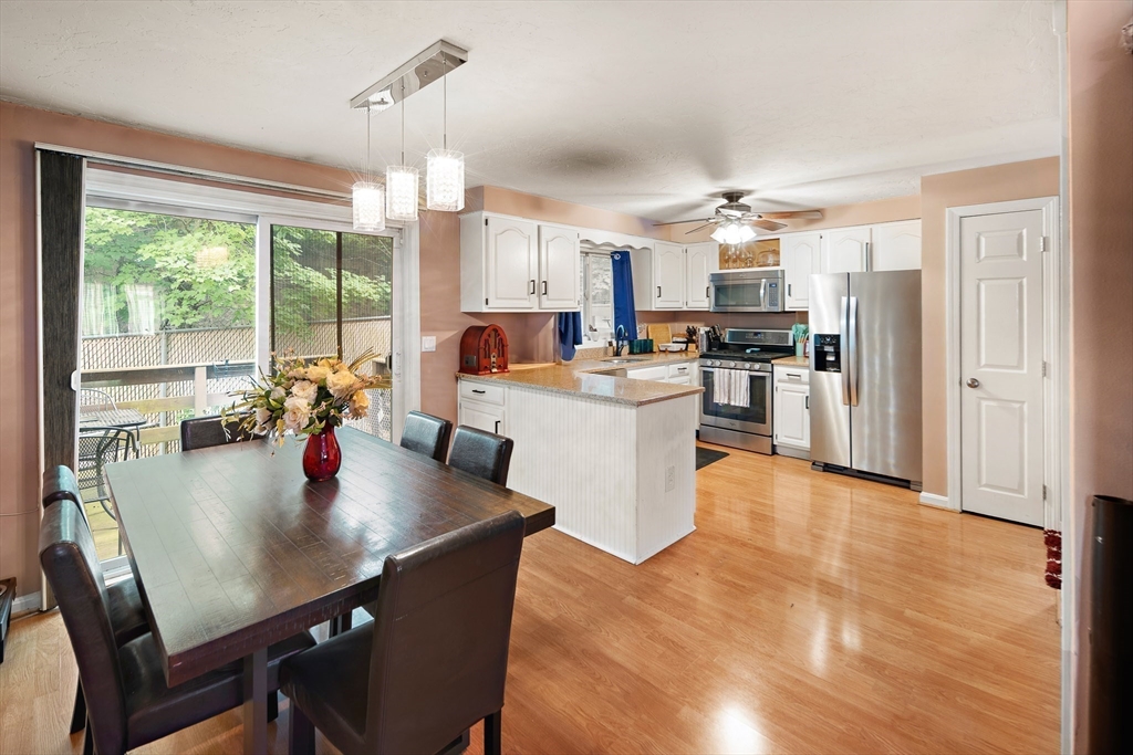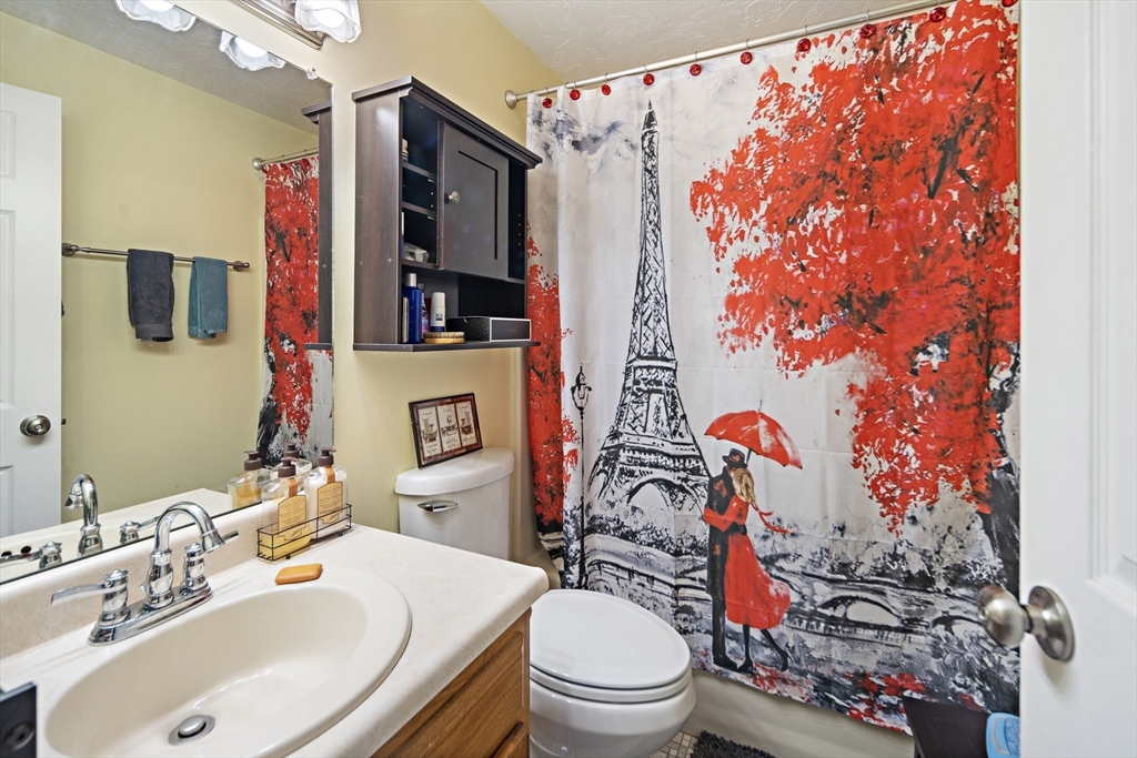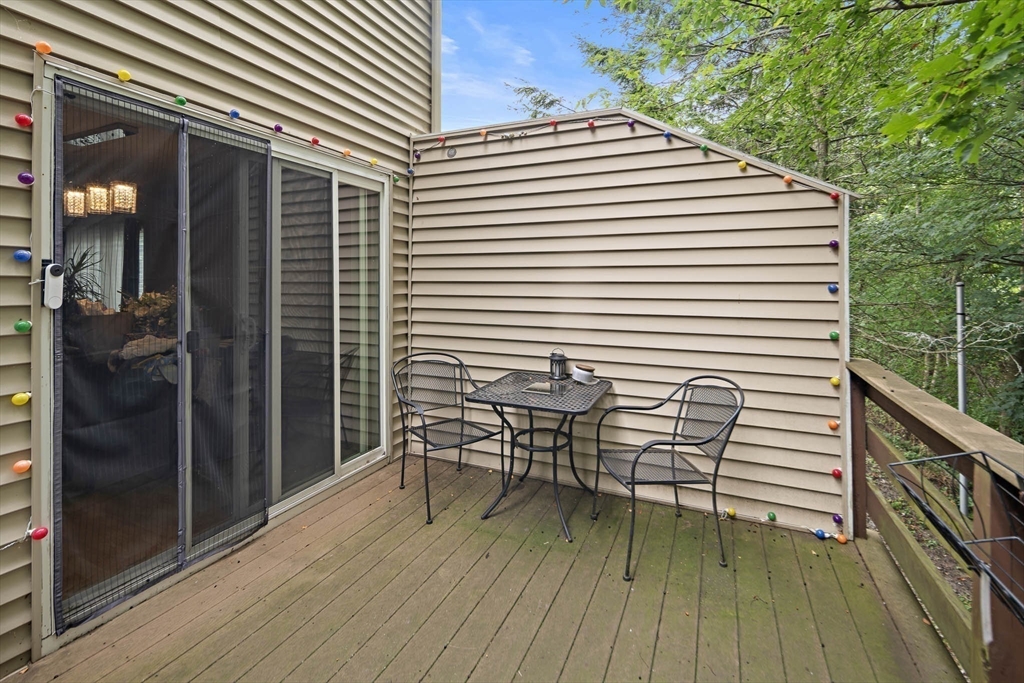 Welcome to this desirable end-unit townhouse in a convenient location on the Randolph/Canton line, minutes from major routes and amenities! Enjoy a spacious open-concept layout with kitchen, living room, dining room, private rear deck and half bath on the first floor. The modern kitchen offers stainless steel appliances, stone countertops and a large pantry. Sliding glass doors lead to a lovely deck, perfect for relaxing or entertaining. Upstairs, two oversized bedroom suites each offer full bathrooms and ample closet space. The finished lower level includes invaluable bonus space for a second family room, office, gym etc and generous storage. There are many upgrades recently completed including-new heating system, new hot water tank, new water filtration, new refrigerator, and some windows, As an end unit, this home provides extra privacy, complete with assigned parking as well as plenty of guest parking, both right out front. Move right in!