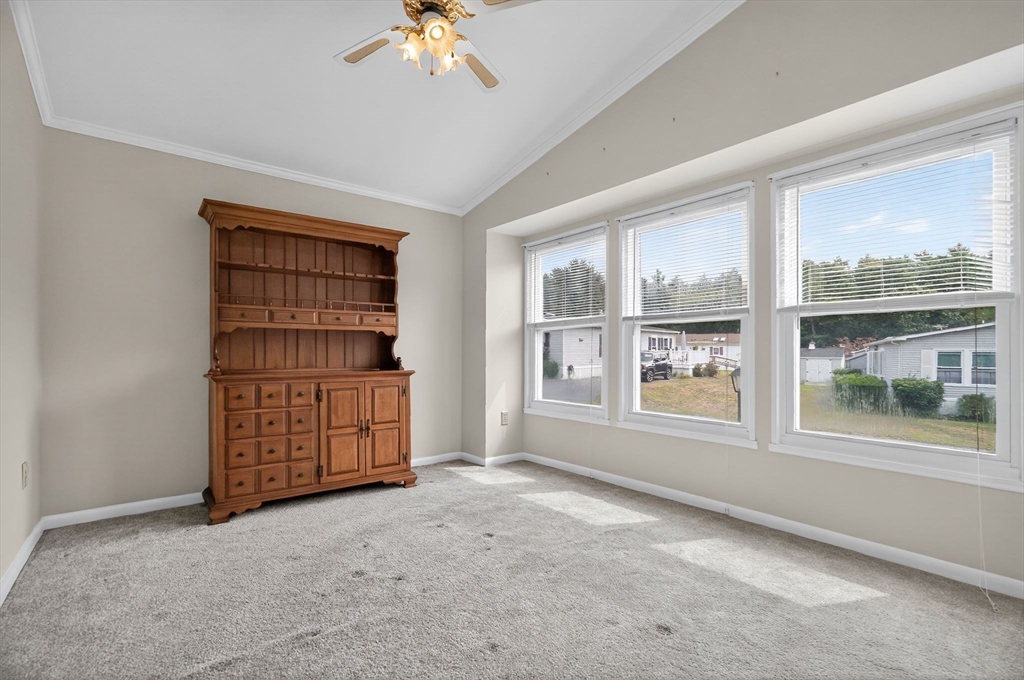 LUCKY 55!!! Welcome to Waterview Village. You're now eligible to become the owner of the 2 bedroom 2 bathroom home. Exceptional opportunity for those adults (55+) looking to downsize or who would prefer single level living, This lovely home can offer enjoyment to all. It has a great floor plan with an added Three Season Room. Fireplaced living room with vaulted ceilings. Main suite with walk in shower. Waterview Park – park fee includes the following:-Common area maintenance of the mailbox and clubhouse areas-Snow removal and road maintenance-Weekly trash removal-Use of the clubhouse and dog park-Brush and recycling disposal at the clubhouse parking lot-Yearly septic pumping-Maintenance of the water wells and pump systems-Maintenance of two generators – pump system and clubhouse-Monthly excise tax paid for each unit to Town of Carver-Storage of boats/campers in clubhouse parking lot if needed-Repair of driveways and light posts when needed.