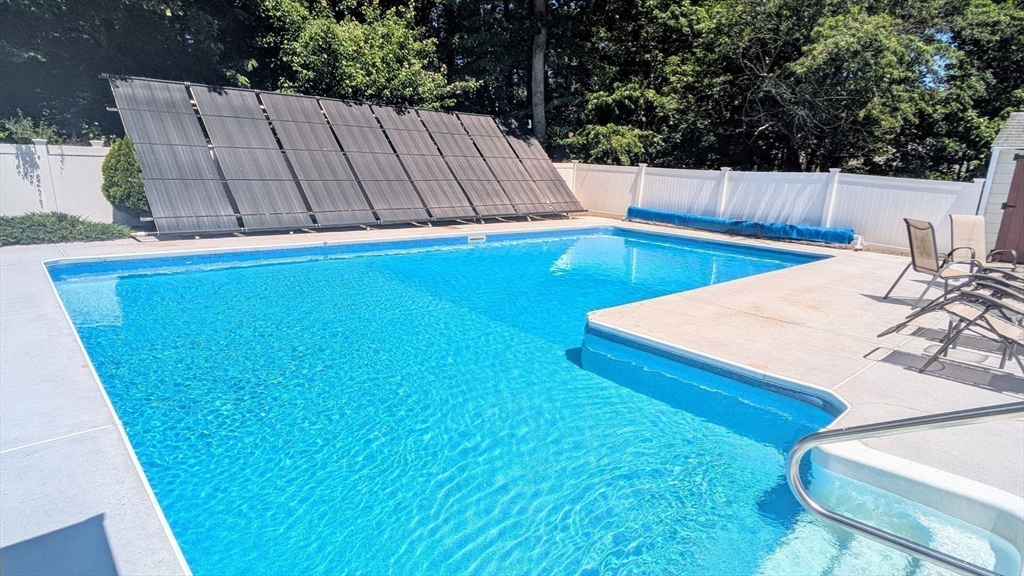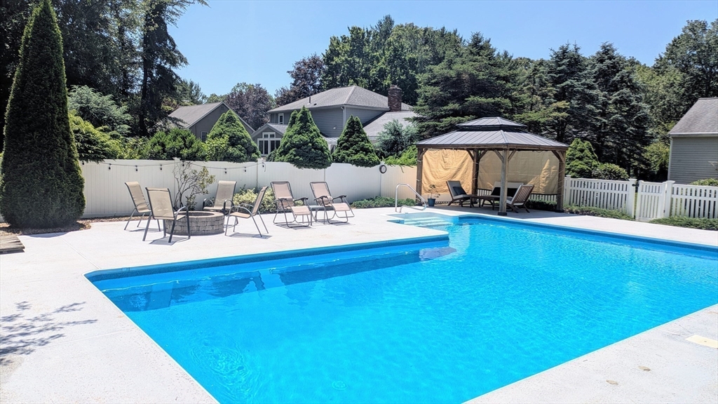 Welcome to your dream home in Mansfield Center! Nestled on a quiet cul-de-sac, this sun-drenched 4BR, 2Bth home offers the perfect blend of comfort, style & convenience. Just mins from top-rated schools & the commuter rail. Inside, enjoy new floors & an updated kitchen w/ quartz counters, new appliances, refreshed cabinets & modern fixtures. The inviting family room features a wood-burning FP. Energy-efficient upgrades include insulated dbl-pane windows w/ heat-reflective film upstairs, R-60 attic insulation, a Viessmann condensing boiler & central AC—keeping utility costs low. Outside, relax on the composite deck w/ aluminum railings, overlooking your private backyard retreat: solar-heated saltwater pool (avg. 90°F), cedar gazebo, outdoor FP, sprinklers, fruit trees & berry bushes. A rare opportunity to enjoy luxury, energy efficiency & prime location in one of Mansfield’s most desirable neighborhoods.