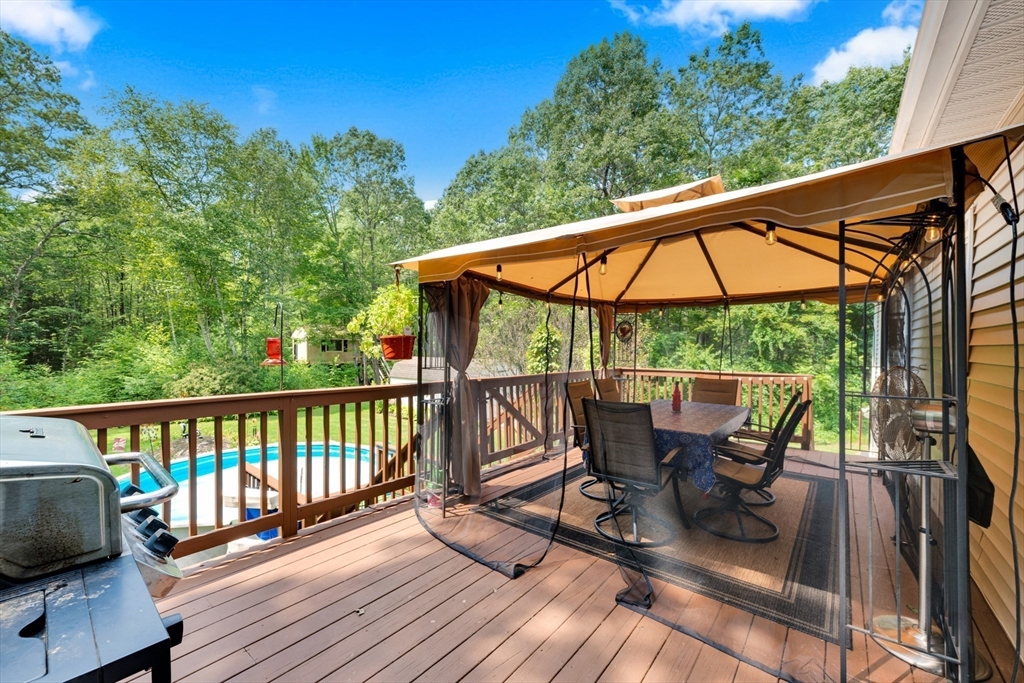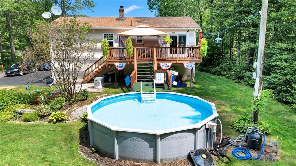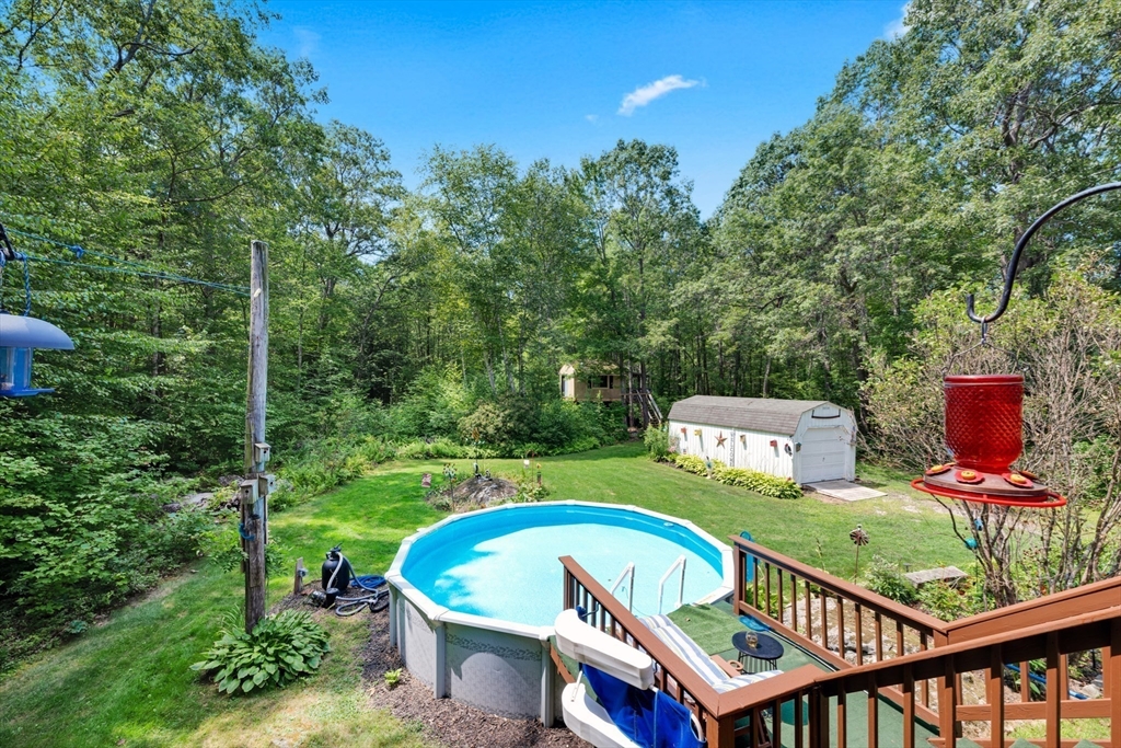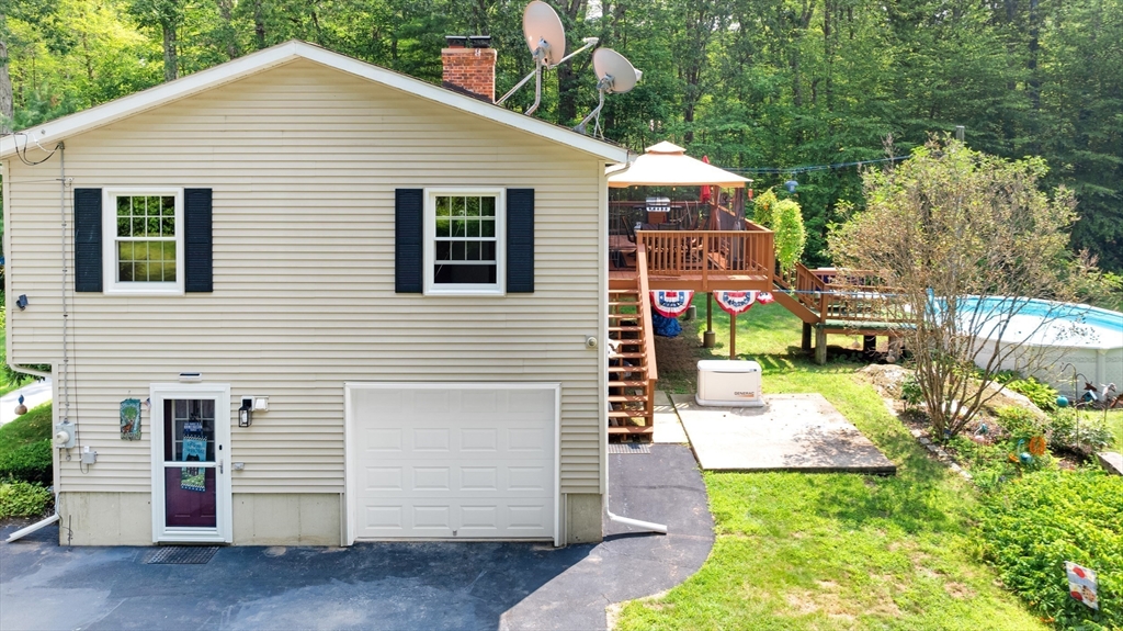 Your Hidden Retreat with Pool, Tree House & More! Follow the long drive to this raised ranch, perfectly set back for peace and quiet. The 12x24 shed (car worthy!), the 12x14 tree house is pure fun, and the above-ground pool with deck and canopy has hosted countless gatherings. Inside, find a sunny main level with primary bedroom, two more bedrooms, and a full bath with shower. Downstairs offers laundry with full bath and a heated finished room the sellers use as a bedroom (town shows 3 BRs). On demand hot water, and best of all—never worry about outages with the whole-house automatic generator. A home that’s both private and packed with personality! This beautifully maintained home SHINES and it can be yours! Showings begin at the open house on 8/16.