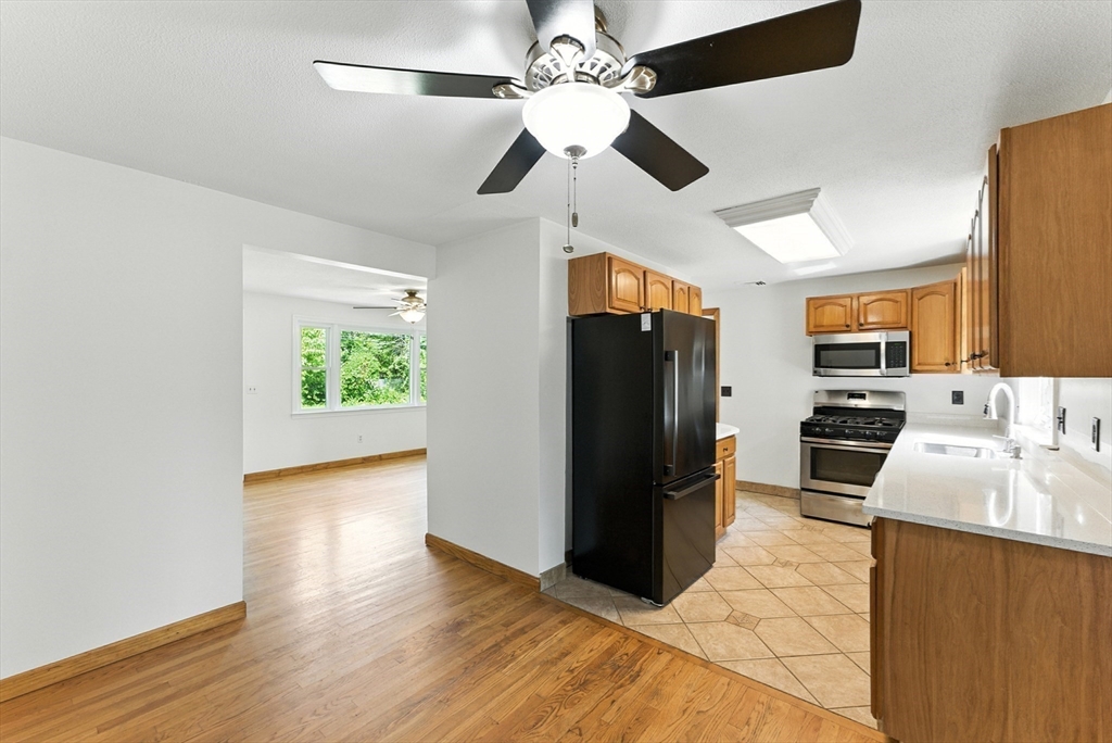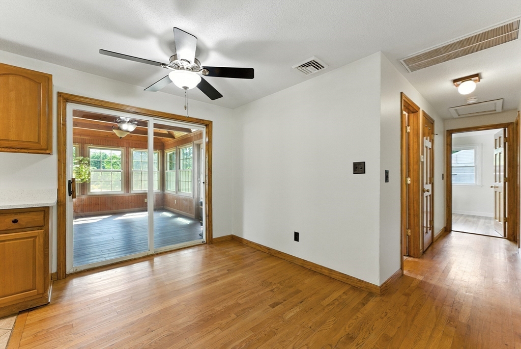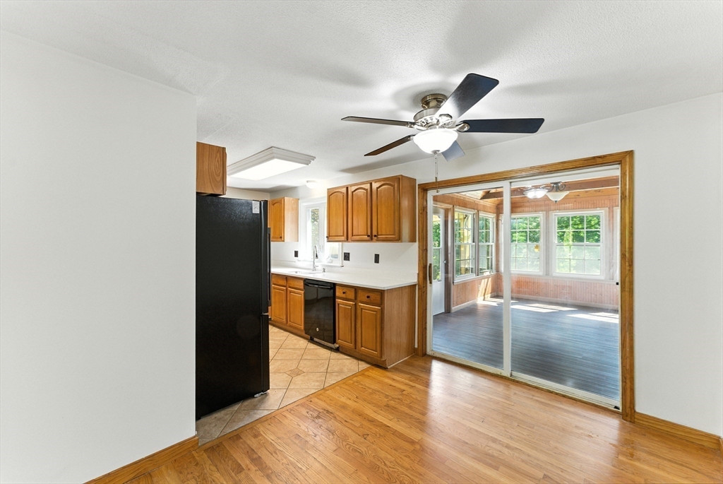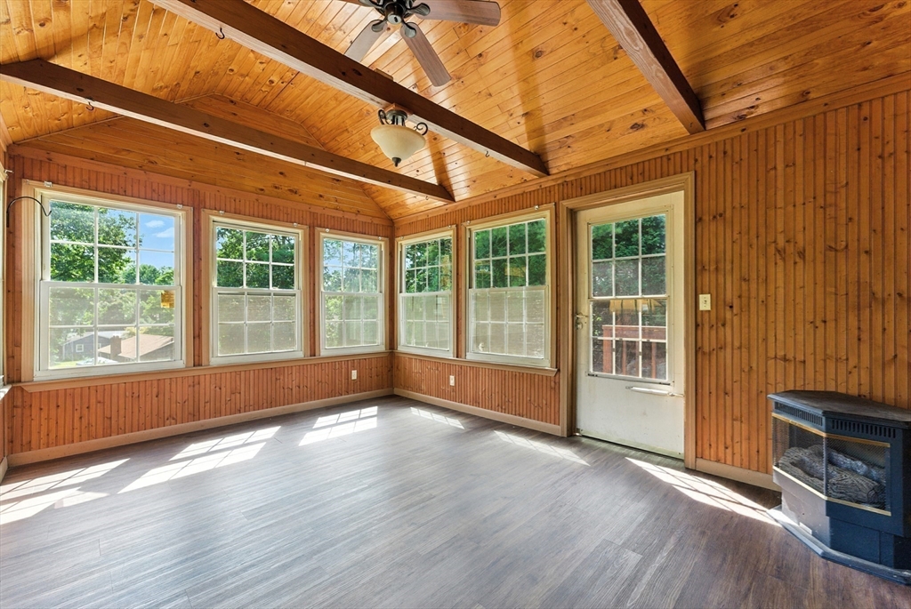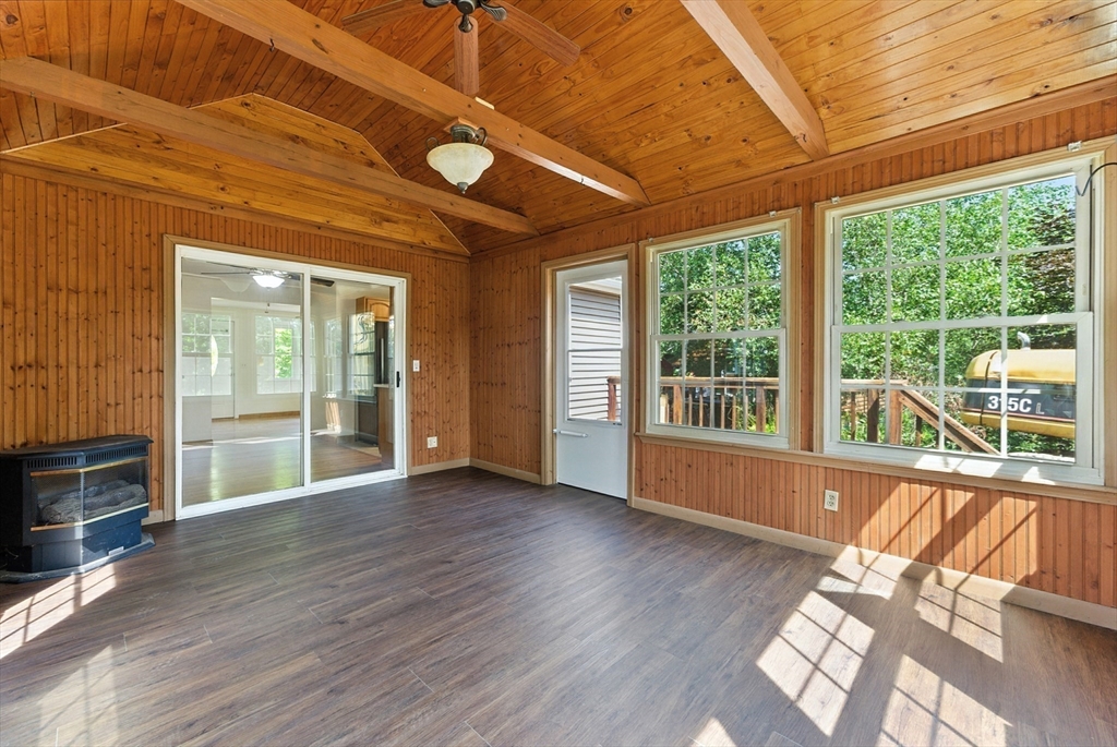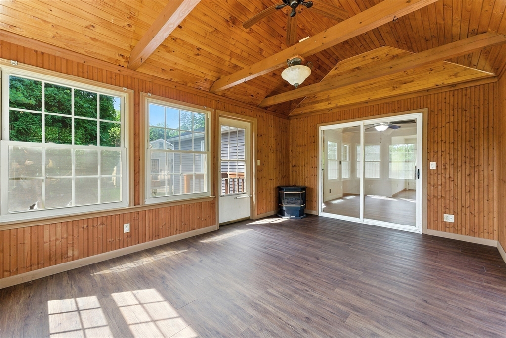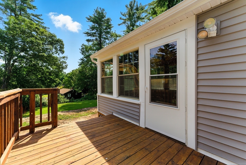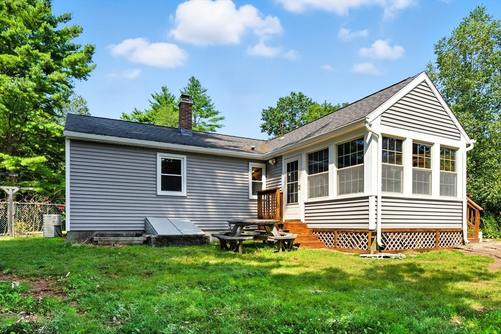 Welcome to this nicely updated ranch-style home offering comfortable, one-level living in a serene lake community with deeded lake rights to Beaver Lake. This 3-bedroom home features an updated kitchen with sleek quartz countertops, perfect for cooking and entertaining. The warm wood flooring flows throughout the main living spaces, adding charm and style. Enjoy year-round relaxation in the large enclosed porch with vaulted ceilings and views of the private backyard—ideal for morning coffee or evening gatherings. The partially finished basement provides a spacious bonus area for entertaining, along with two additional finished rooms that can serve as guest space, an office, or hobby areas.Nestled in a convenient neighborhood just a short stroll from Beaver lake and close to Quabbin and the Swift River, this home is ready for its new owner!