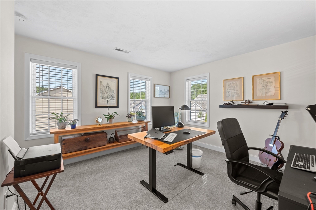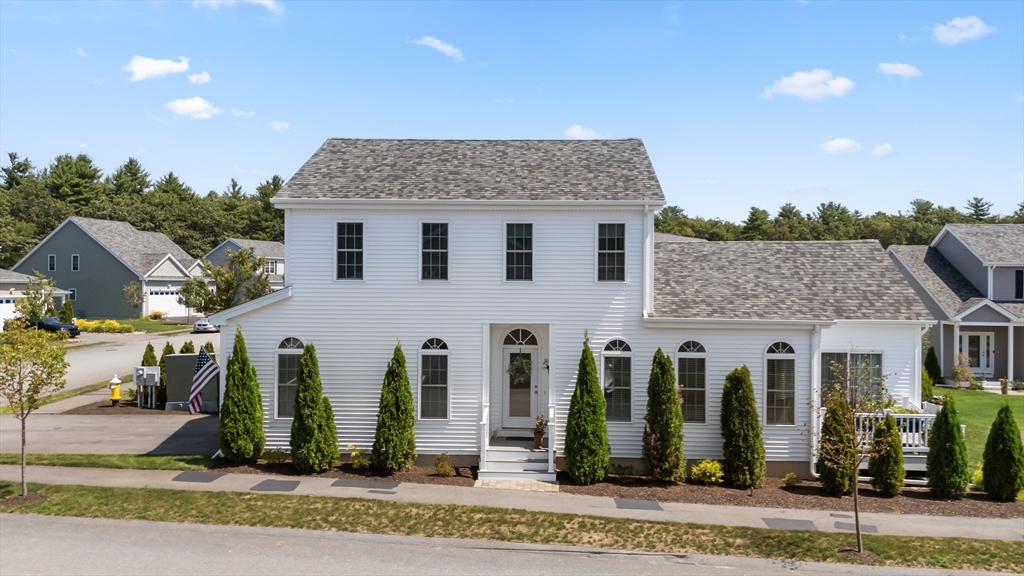 Welcome to Poet’s Corner at Westminster Place, a premier 55+ community in the heart of Holden! The “Blazing Star” is a detached, single-family style condo offering the ease of one-level living with a spacious first-floor primary suite. The open floor plan seamlessly connects the living, dining & kitchen areas—perfect for both daily living & entertaining. Thoughtful design features include granite countertops, hardwood flooring, stainless steel appliances & central A/C. Enjoy the convenience of direct laundry access from both the kitchen & primary bath. The second floor offers two generously sized bedrooms, a Continental Den & a full bath—ideal for guests or additional living space. A covered front entry, full unfinished basement & attached 2-car garage with lifestyle screens add comfort & functionality. With just one step from the driveway, this home also offers potential wheelchair accessibility. Nestled on a lovely corner lot at the end of a cul-de-sac—this is Holden’s newest gem!