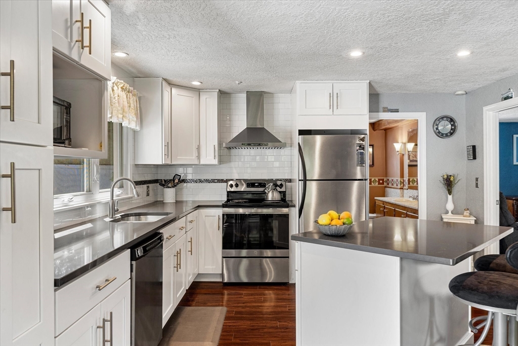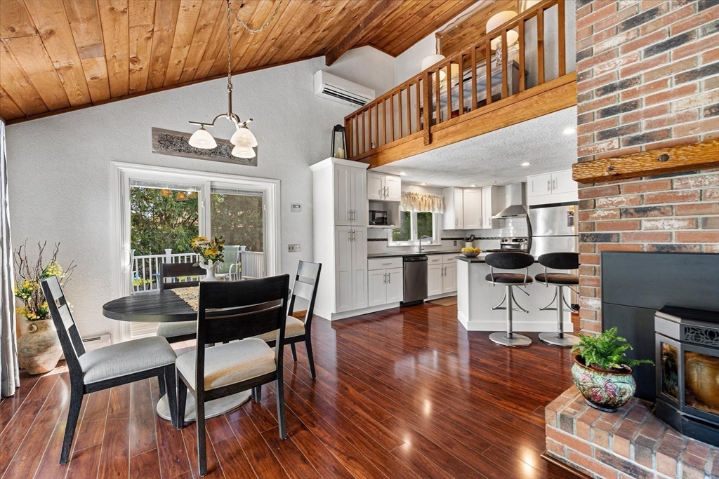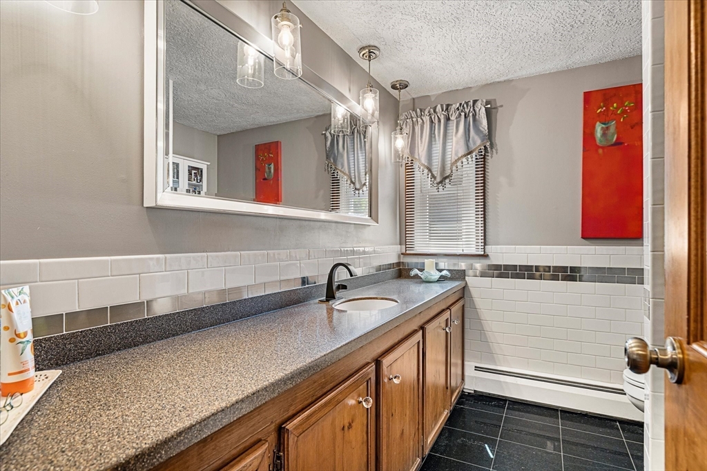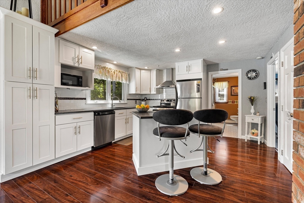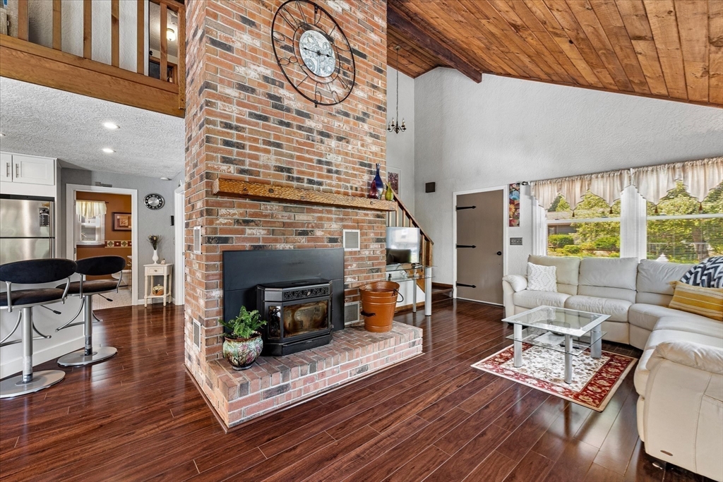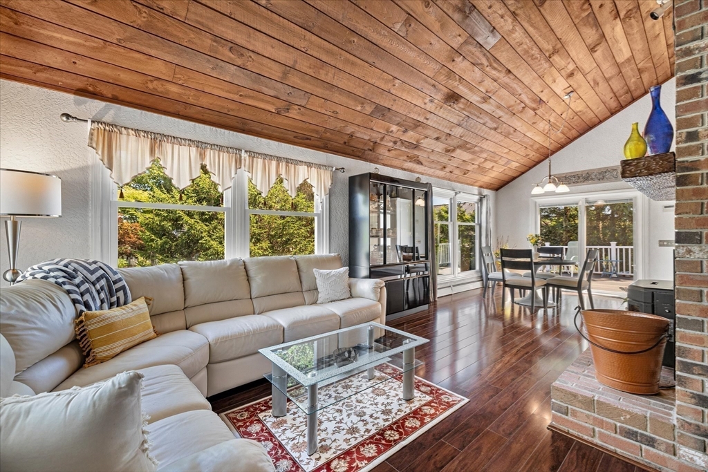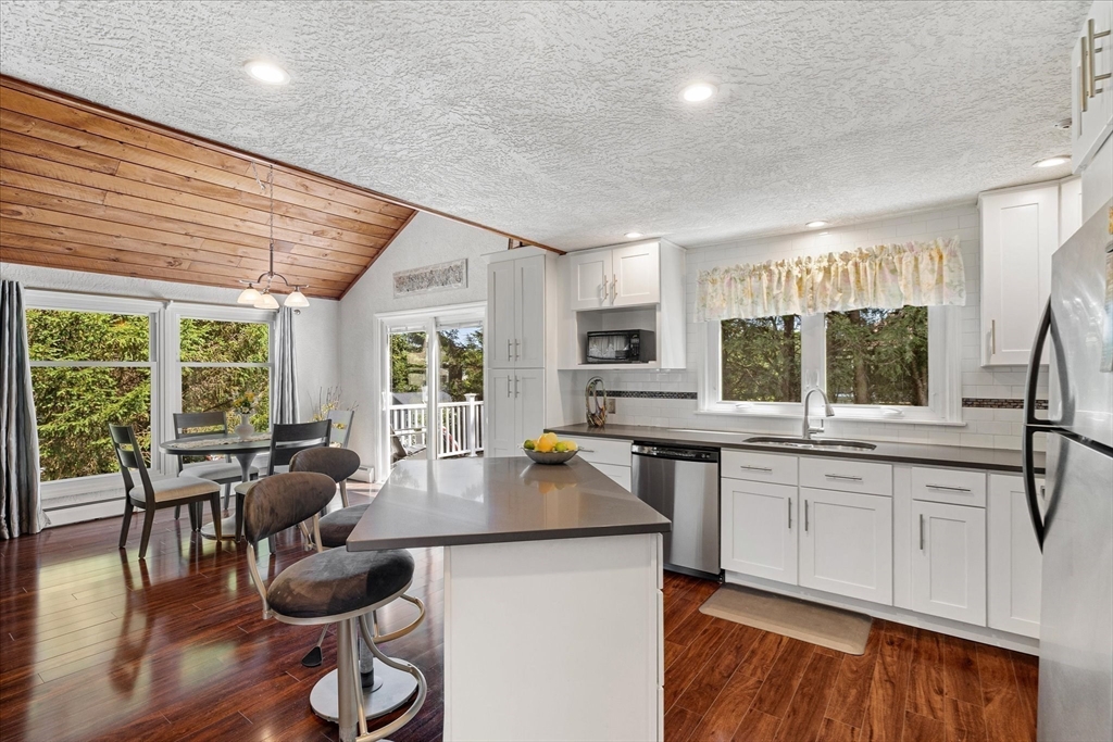 Welcome to this stunning custom-built contemporary home, well-loved and beautifully maintained in a desirable Auburn neighborhood. The interior combines modern finishes with the home's original charm. Open floor plan, cathedral ceilings, living room with central fireplace, and updates galore. First floor master as well as two generous size bedrooms on the second floor, balcony overlooking lower level. This home is truly move-in ready with a beautifully updated kitchen featuring quartz countertops, updated bathrooms, newer windows, and a 2-yr old roof – comes with a 50-yr transferrable warranty. Freshly painted in spring of 2025! Fenced yard with private composite deck. Experience multi-level living that includes a finished walk-out basement, in a convenient location with close access to all major highways, schools, dining, and shopping.