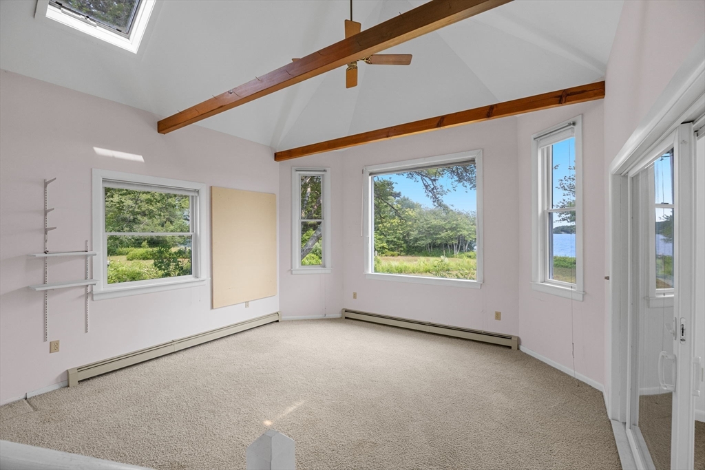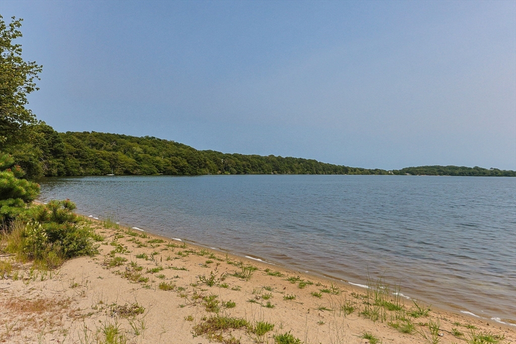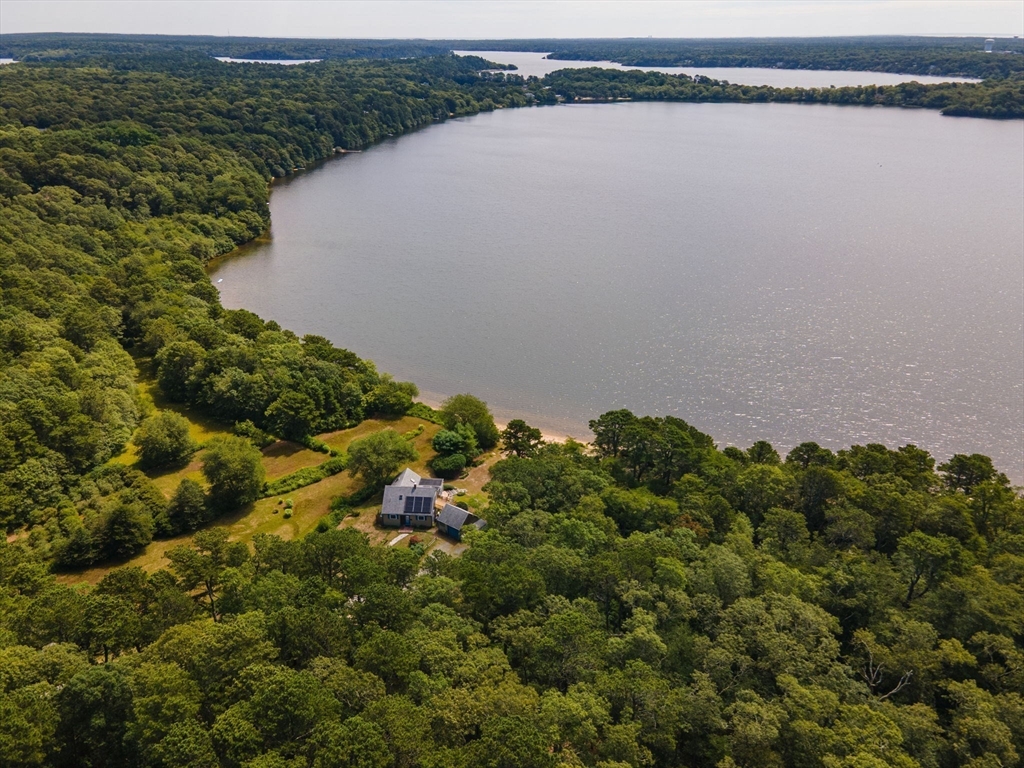 Commanding 2.99 acres with extensive frontage on Seymour Pond, this rare Brewster offering combines privacy, scale, and waterfront access in a singular setting. A winding path leads through mature landscape to a private sandy shoreline—a sanctuary for swimming, kayaking, and paddleboarding—while the surrounding cranberry bogs and natural habitat attract an array of birds and wildlife, creating a true retreat in nature. The two-bedroom, two-bath residence is sited to capture the views, with an open main level, first-floor primary suite, and expansive rear windows that flood the interiors with light. A loft adds flexibility, and an open-air breezeway connects to a one-car garage with storage, crowned by a deck for panoramic water vistas. Centrally located in Brewster yet feeling worlds away, properties of this size, setting, and waterfront presence are increasingly rare—an opportunity to shape a legacy home in one of the Cape’s most captivating locations.