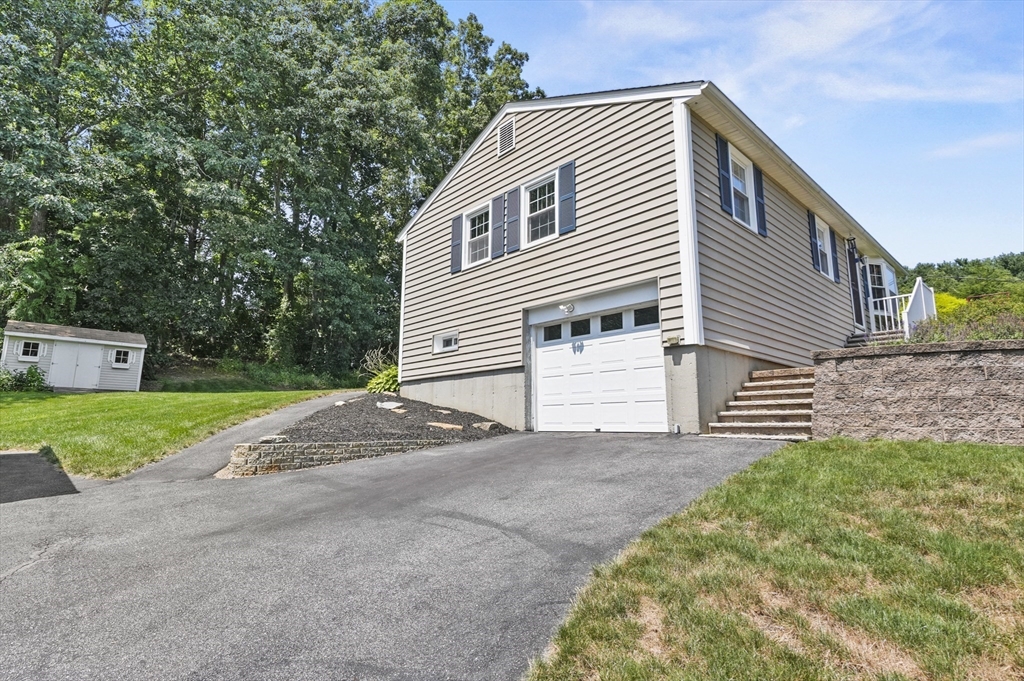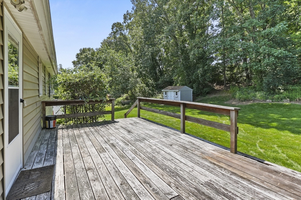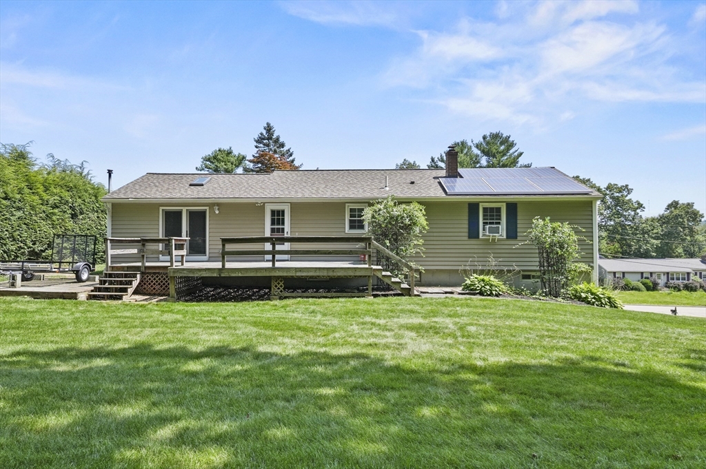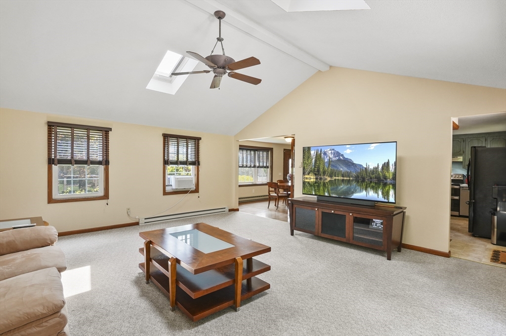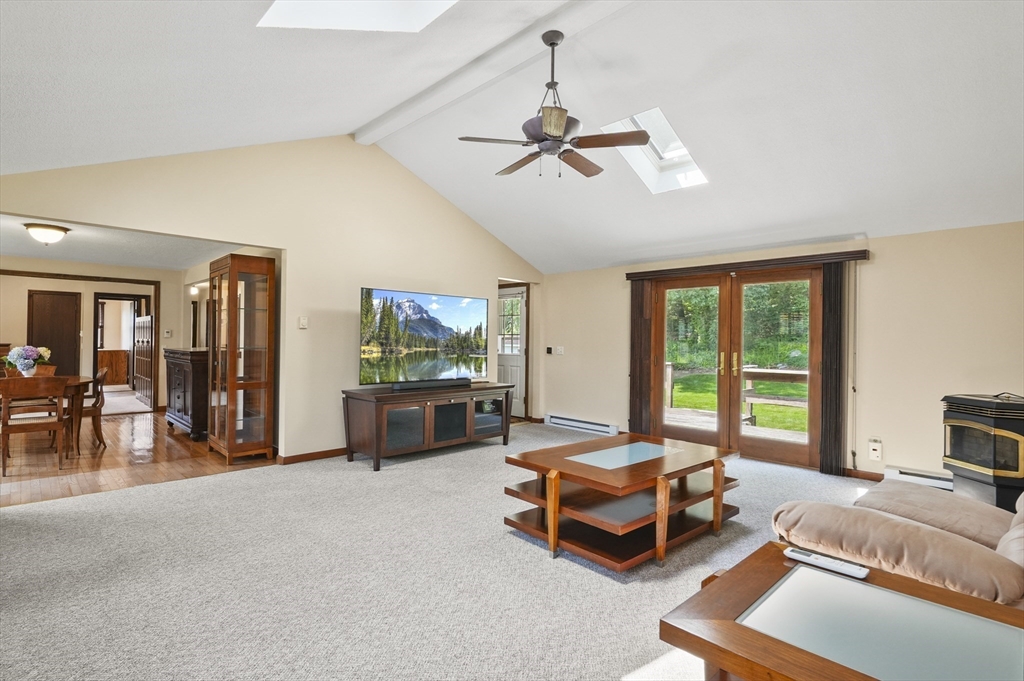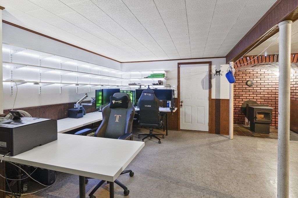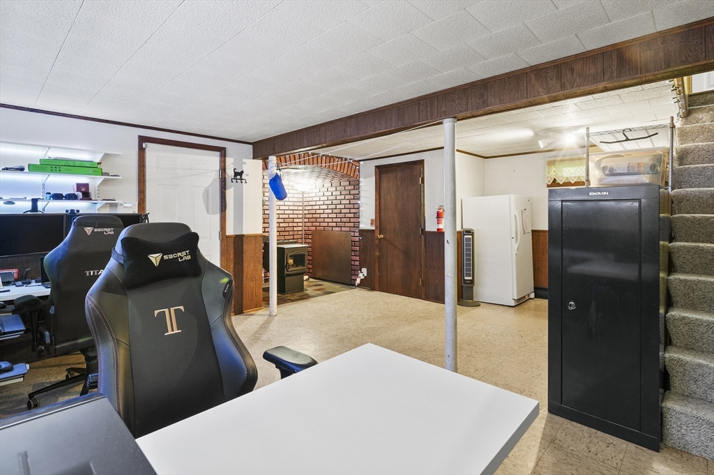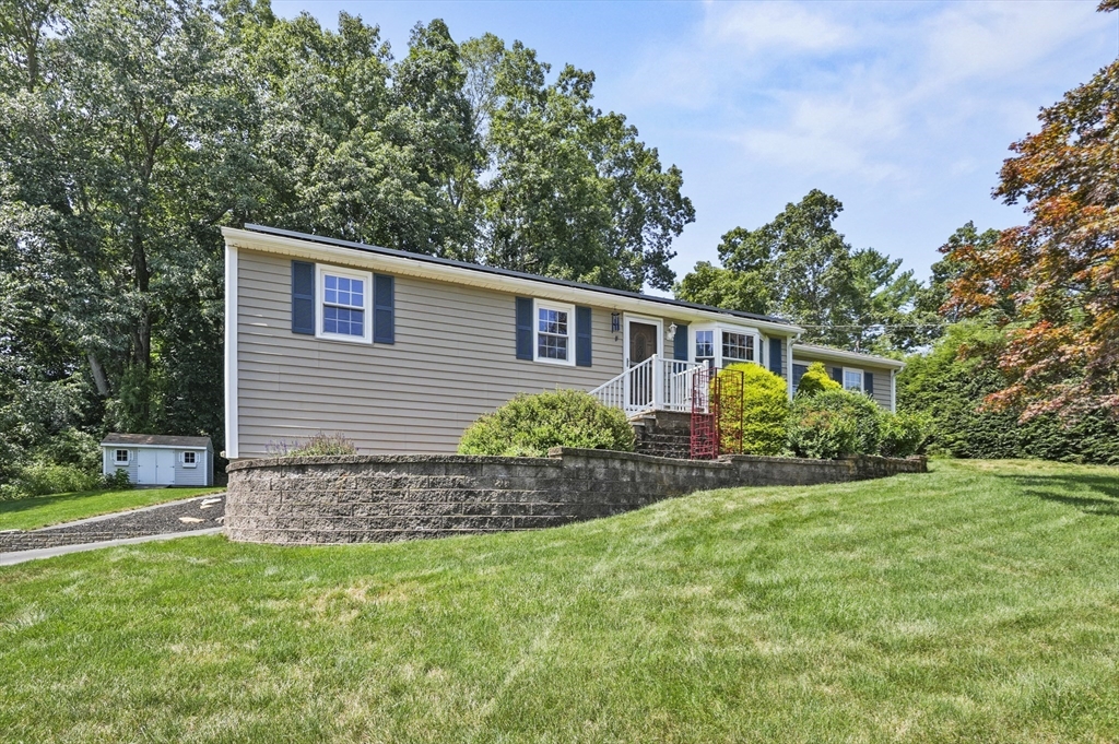 This charming and meticulously maintained ranch offers comfortable single-level living with excellent entertaining space, just a few miles from Webster Lake, and all only minutes from Rt. 395, making it an incredible commuter location. The living room boasts vaulted ceilings with skylights, a pellet stove, and access to a private back deck. A formal dining room with hardwood floors and a bay window opens to the eat-in kitchen, featuring a breakfast nook, stainless steel appliances, and abundant countertop and cabinet space. Originally designed with three bedrooms, one wall was removed to create a spacious den/office—easily converted back to a third bedroom if desired, alongside a full bath. The finished lower level offers a versatile bonus room with a pellet stove, plus two large storage areas for all your needs. Outside, you’ll find an attached garage, plentiful off-street parking, a storage shed, and a deck overlooking the yard.