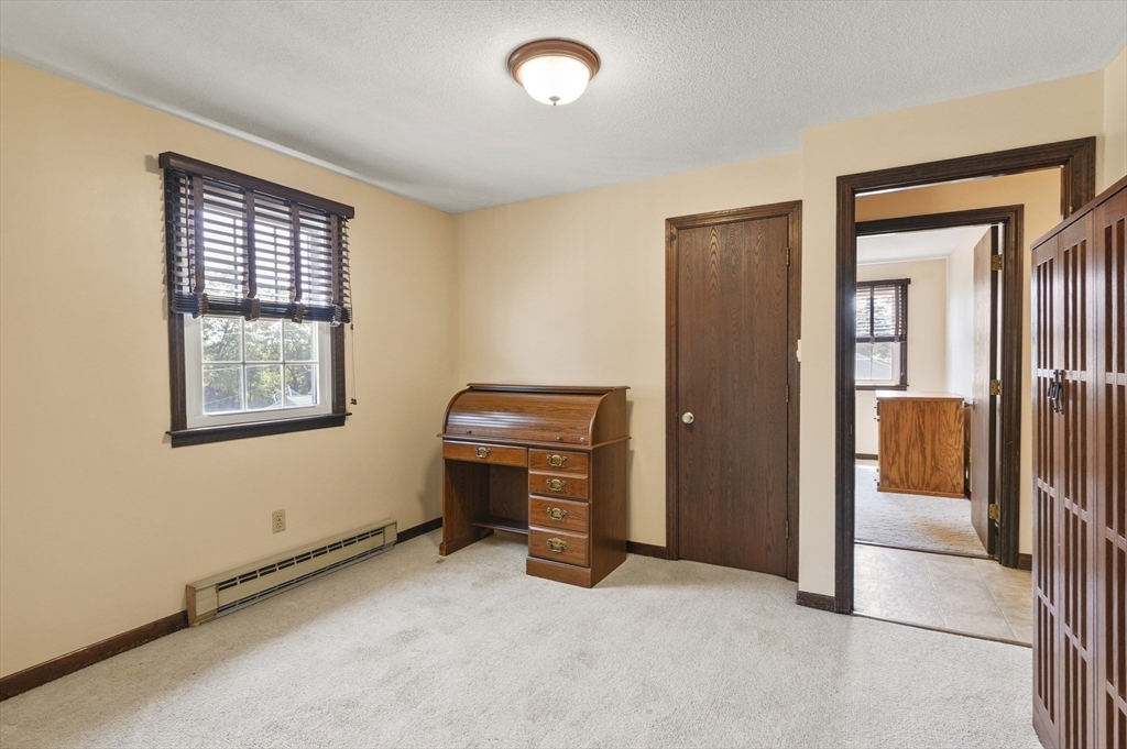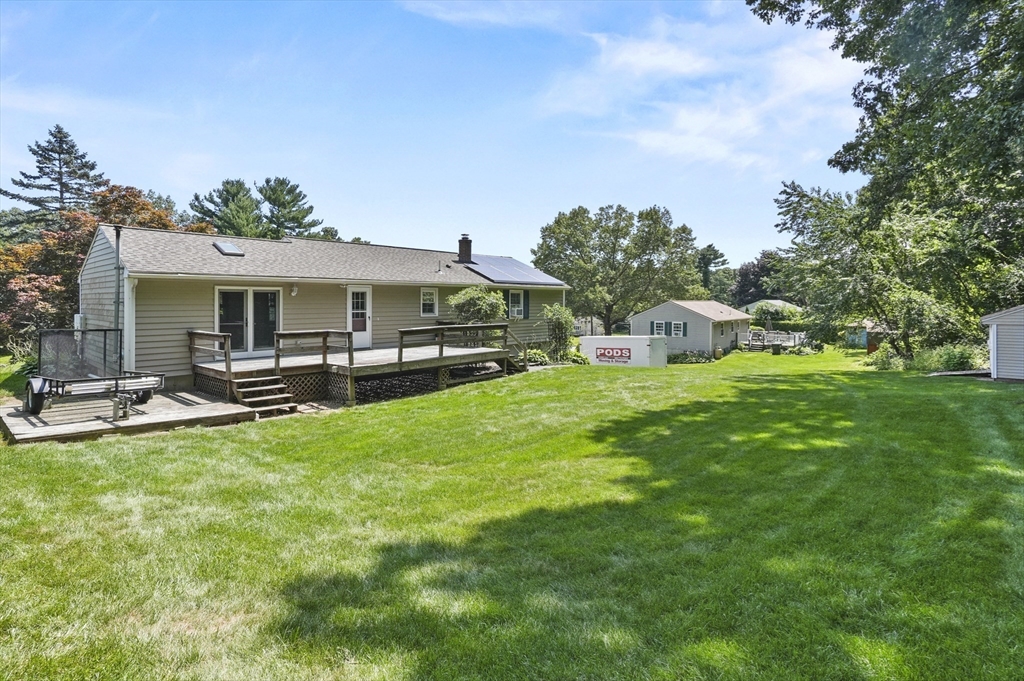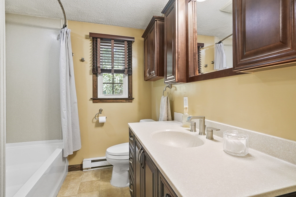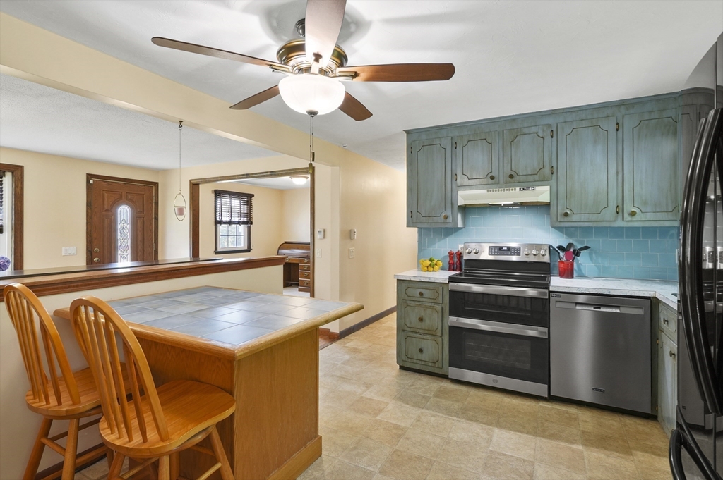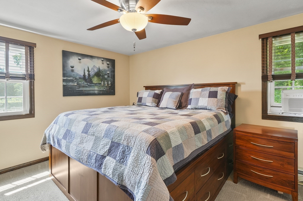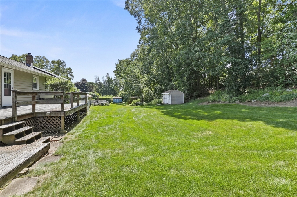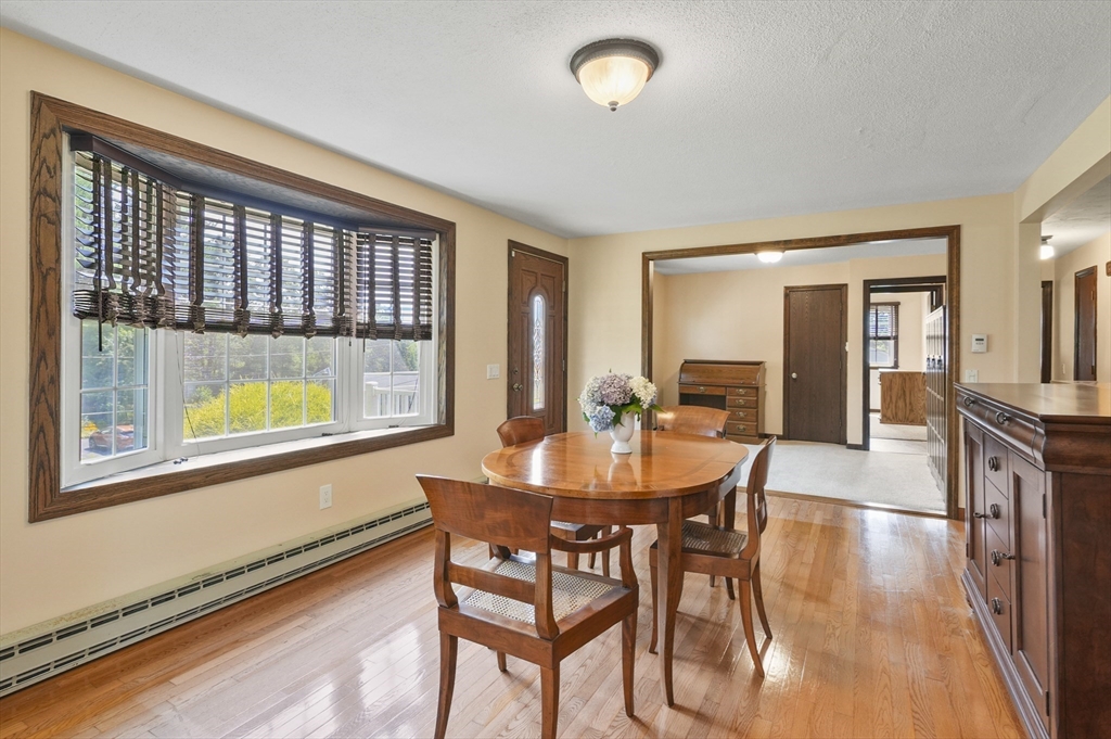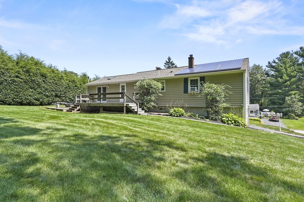 This charming and meticulously maintained ranch offers comfortable single-level living with excellent entertaining space, just a few miles from Webster Lake, and all only minutes from Rt. 395, making it an incredible commuter location. The living room boasts vaulted ceilings with skylights, a pellet stove, and access to a private back deck. A formal dining room with hardwood floors and a bay window opens to the eat-in kitchen, featuring a breakfast nook, stainless steel appliances, and abundant countertop and cabinet space. Originally designed with three bedrooms, one wall was removed to create a spacious den/office—easily converted back to a third bedroom if desired, alongside a full bath. The finished lower level offers a versatile bonus room with a pellet stove, plus two large storage areas for all your needs. Outside, you’ll find an attached garage, plentiful off-street parking, a storage shed, and a deck overlooking the yard.