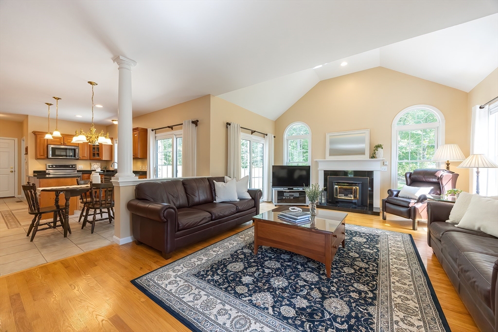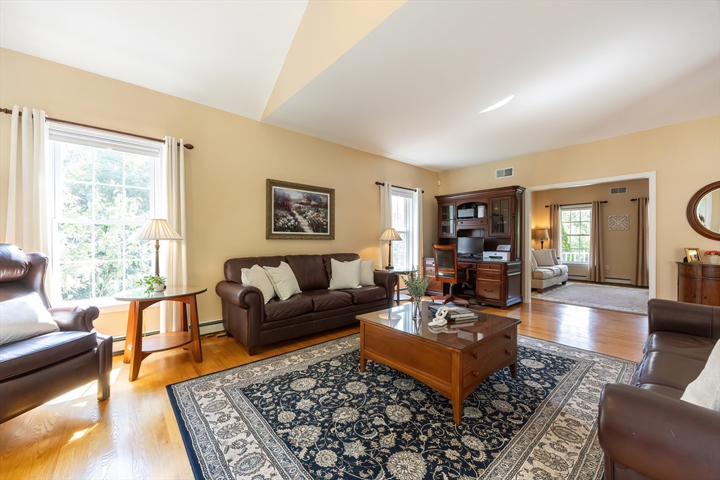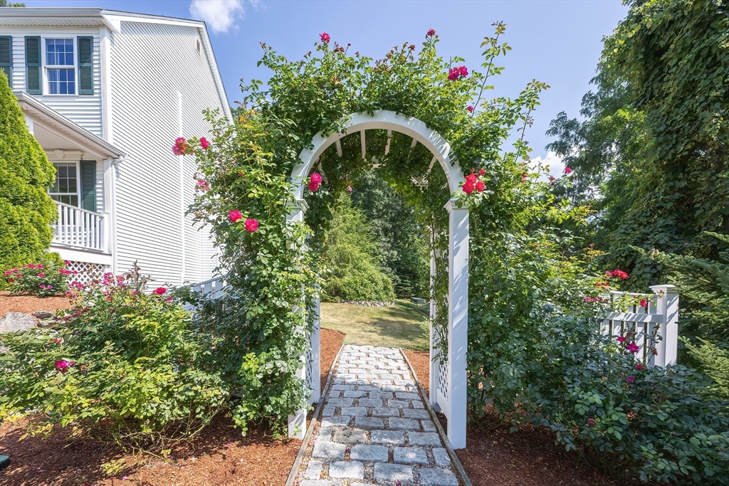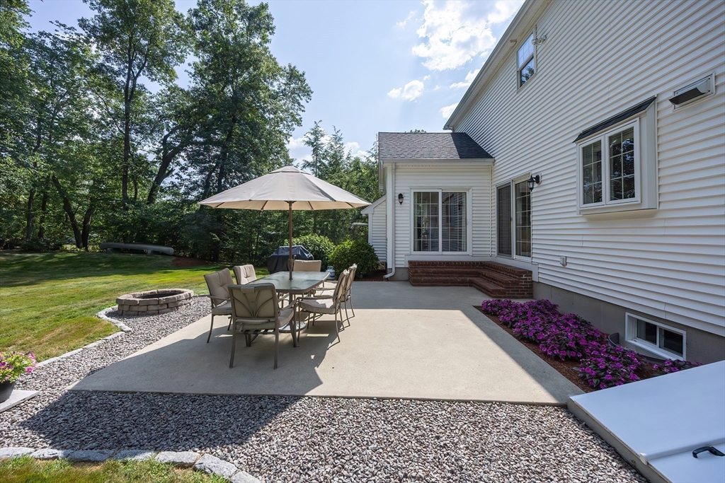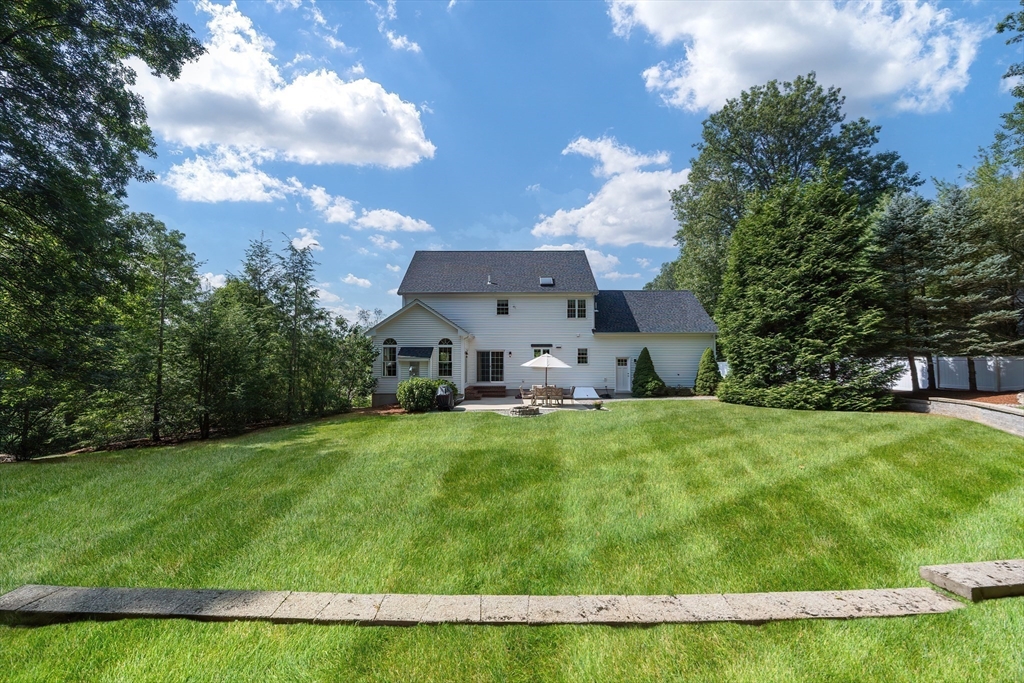 This absolutely pristine home sits gracefully back from the road, welcoming you with a coveted farmer’s porch, with no maintenance composite flooring, perfect for taking in peaceful, private views allowing you to sit & breathe. Step into your own backyard oasis with a spacious patio, built-in fireplace, meticulous landscaping, gardening area & unmatched privacy—ideal for relaxing or entertaining. Inside, the open flow of the living and family rooms blends beautifully into the kitchen filled with custom cabinetry. A formal dining room & stylish half bath with laundry complete the first floor. Upstairs, four generous bedrooms include a beautiful primary suite with cathedral ceilings, walk-in closet, and a spa-inspired bath. One sun-filled bedroom showcases a palladium window. Hardwoods & tile throughout. Perfectly designed and flawlessly maintained. Close to shopping, highways, restaurants but in a sought-after neighborhood. NEW ROOF (2024) NEW C/A (2022). OPEN HOUSE THUR 8/14 4:30-6