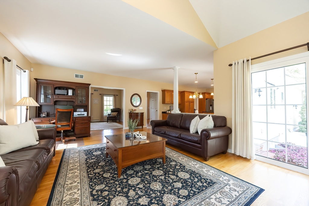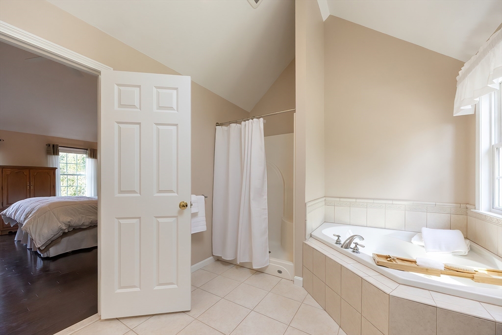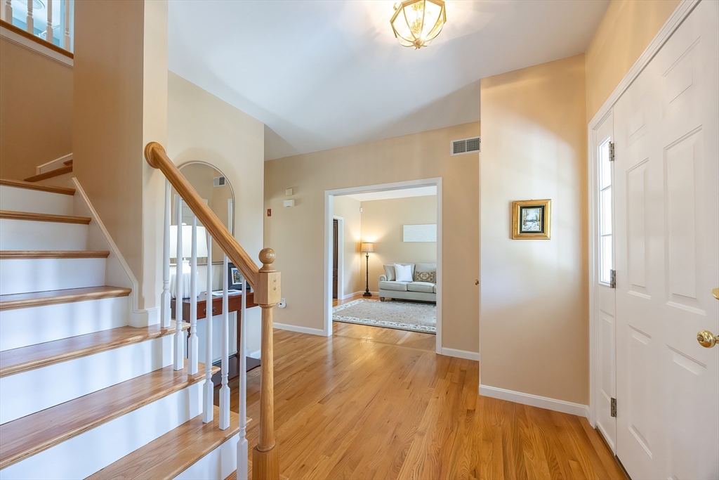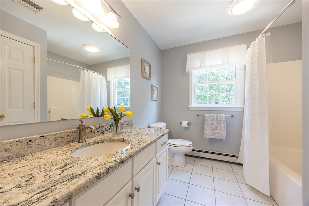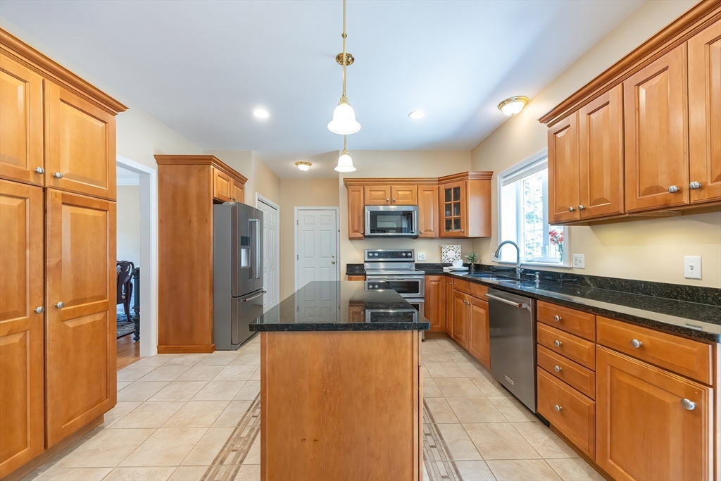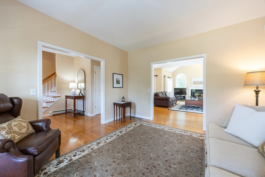 This absolutely pristine home sits gracefully back from the road, welcoming you with a coveted farmer’s porch, with no maintenance composite flooring, perfect for taking in peaceful, private views allowing you to sit & breathe. Step into your own backyard oasis with a spacious patio, built-in fireplace, meticulous landscaping, gardening area & unmatched privacy—ideal for relaxing or entertaining. Inside, the open flow of the living and family rooms blends beautifully into the kitchen filled with custom cabinetry. A formal dining room & stylish half bath with laundry complete the first floor. Upstairs, four generous bedrooms include a beautiful primary suite with cathedral ceilings, walk-in closet, and a spa-inspired bath. One sun-filled bedroom showcases a palladium window. Hardwoods & tile throughout. Perfectly designed and flawlessly maintained. Close to shopping, highways, restaurants but in a sought-after neighborhood. NEW ROOF (2024) NEW C/A (2022). OPEN HOUSE THUR 8/14 4:30-6