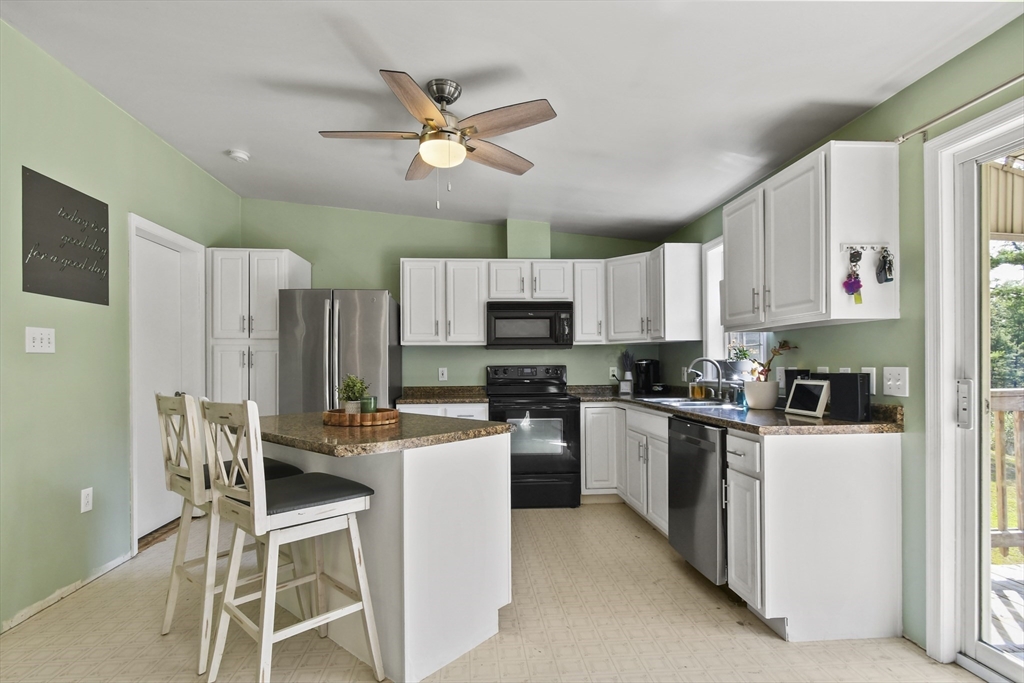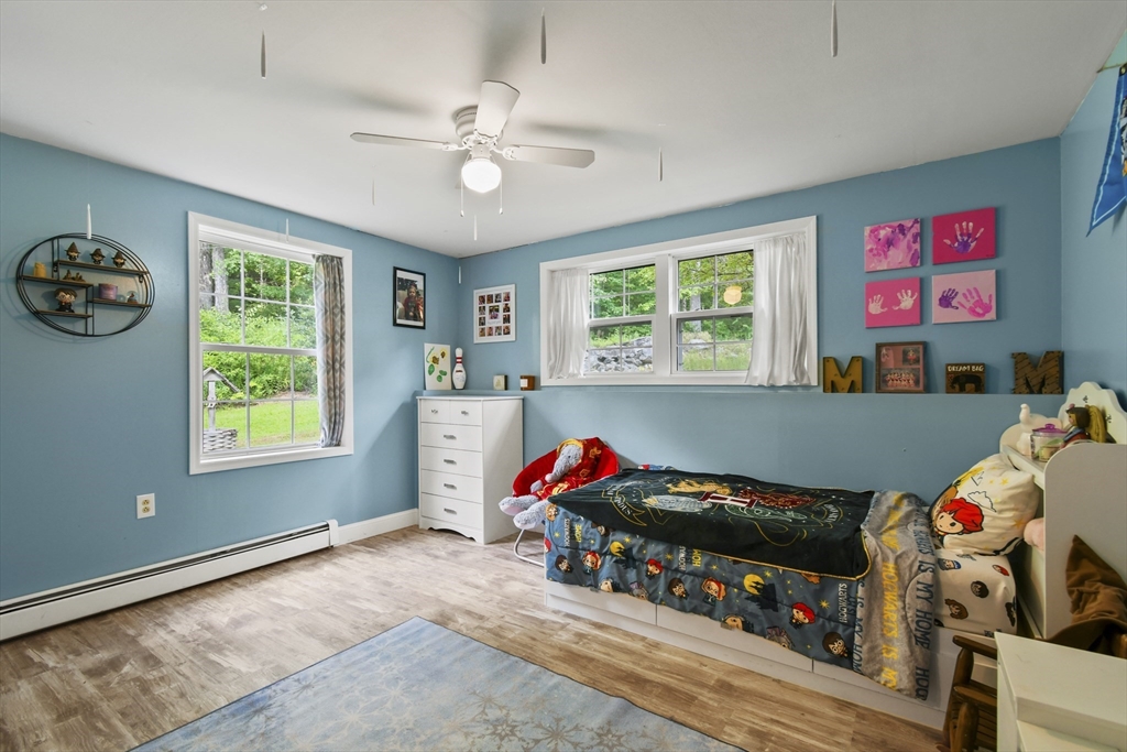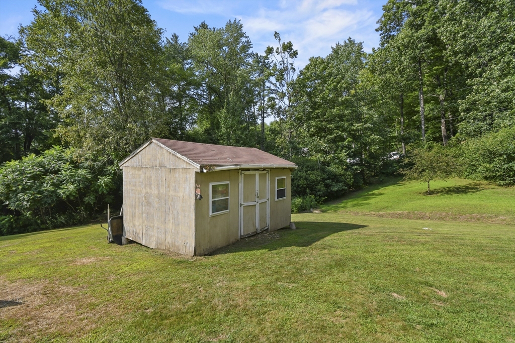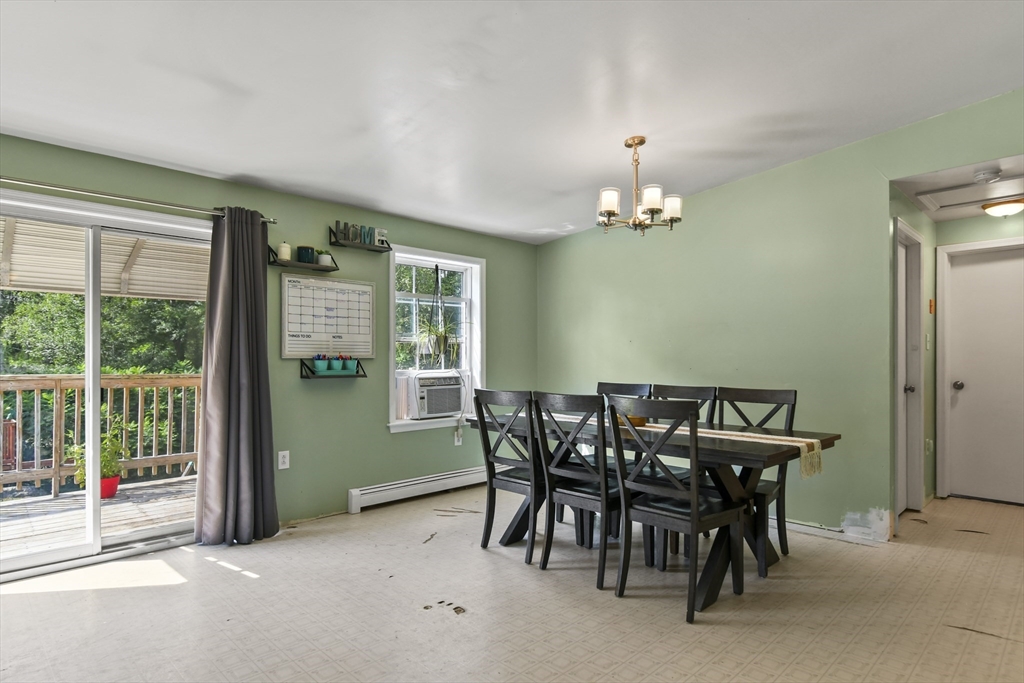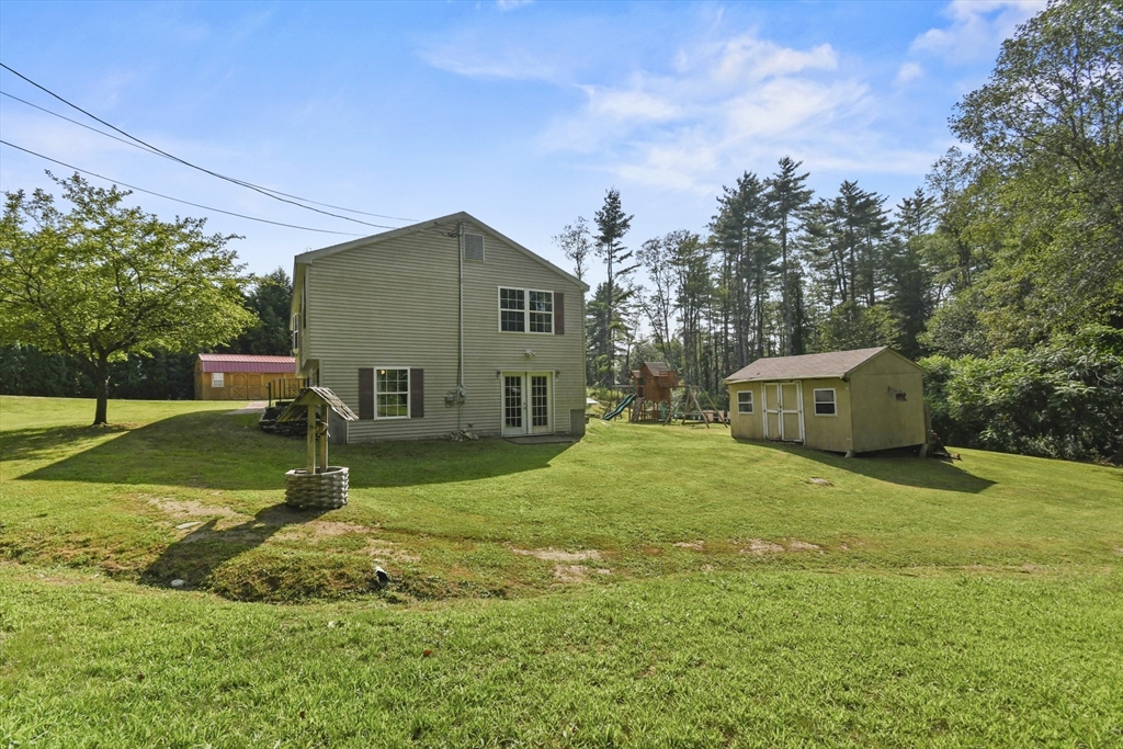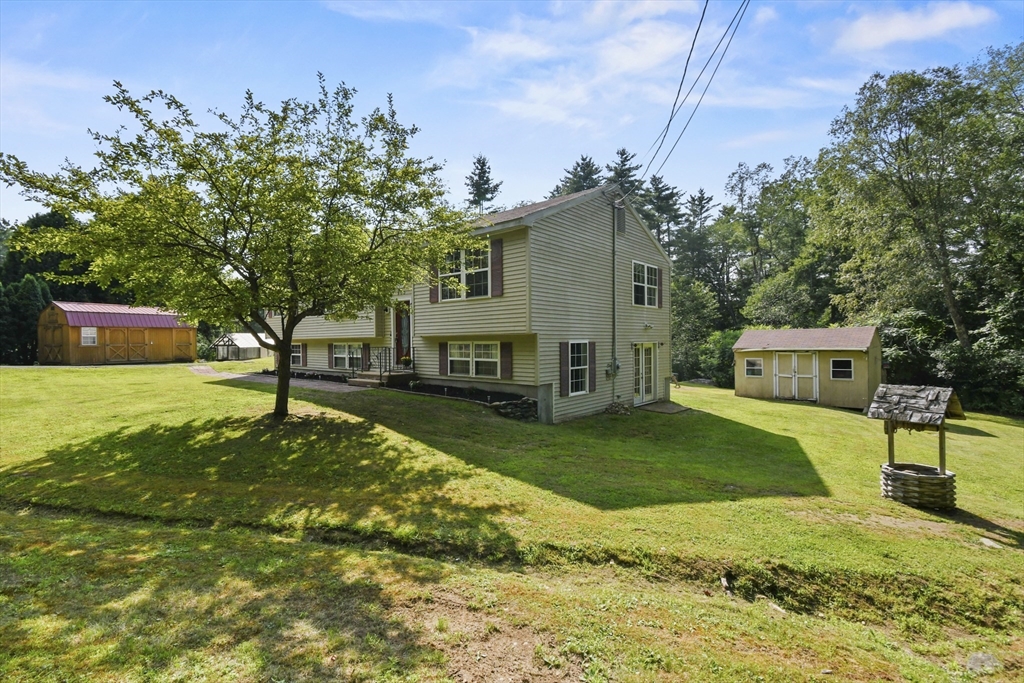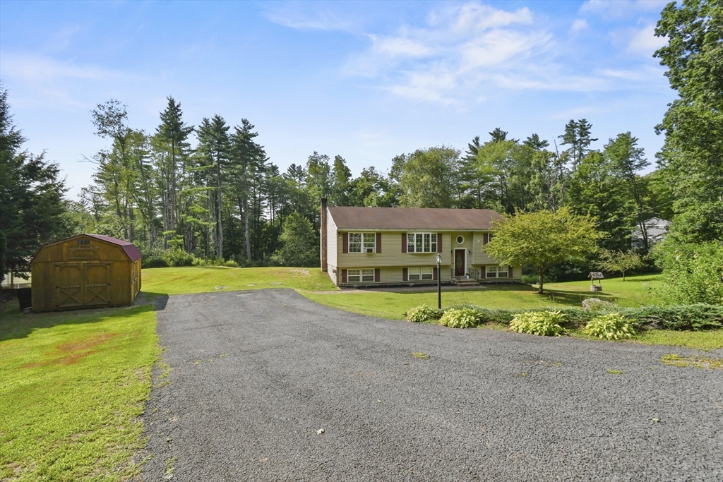 Nestled on over 2 acres, this charming raised ranch offers the perfect blend of comfort & convenience. The sun-filled living room, highlighted by a bow window, flows seamlessly into the kitchen & dining area. The spacious kitchen features a center island w/ addit'l seating & ample counter space, while a sliding glass door opens to the back deck for effortless indoor-outdoor dining. The primary bedroom boasts a private bathroom & generous closet space, w/ two addit'l bedrooms & a full bath completing the main level. The finished lower level offers an addit'l bedroom. With roughed-in plumbing, electrical & sheetrock in place, the remaining space is ready for your personal touch & could be ideal for multi-generational living. Enjoy the privacy of your backyard, complete w/ storage sheds & plenty of room for outdoor activities. Recent updates include a new heating system (2021). While tucked away for peace & quiet, this home is just minutes from shopping, dining & more.
