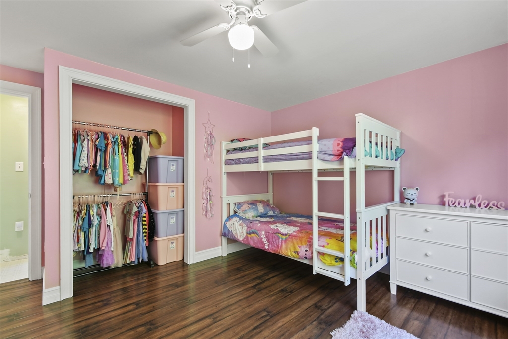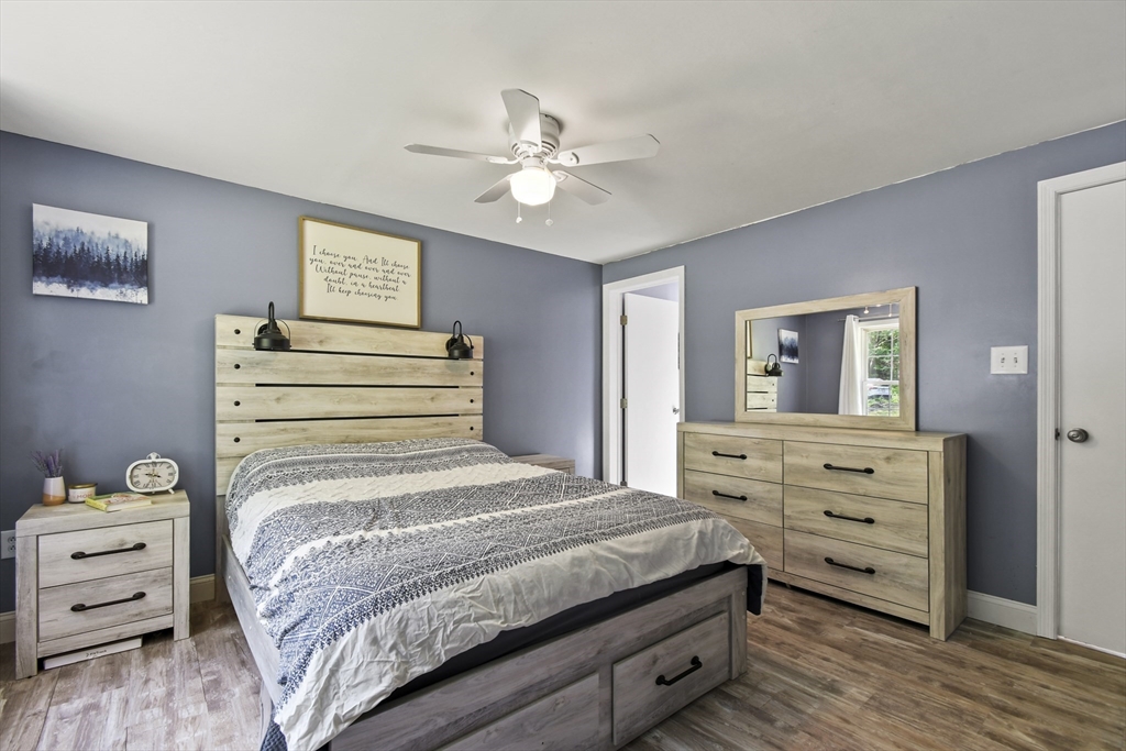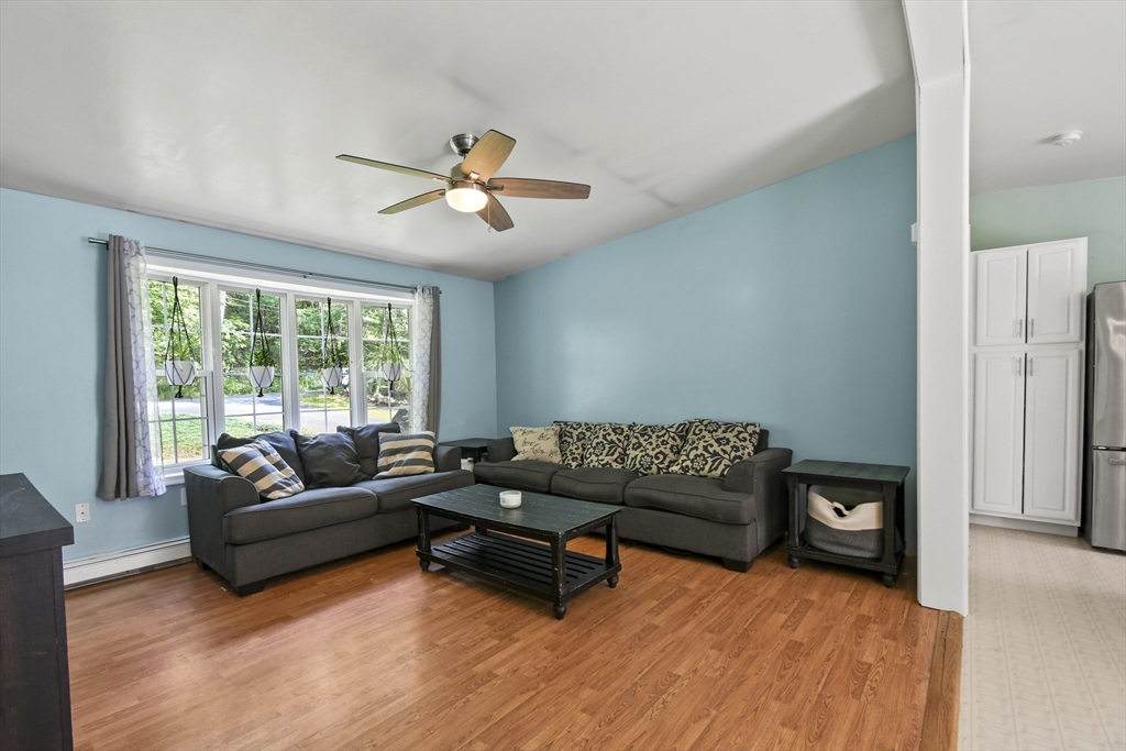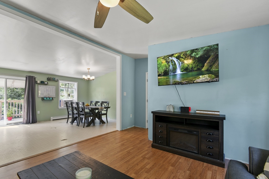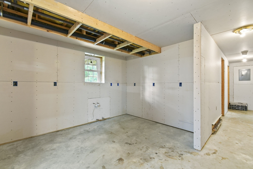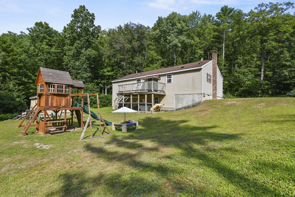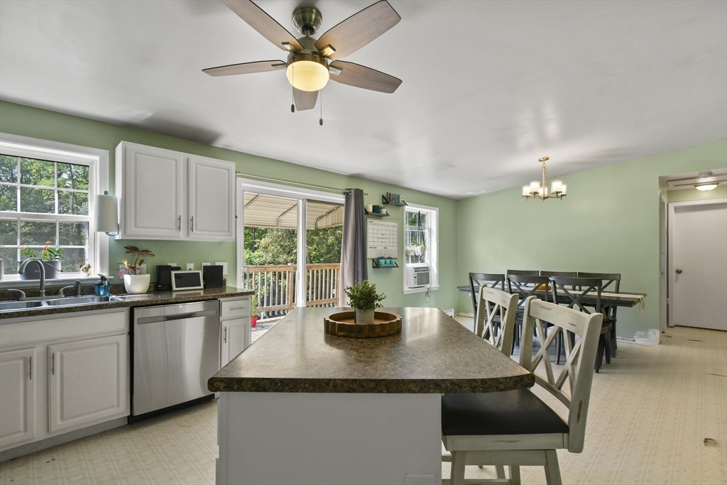 Nestled on over 2 acres, this charming raised ranch offers the perfect blend of comfort & convenience. The sun-filled living room, highlighted by a bow window, flows seamlessly into the kitchen & dining area. The spacious kitchen features a center island w/ addit'l seating & ample counter space, while a sliding glass door opens to the back deck for effortless indoor-outdoor dining. The primary bedroom boasts a private bathroom & generous closet space, w/ two addit'l bedrooms & a full bath completing the main level. The finished lower level offers an addit'l bedroom. With roughed-in plumbing, electrical & sheetrock in place, the remaining space is ready for your personal touch & could be ideal for multi-generational living. Enjoy the privacy of your backyard, complete w/ storage sheds & plenty of room for outdoor activities. Recent updates include a new heating system (2021). While tucked away for peace & quiet, this home is just minutes from shopping, dining & more.