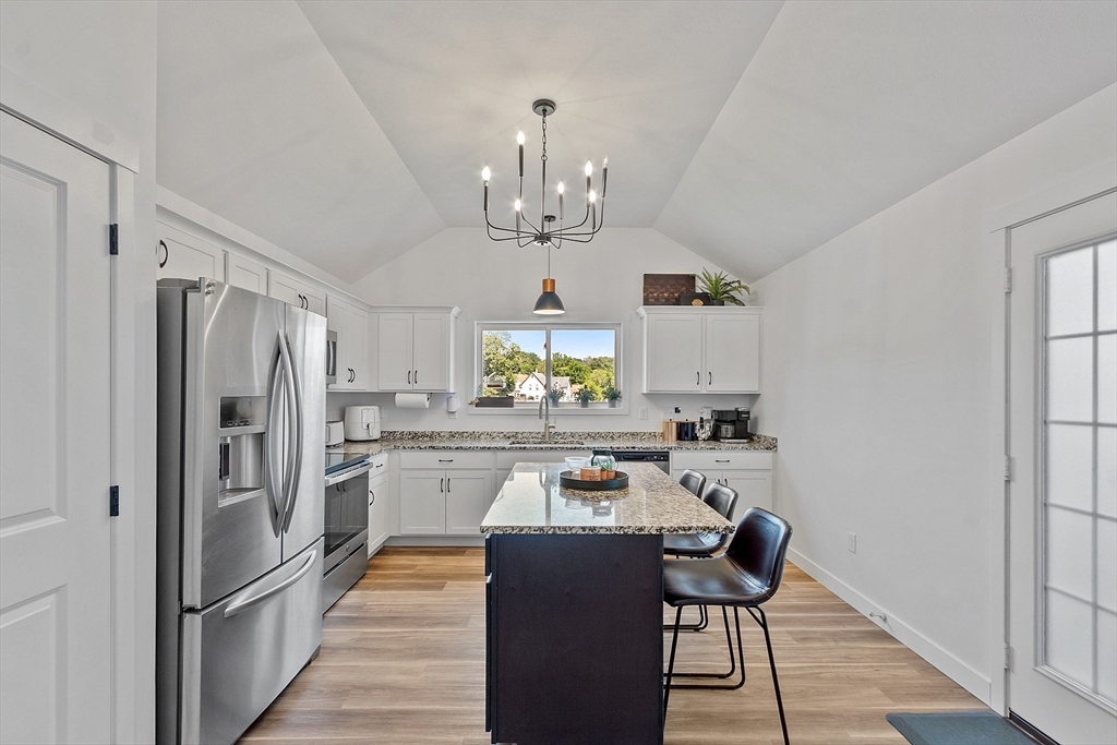 Move right into this beautiful Half-Duplex with attractive farmer's porch and great open floor plan! Features include a cabinet packed kitchen with stainless appliances, center island, granite countertops and vaulted ceiling; spacious living room and dining area; LVP flooring; 1st floor laundry and access to deck and oversized 1 car-attached garage . Second floor offers a large primary suite with cathedral ceiling, huge walk-in closet and double vanity primary bath; 2 additional spacious bedrooms and main bath. Walk-out lower level offers high ceilings, great potential to be finished and access to a nice, level, fenced backyard. Conveniently located near Pulaski playground and dog park; close to shopping, restaurants and just minutes to major routes! Showings begin at Saturday Open House from 12- 2 p.m.