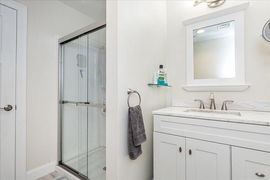 This newly built end unit townhouse offers many of the of the features of a single family home. Walk into a large open living room with a spacious closet.The kitchen is a culinary dream, featuring plenty of shaker cabinets that provide ample storage and a large kitchen island perfect for meal preparation or casual dining. Granite countertops offer a touch of elegance and durability, complemented by a stylish backsplash that adds visual interest.The kitchen bar separates the kitchen and dining room which has a large closet for storage. The first floor also of also has a half bath with a barn door and new washer and dryer. The main bedroom has a large closet and full bath with shower.The second floor also features two additional bedrooms and a full bath. Other characteristics of this home are hardwood floors throughout, custom built-ins in all the closets, central air conditioning, ceiling fans, a pull down attic for storage, private outdoor space, two car deeded parking and much more.