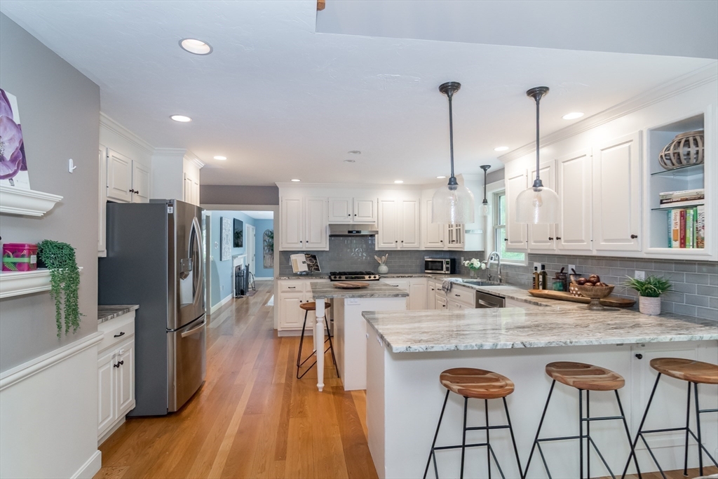 Nestled in desirable Springwood Estates, 11 Kimball Road is a beautifully maintained Cape on a generous, professionally landscaped lot with quintessential New England charm. Inside, enjoy a well-designed layout featuring a sunlit family room with soaring windows, hardwood floors, and a cozy fireplace. The updated kitchen boasts granite counters, stainless appliances, a center island, and eat-in area with access to a private deck overlooking a stunning in-ground gunite pool—ideal for relaxing or entertaining. Upstairs, the spacious primary suite offers a sitting area and private bath. Three more bedrooms, a full bath, and a home office provide comfort and flexibility. Recent updates include a new septic, roof, windows, and key systems for modern efficiency. Additional features: 3-car garage, central air, and fenced yard. Located in the top-rated Hopkinton school district with easy highway/commuter rail access. Welcome Home!