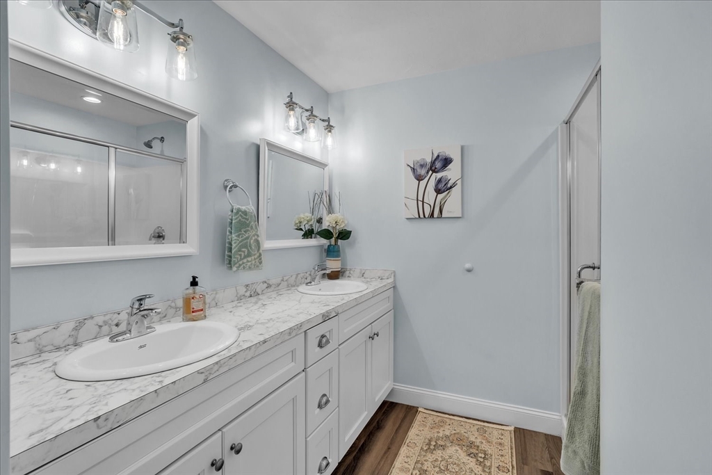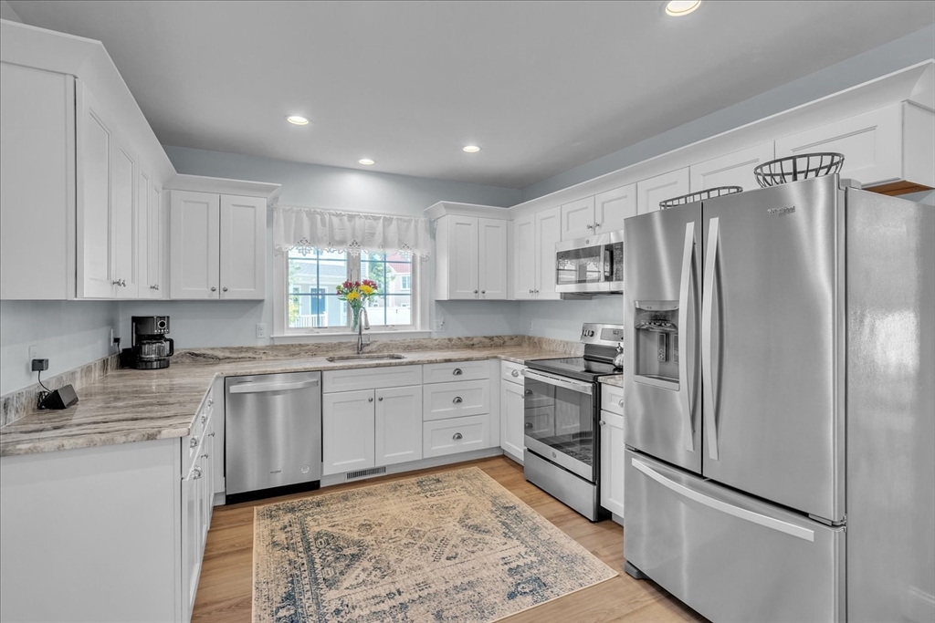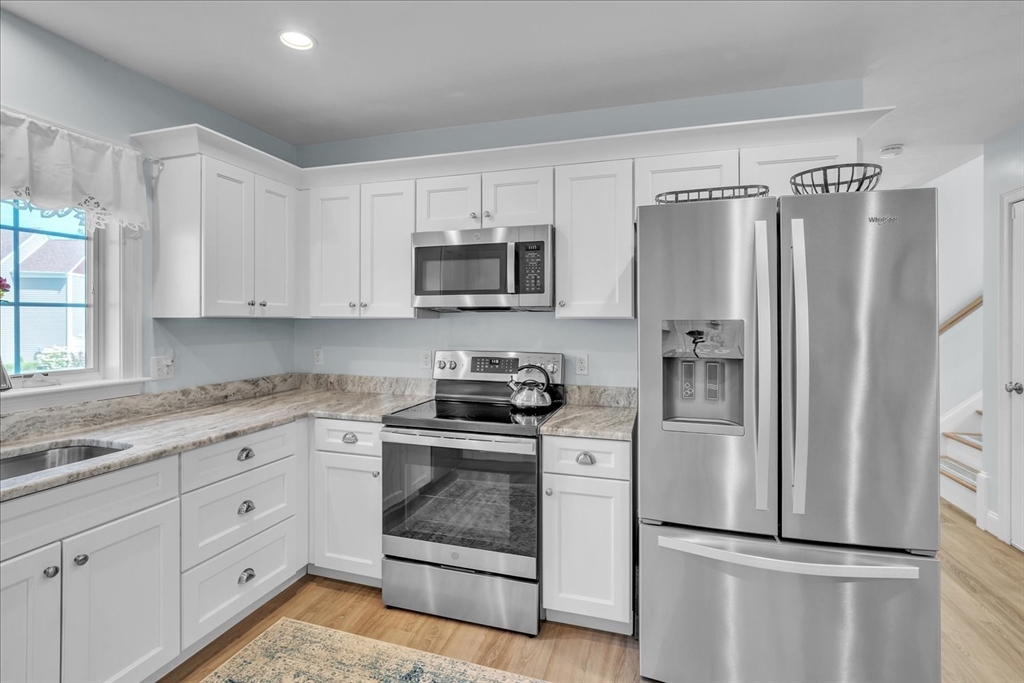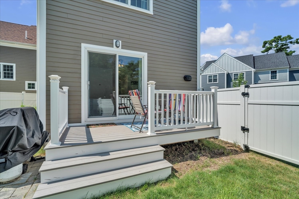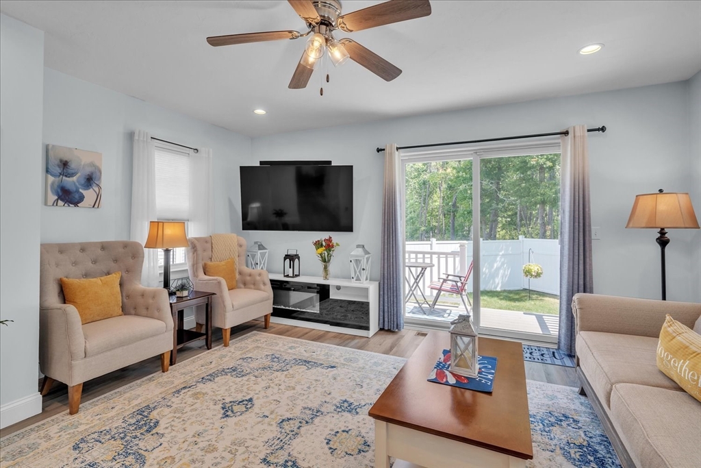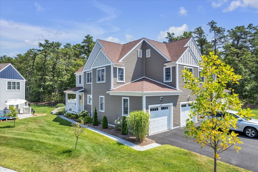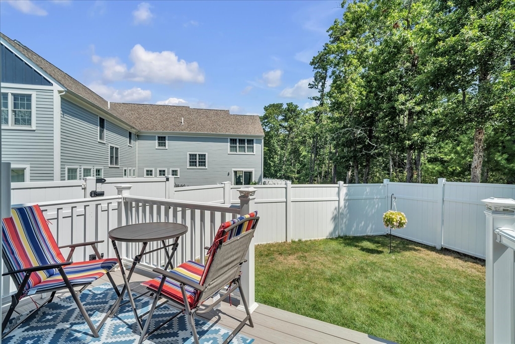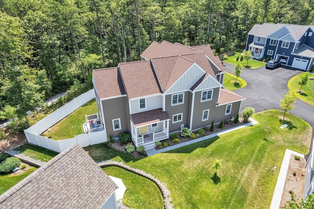 Welcome home to 24 Drum Drive! Stunning 3 bedroom, 2.5 bath townhome, tucked peacefully away in a sought after community. Completed in 2021. Have you been looking for a new hone that truly shines like new construction, offers ease of condo living, gorgeous wooded views, and fenced in yard perfect for privacy, children and pets. Easy access to the bustling Plymouth waterfront full of shops and restaurants, minutes to amazing sandy beaches, golf courses, and miles of numerous hiking and walking trails in your back yard. Upgraded granite countertops in the kitchen, stainless steel appliances, first floor laundry and convenient half bath. You will find hardwood stairs leading to the 2nd floor spacious primary suite with double vanity and shower. Two additional bedrooms and a full bathroom offer flexibility for guests, family, or a home office. This home also includes central a/c, a one car garage, great closet space and full basement with potential to finish.. Call to schedule your tour.