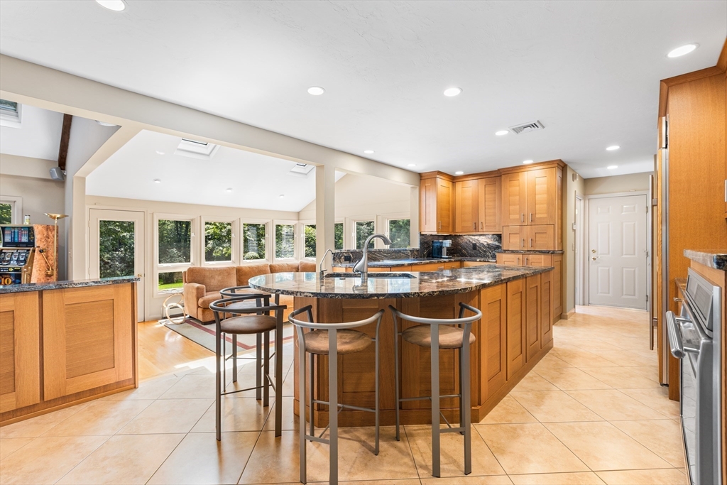 This exceptional home combines timeless design w/ tons of modern updates, offering space, style, & flexibility for today’s lifestyle. Set on a beautiful level acre lot, this contemporized colonial features gleaming hardwood floors, a chef’s dream kitchen w/Sub-Zero refrige, granite center island & rich cabinetry—perfect for cooking & entertaining. Natural light pours into the sunroom w/access to patio & yard, while the spacious living room w/soaring ceiling, skylight & gas fireplace creates a cozy hub for everyday living complete w/wet bar. A massive dining room provides ideal space for hosting holidays or special gatherings. 1st floor office, 5 generously sized bedrooms including a huge primary suite w/vaulted ceiling & walk-in closet w/custom built ins, dressing area, 2nd floor laundry plus a finished LL- this home checks every box. If you’re looking for room to grow, work from home, or simply stretch out, this flexible floor plan & serene setting make this property one-of-a-kind.