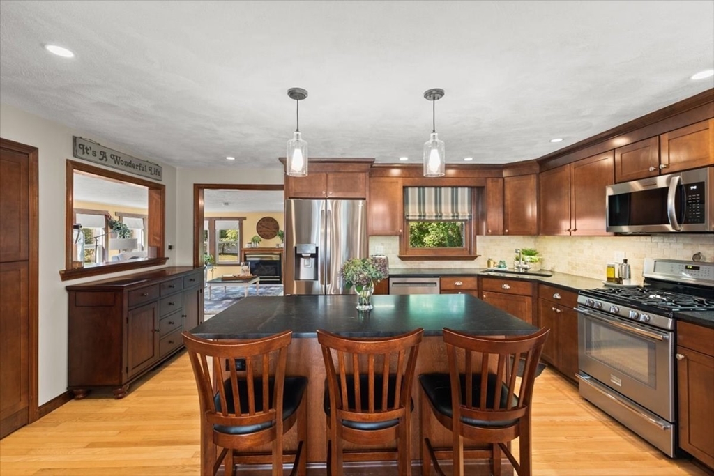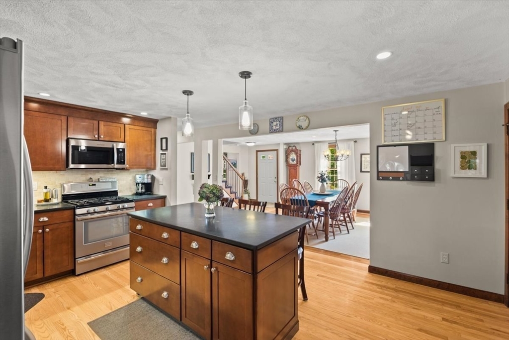 Situated at 275 Center Street in Easton, this beautifully maintained home blends timeless charm with modern comfort. From the front, you’d never guess the backyard’s true scale — a private oasis with lush lawn, inground pool, vegetable gardens, and abundant space to relax or play. The showpiece kitchen boasts honed granite counters, shaker cabinets, a prep-and-dine island, and elegant backsplash. The inviting dining room centers around a cozy fireplace, while the sun-filled living room opens to a deck overlooking your hidden retreat. A private office and separate sitting room complete the main level. Upstairs, the spa-inspired main bath with walk-in shower elevates the primary suite, joined by three additional bedrooms and a full bath. An unfinished basement and two-car garage provide ample storage. Showings start Saturday Aug 16th