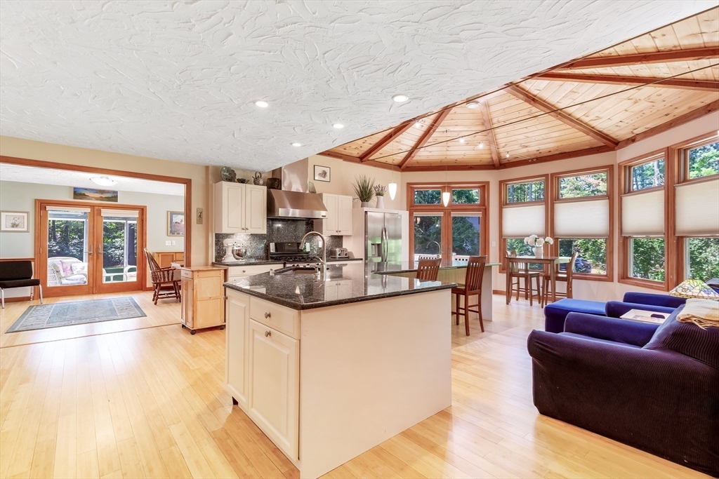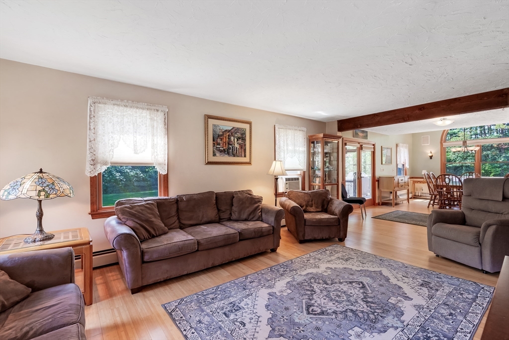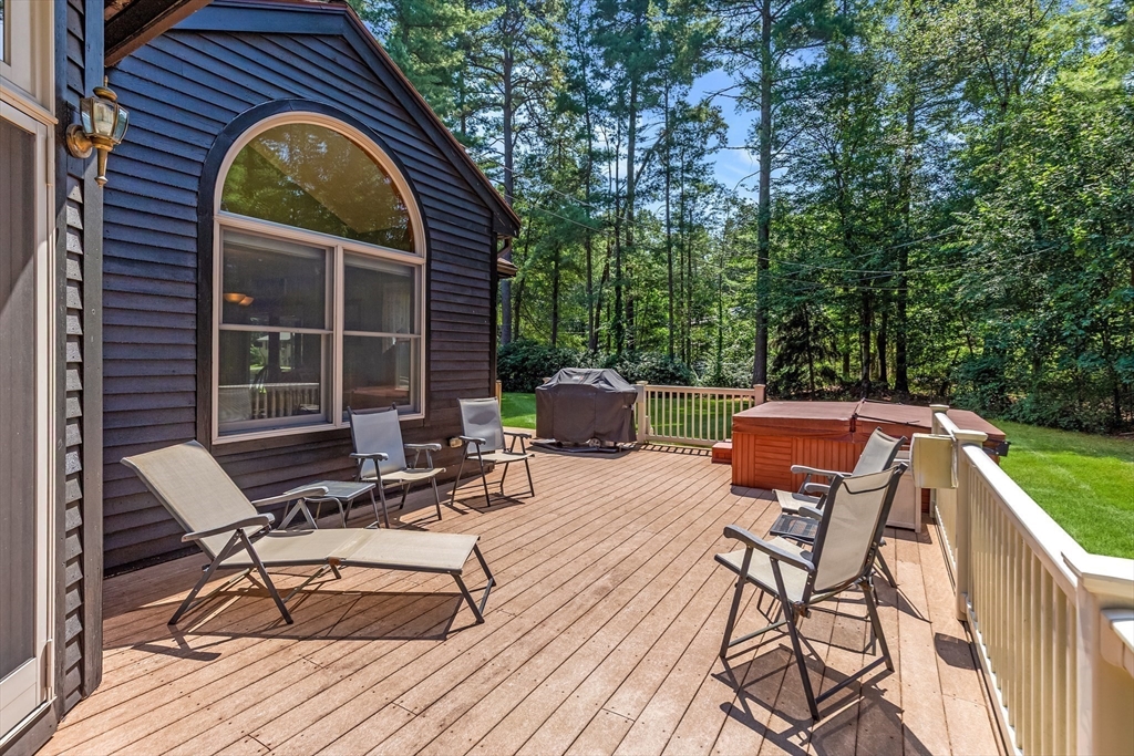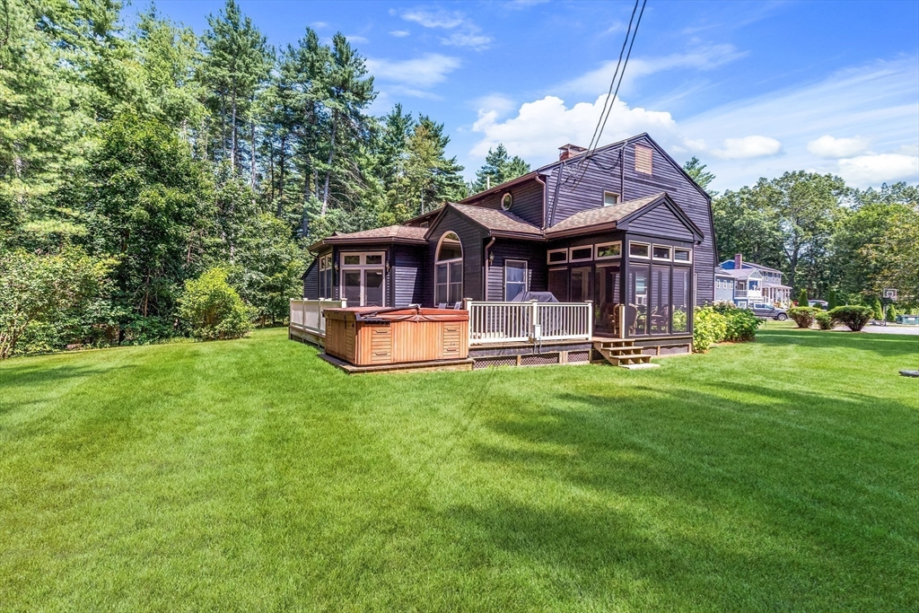A beloved home for over 42 years, now ready for its next chapter! This meticulously maintained Gambrel offers 3 BR, 2.5 BA, and a location you’ll love, tucked in a quiet cul-de-sac just two blocks off Route 113. Step inside from the driveway/garage into a spacious mudroom that flows right into a stunning eat-in kitchen (redesigned in 2004). Sunlight pours in, highlighting the generous counter space, abundant storage, and open layout—perfect for gatherings big or small. Host events in the formal dining room, then take the party outside to the back deck for grilling, soak in the jacuzzi, and extend the night in the screened porch. On cooler nights, unwind in the oversized living room by the gas fireplace, or slip away to the second living room/home office for a quiet escape. Upstairs, you’ll find three comfortable bedrooms and two well-appointed bathrooms. The partially finished lower level offers endless possibilities: gym, home theater. Level lot, place to make a lifetime of memories!