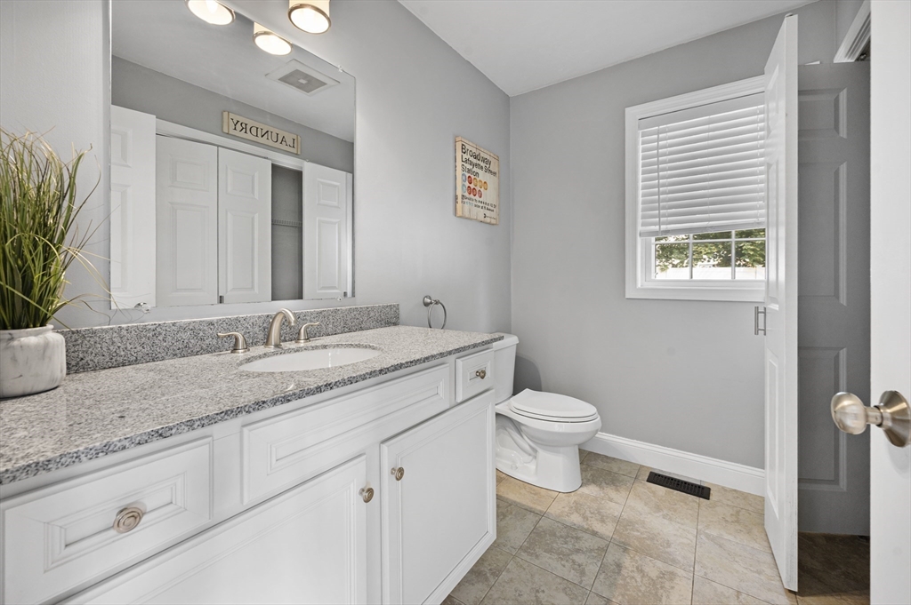 Welcome home! This beautiful Colonial offering an open, inviting layout perfect for today’s lifestyle. The granite kitchen features stainless steel appliances, a center island, and seamless flow into the sun-filled living and formal dining rooms. First-floor laundry with half bath adds convenience. Gleaming hardwood floors run throughout, complemented by gas heat and central A/C. Upstairs, find three spacious bedrooms including a serene primary suite, plus an additional full bath. Custom closets shelves / build ins perfect for all needs. The walk-up attic provides excellent storage or the potential for a dream walk-in closet. Finished basement perfect for entertaining family and friends. Just minutes from major routes, shopping, dining, and everyday amenities.