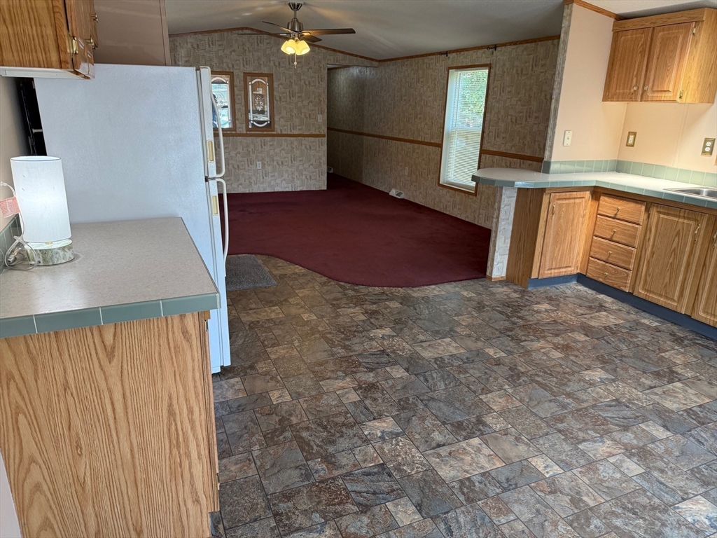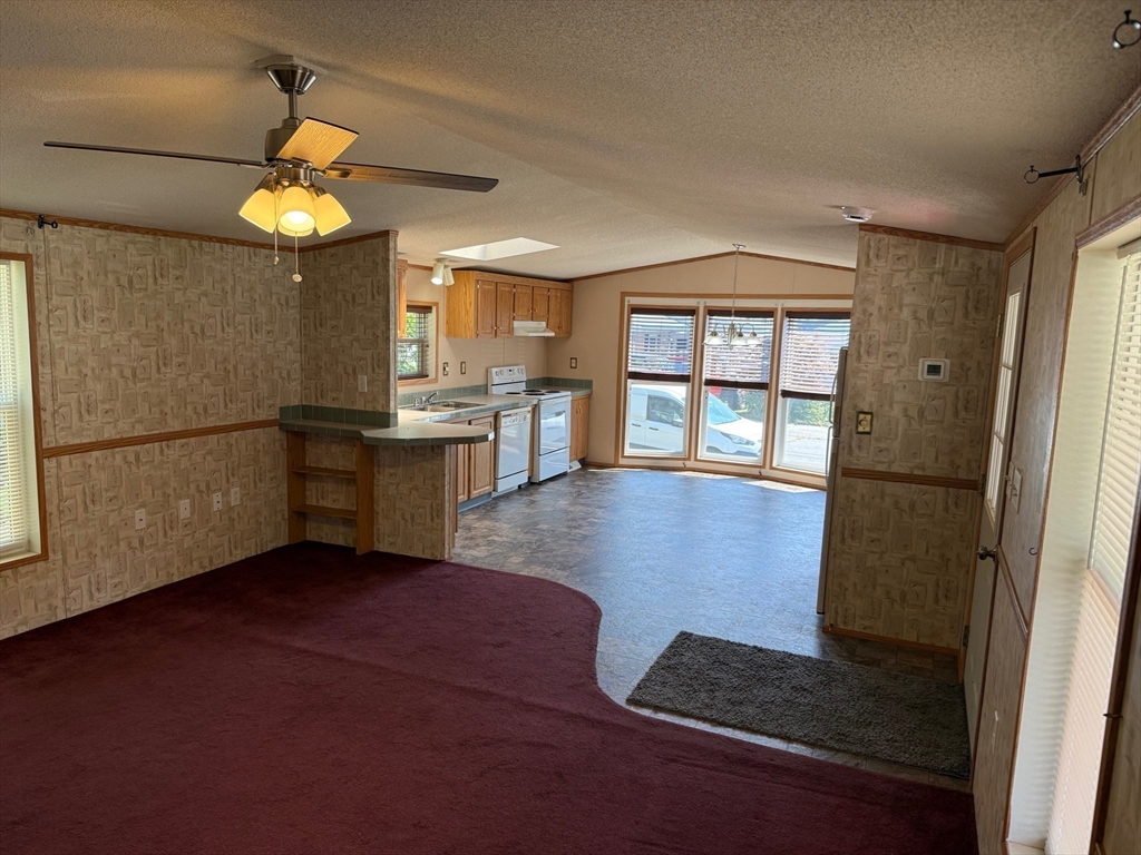 Welcome to the mobile home park located in Norton's Mobile Home Estates in Unit #21 that awaits you! This home is a 2006 Burlington unit which features a large bow window area for a breakfast nook that faces the Norton Reservoir! This very large kitchen with a breakfast area & lots of cabinets includes all appliances & a skylight! This open floor plan features a large family room area with windows on both sides! Bathroom has a generous linen storage area & right across from the 6 x 3 laundry area washer & dryer are included! Large 13' x12' primary bedroom with large double closet! Second bedroom is 12' x11 ! Enjoy your covered porch as you relax during the upcoming beautiful Fall season! Paved 2 car off street parking! Close to public transportation , shopping, park, walking trails, golf course, medical facility, conservation area, highway access, private & public school and college..