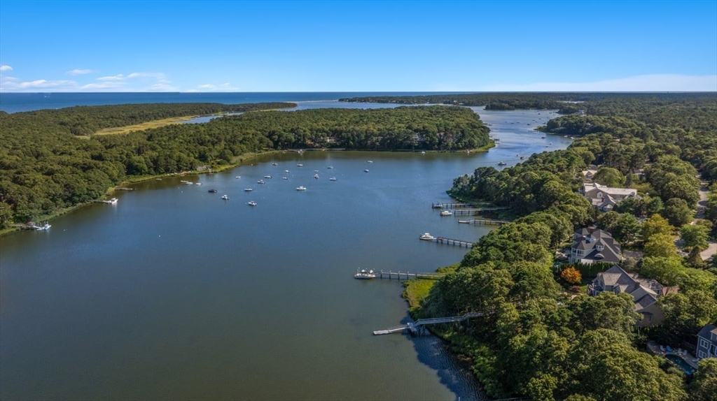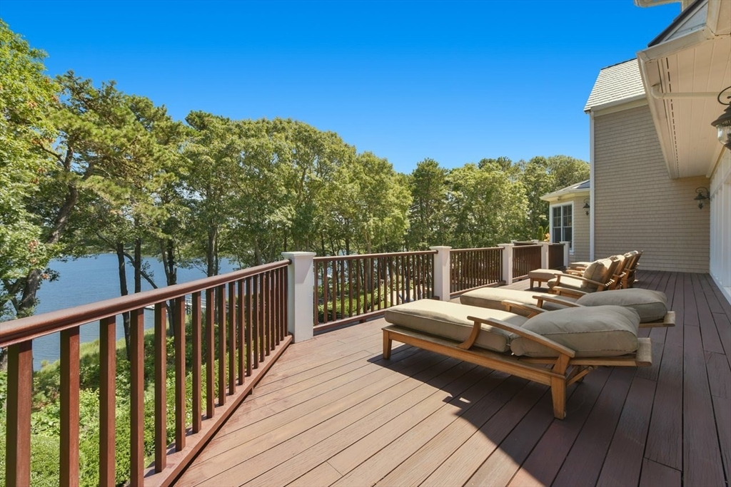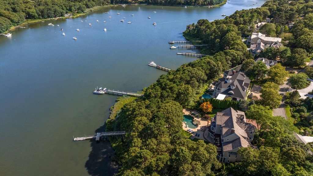 Embrace resort living at this extraordinary waterfront home with a private dock, set behind the gates of Willowbend, one of Cape Cod's most sought-after communities. Designed for indoor-outdoor living, the expansive deck and poolside terrace enjoy a breathtaking backdrop over Shoestring Bay. Offered fully furnished, the six-bedroom residence showcases custom millwork, marble countertops, and top-tier finishes throughout. The gourmet kitchen features Lewis & Weldon cabinetry, a Viking range, and breakfast bar, opening to living and dining areas. The first-floor primary suite offers a luxe bath, sweeping views, and deck access. A wood-paneled office, en suite guest rooms, and a walk-out lower level with media/game rooms, kitchenette, and full bath complete the interior. Set behind 24-hour security gates, Willowbend residents enjoy an exclusive lifestyle with 27 holes of championship golf, tennis and pickleball courts, a fitness center, Olympic-sized swimming pool, and fine dining.