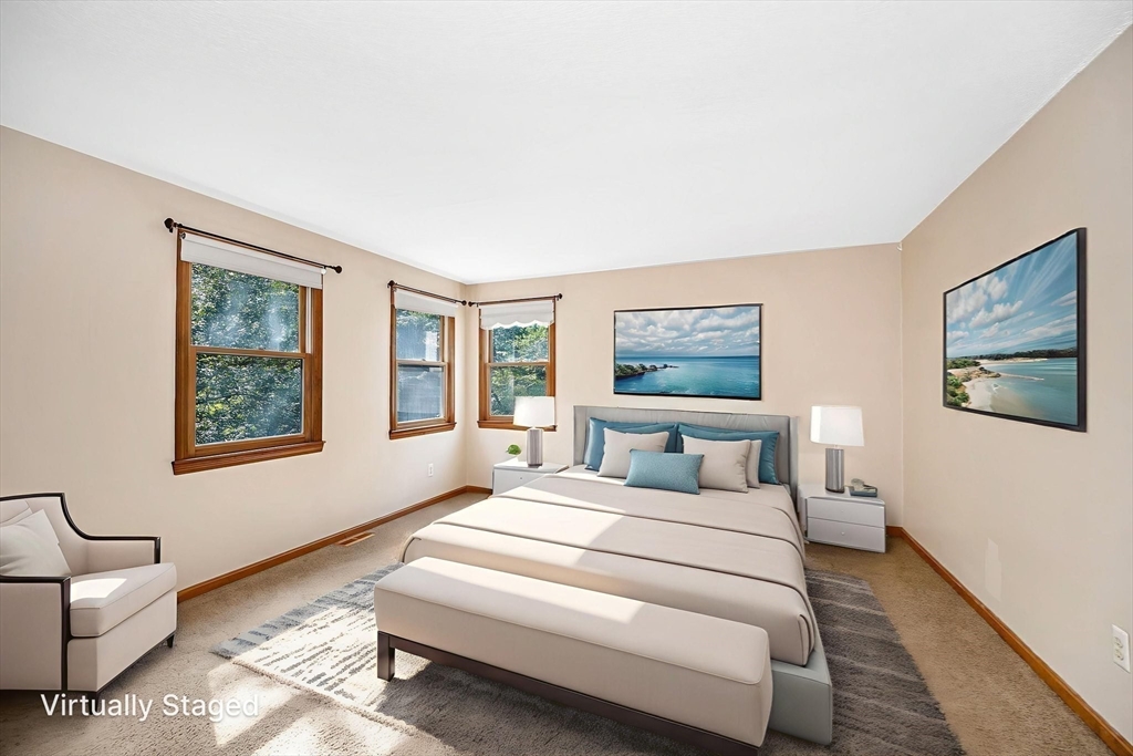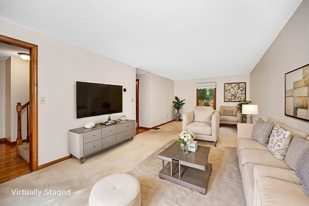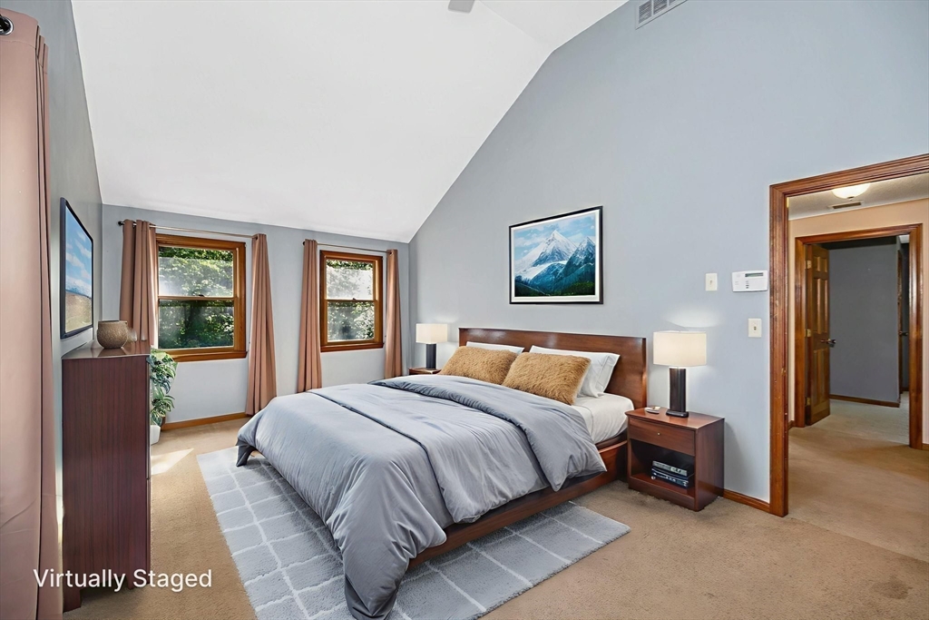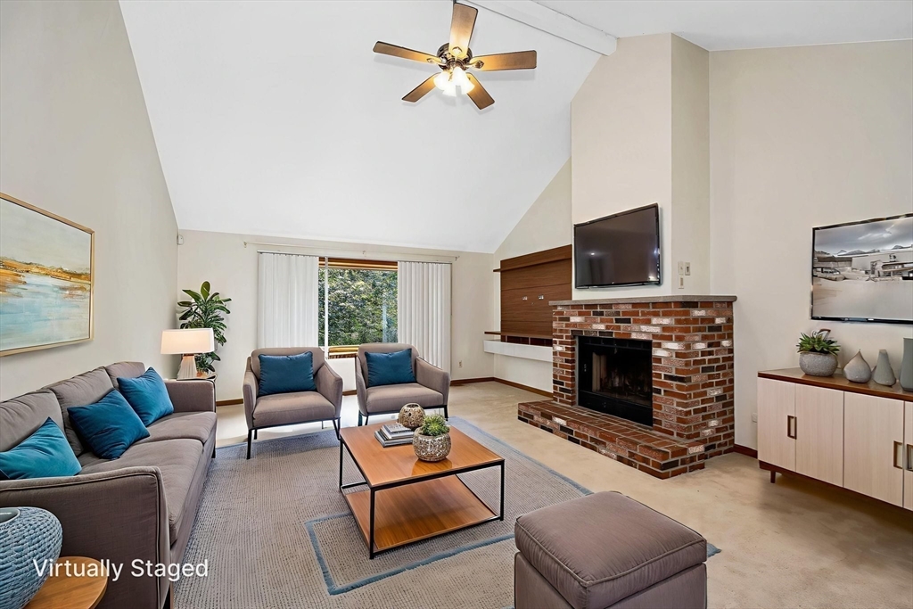 Welcome to this spacious and well-maintained 3-bedroom, 2.5-bathroom. This beautiful home offers the perfect mix of comfort, style, and location. Nestled in the sought-after South Chelmsford, close to Great Brook Farm. Minutes from I-495 and Route 3, and close to local shops and restaurants. The Spacious living room comes with a Brick fireplace, a Cathedral ceiling, and a sliding door to the deck, making this home perfect for entertaining. The primary bedroom provides an ensuite bathroom, a cathedral ceiling, and a walk-in closet with plenty of space. The walk-out finished lower level offers additional living space or a home office. Outdoors, you have a lovely backyard, ideal for summer barbecues, gatherings, or relaxation. This home provides everything you are looking for; you don't want to miss this opportunity to make this home yours! First Showing at the Open House: Saturday, August 16th, from 11 am to 1 pm & Sunday, August 17th, from 12 pm to 2 pm.