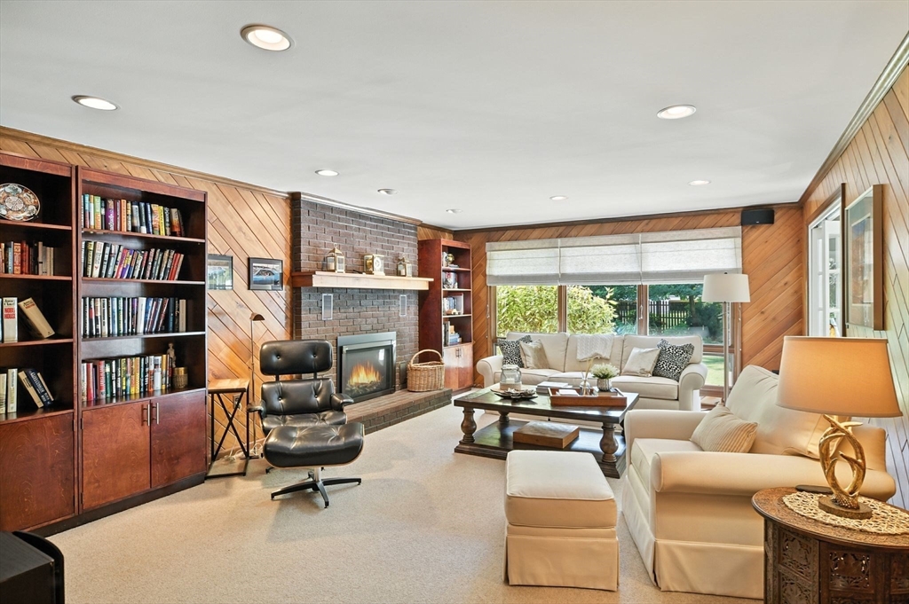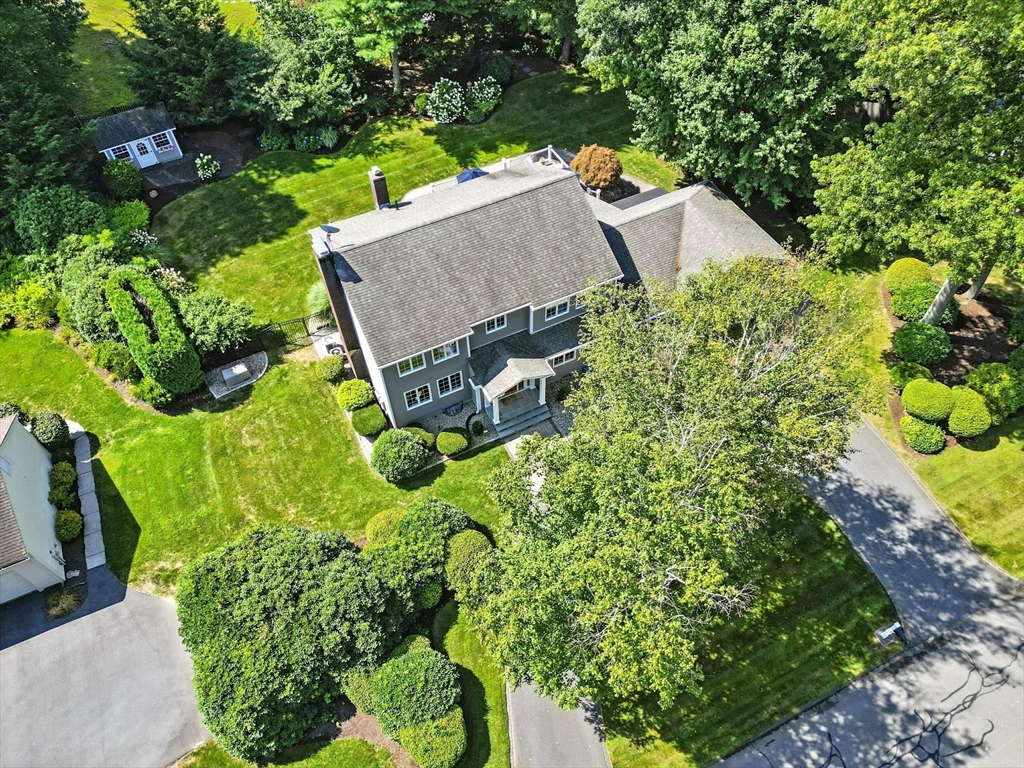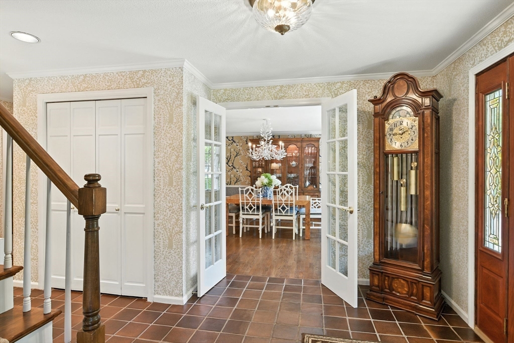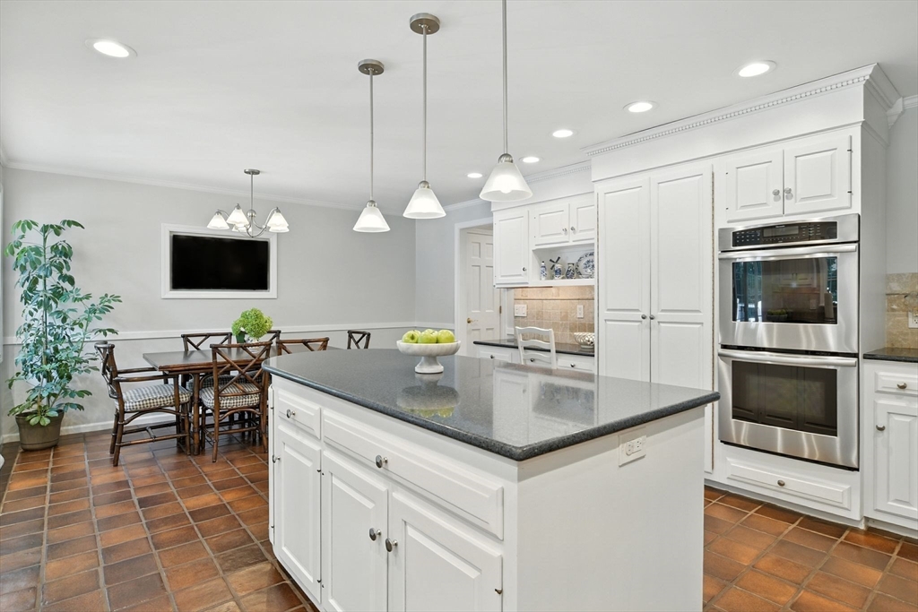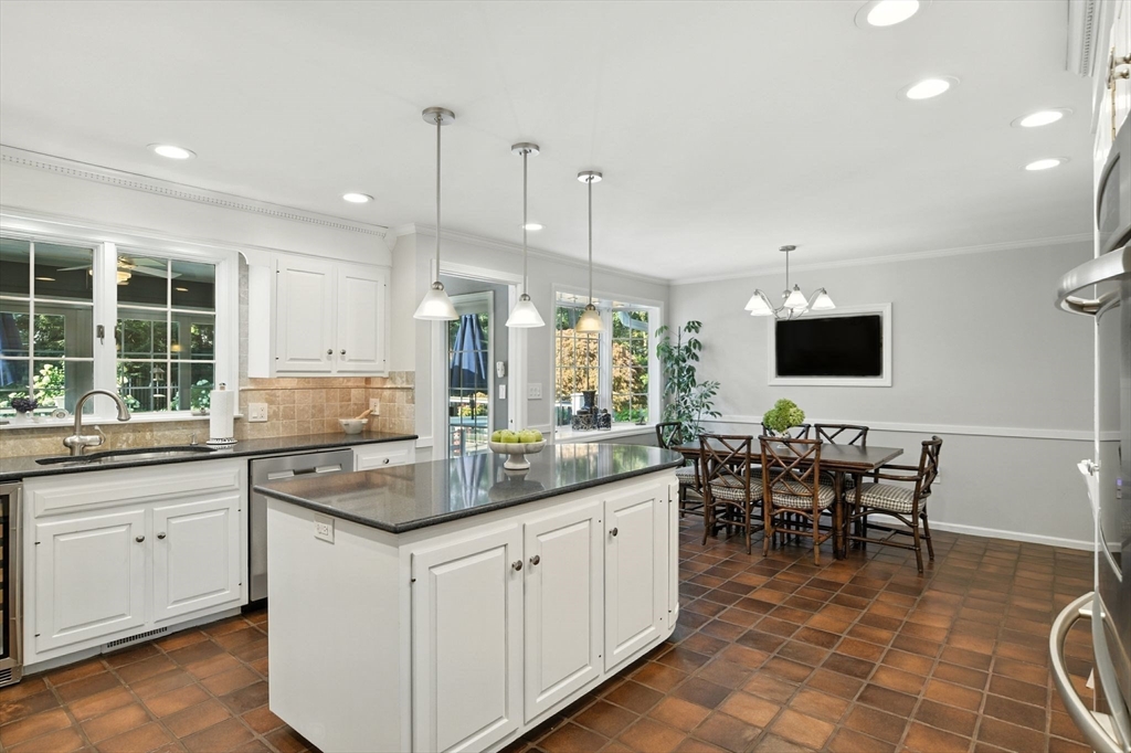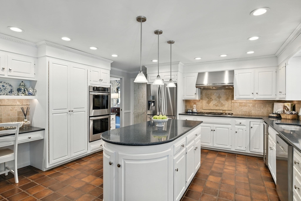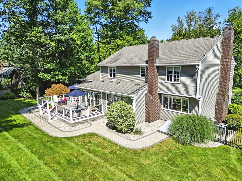 Custom-built sophisticated colonial, nestled in desirable neighborhood on beautifully landscaped lot w/new hardscapes & composite deck, showcases meticulously maintained & renovated interiors. Gracious front foyer opens w/inviting sight lines to both the elegant living & dining rooms. Expansive gourmet kitchen, featuring white cabinetry, quartz tops, eating area w/bay window & premium stainless-steel appliances, flows seamlessly into practical mudroom w/laundry closet & half bath. Family room, adorned w/warm walnut wood walls & gas fireplace insert, connects to light-filled sunroom that opens to serene backyard. Upper level boasts luxurious primary suite w/beautifully renovated bath featuring double vanity & walk-in tiled shower, alongside 3 additional bedrooms w/double closets sharing another stylishly renovated tiled bath w/double vanity. Lower level offers recreation room w/custom-bar & pool table, 2 dedicated home offices & fully tiled bath. Perfect blend of style & functionality.