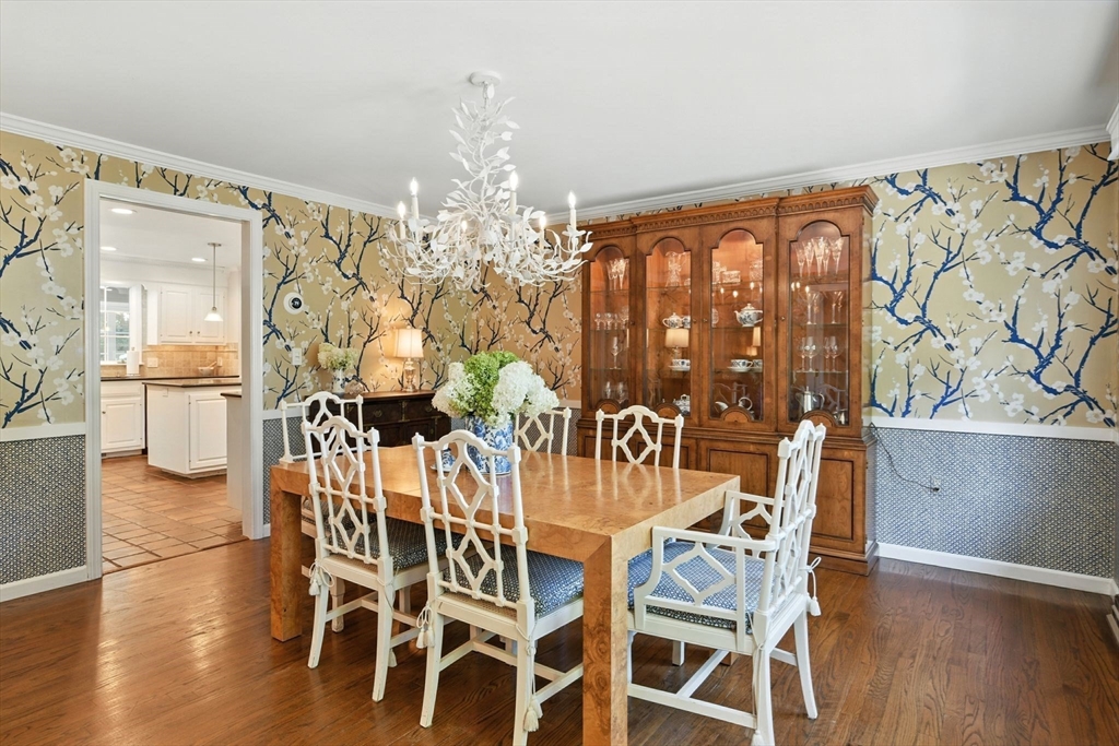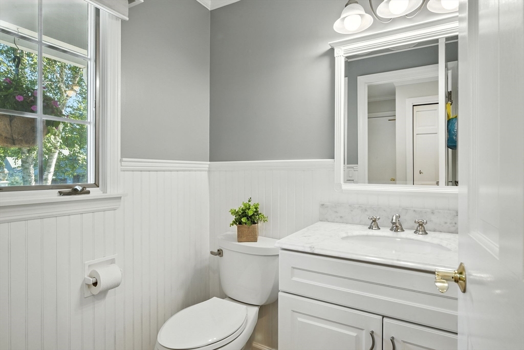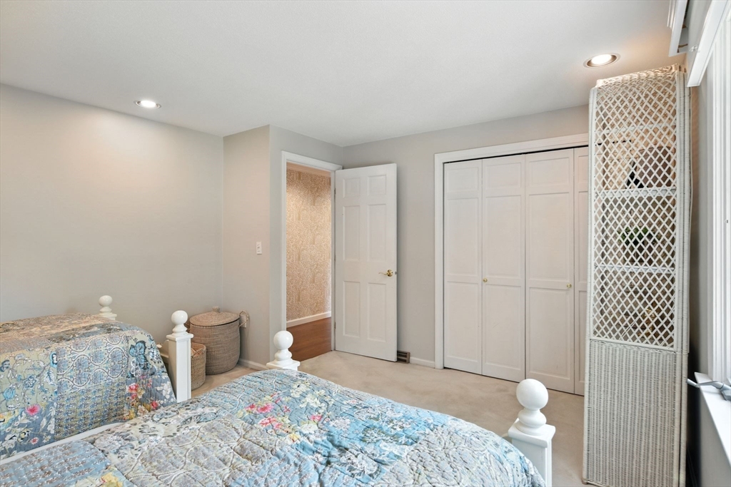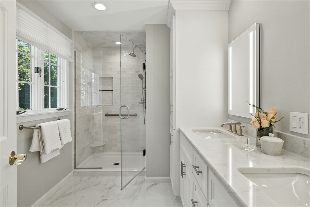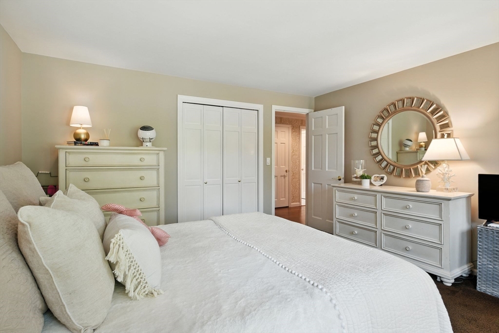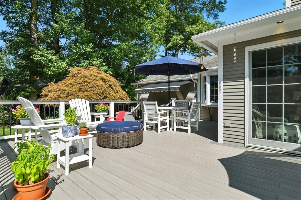 Custom-built sophisticated colonial, nestled in desirable neighborhood on beautifully landscaped lot w/new hardscapes & composite deck, showcases meticulously maintained & renovated interiors. Gracious front foyer opens w/inviting sight lines to both the elegant living & dining rooms. Expansive gourmet kitchen, featuring white cabinetry, quartz tops, eating area w/bay window & premium stainless-steel appliances, flows seamlessly into practical mudroom w/laundry closet & half bath. Family room, adorned w/warm walnut wood walls & gas fireplace insert, connects to light-filled sunroom that opens to serene backyard. Upper level boasts luxurious primary suite w/beautifully renovated bath featuring double vanity & walk-in tiled shower, alongside 3 additional bedrooms w/double closets sharing another stylishly renovated tiled bath w/double vanity. Lower level offers recreation room w/custom-bar & pool table, 2 dedicated home offices & fully tiled bath. Perfect blend of style & functionality.