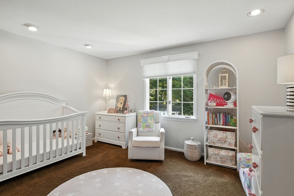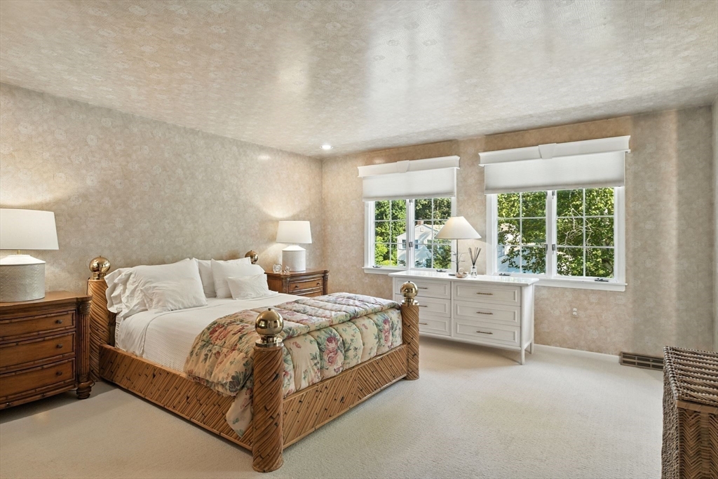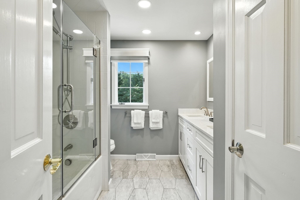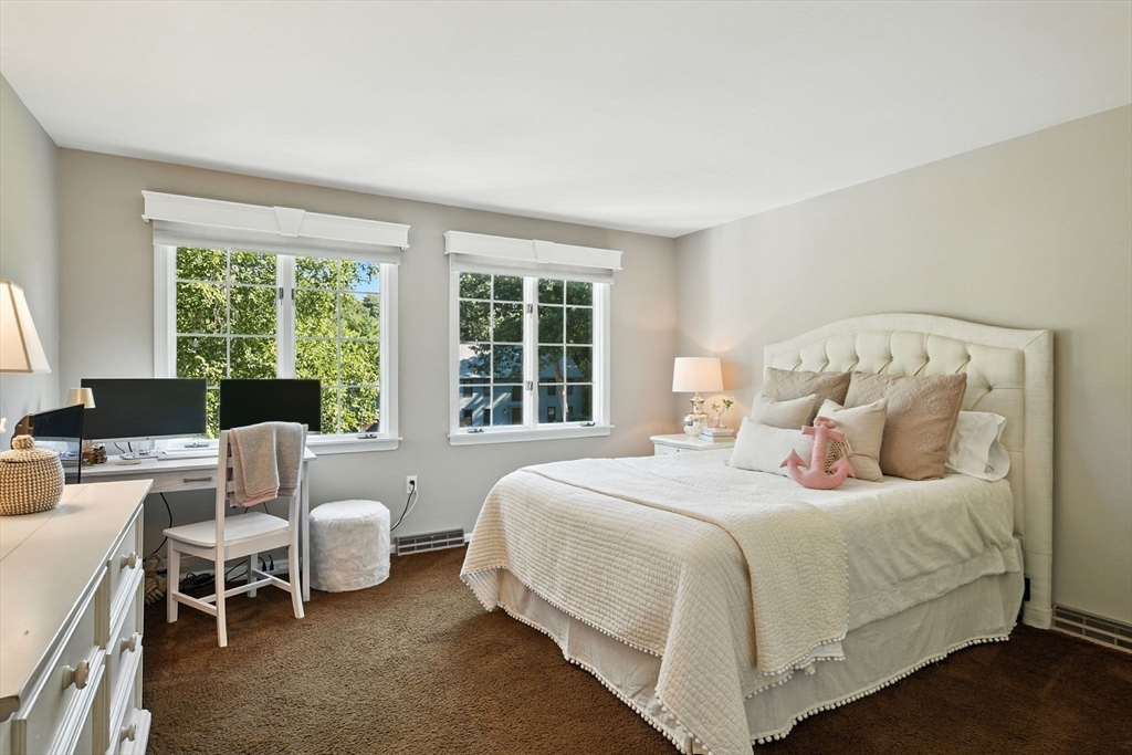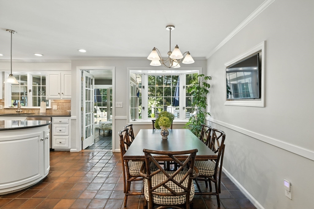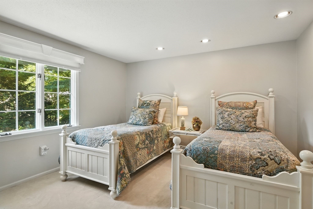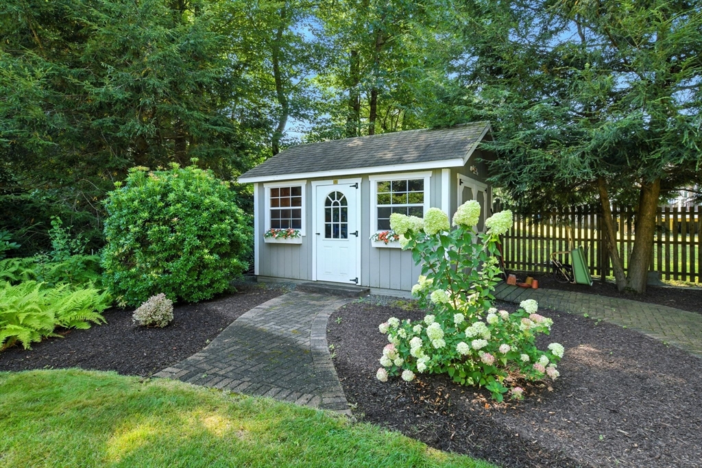 Custom-built sophisticated colonial, nestled in desirable neighborhood on beautifully landscaped lot w/new hardscapes & composite deck, showcases meticulously maintained & renovated interiors. Gracious front foyer opens w/inviting sight lines to both the elegant living & dining rooms. Expansive gourmet kitchen, featuring white cabinetry, quartz tops, eating area w/bay window & premium stainless-steel appliances, flows seamlessly into practical mudroom w/laundry closet & half bath. Family room, adorned w/warm walnut wood walls & gas fireplace insert, connects to light-filled sunroom that opens to serene backyard. Upper level boasts luxurious primary suite w/beautifully renovated bath featuring double vanity & walk-in tiled shower, alongside 3 additional bedrooms w/double closets sharing another stylishly renovated tiled bath w/double vanity. Lower level offers recreation room w/custom-bar & pool table, 2 dedicated home offices & fully tiled bath. Perfect blend of style & functionality.