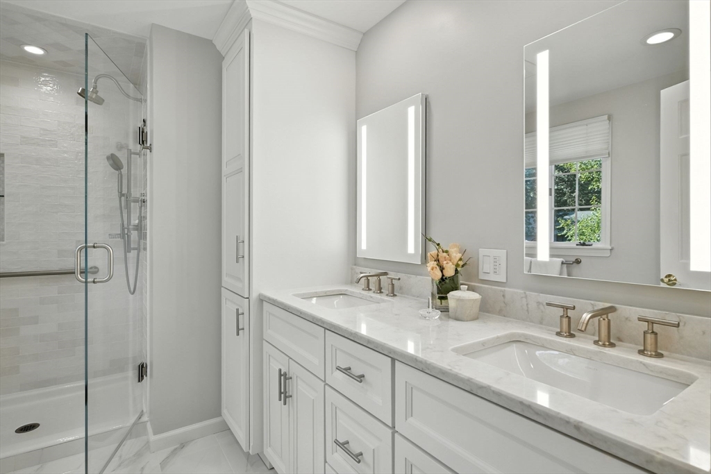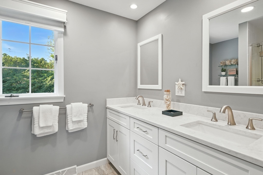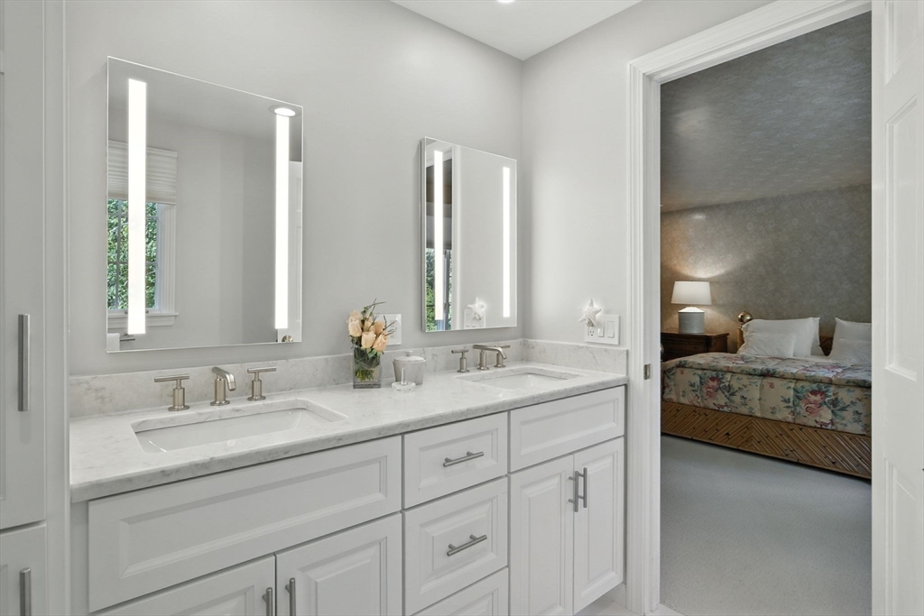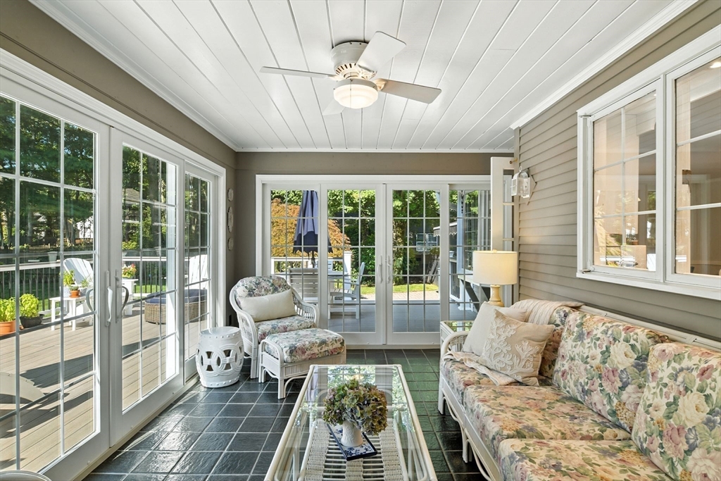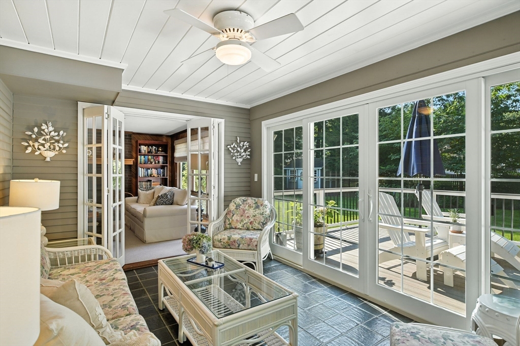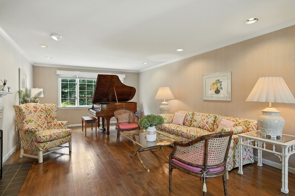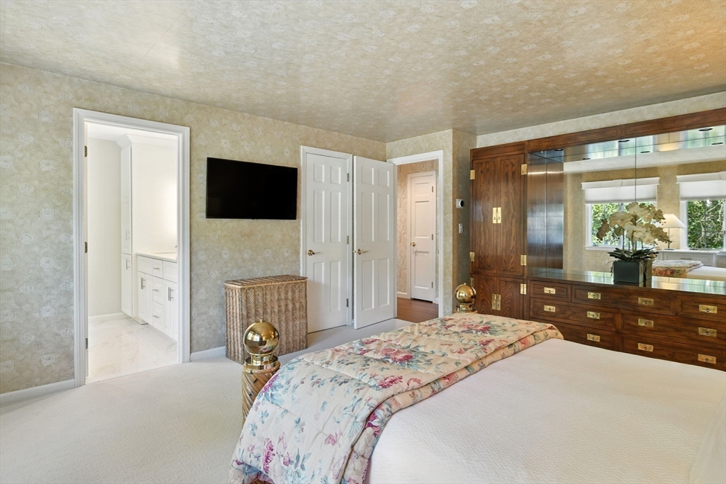 Custom-built sophisticated colonial, nestled in desirable neighborhood on beautifully landscaped lot w/new hardscapes & composite deck, showcases meticulously maintained & renovated interiors. Gracious front foyer opens w/inviting sight lines to both the elegant living & dining rooms. Expansive gourmet kitchen, featuring white cabinetry, quartz tops, eating area w/bay window & premium stainless-steel appliances, flows seamlessly into practical mudroom w/laundry closet & half bath. Family room, adorned w/warm walnut wood walls & gas fireplace insert, connects to light-filled sunroom that opens to serene backyard. Upper level boasts luxurious primary suite w/beautifully renovated bath featuring double vanity & walk-in tiled shower, alongside 3 additional bedrooms w/double closets sharing another stylishly renovated tiled bath w/double vanity. Lower level offers recreation room w/custom-bar & pool table, 2 dedicated home offices & fully tiled bath. Perfect blend of style & functionality.