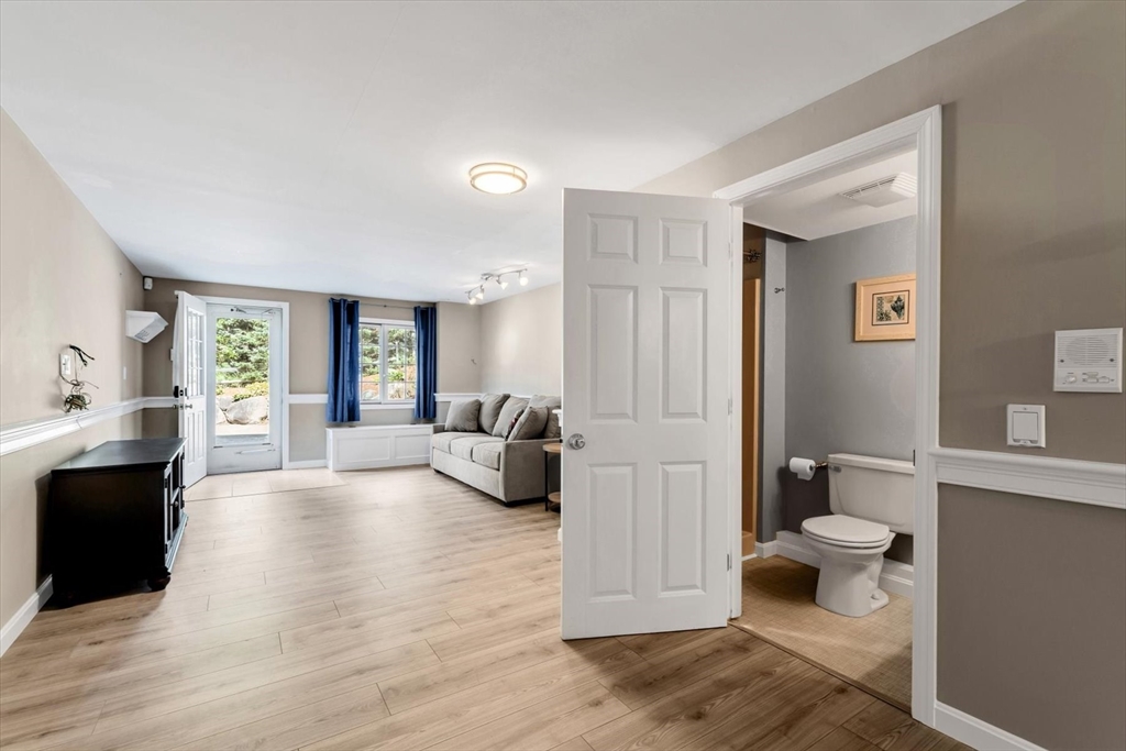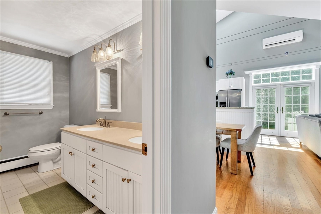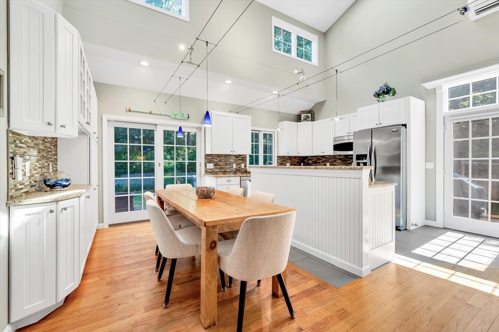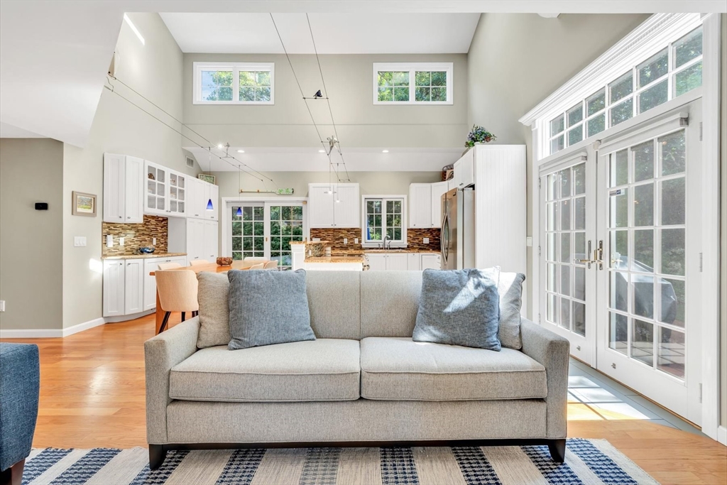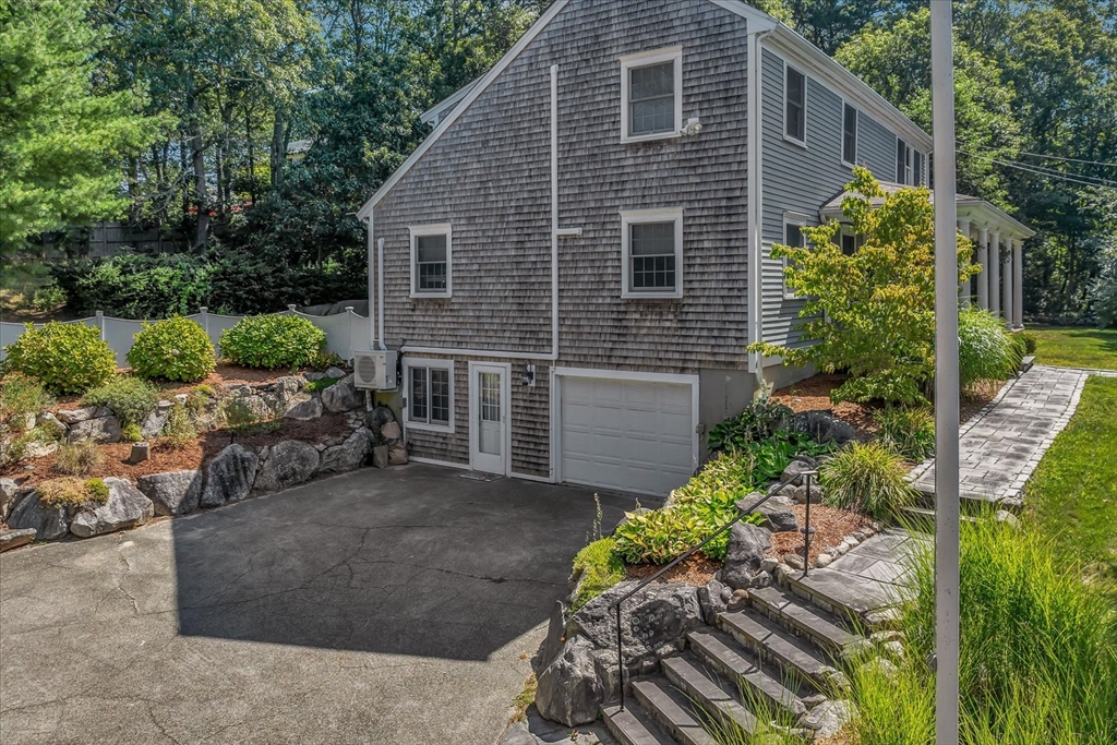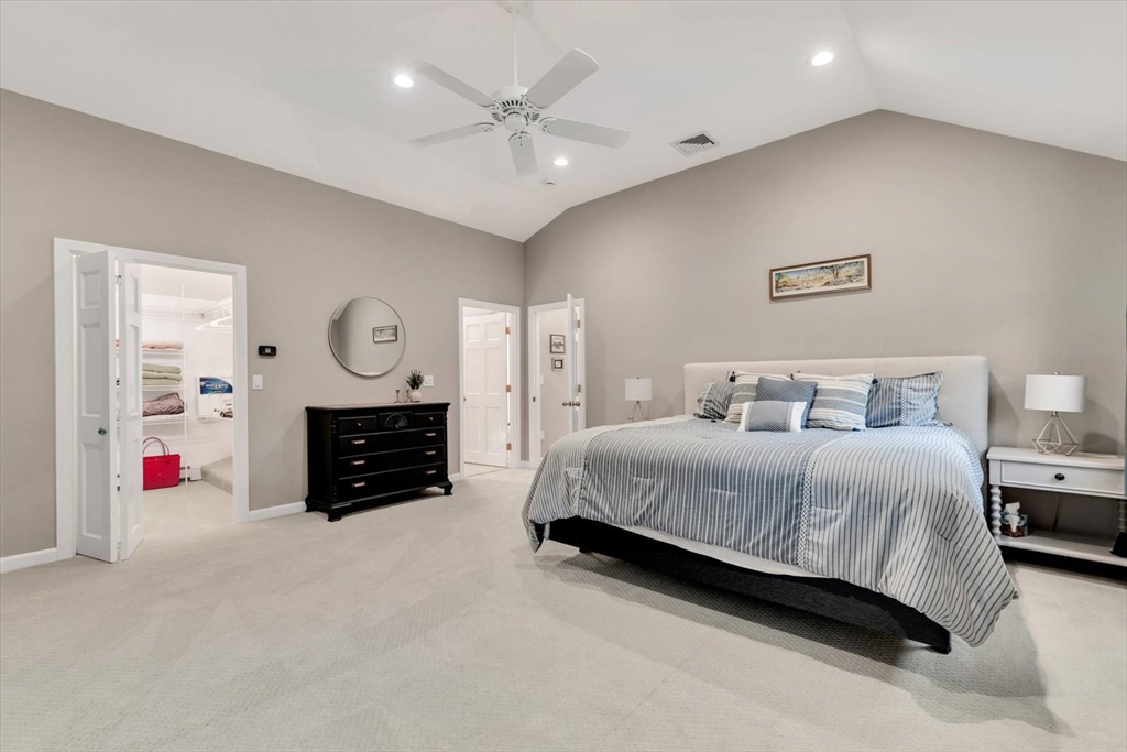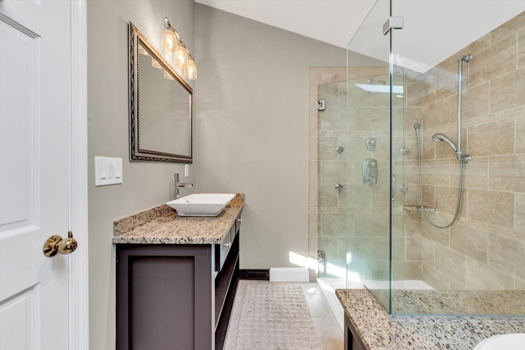 Situated on an oversized lot just north of 6A in Yarmouth Port, step inside to an open-concept living space featuring vaulted ceilings & hardwood floors. The bright kitchen & dining area are a delight, with a granite island and 2 sliders that open to a wrap-around deck, perfect for indoor-outdoor living. This leads to a fully fenced, private backyard, complete with an outdoor shower and a large shed. The second floor has a private primary bedroom suite with its own sitting area and interior balcony. This spacious area features vaulted ceilings, recessed lighting, a large walk-in closet, and a full bathroom with a jacuzzi tub and a walk-in shower. On the first floor, you'll find 2 more bedrooms, a full bathroom, and a bonus room ideal for an office or playroom. The finished walk-out basement provides additional additional living space with new flooring, another full bathroom, and a cedar closet.