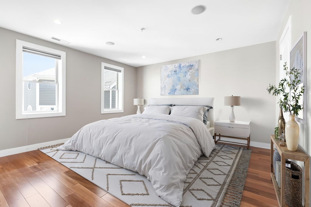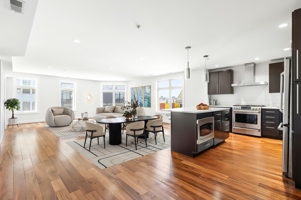 ***Sunlit 3-Bed Condo with Parking & Private Deck in Southie***Nearly 1,500 sq ft of gorgeous single-level living, offering the perfect blend of space, style, and everyday comfort. The open layout is ideal for entertaining and includes a fully equipped kitchen with stainless steel appliances, hardwood floors, central air, and in-unit washer and dryer. The primary suite features a spacious closet and en suite bath, while the large second bedroom offers a walk-in closet. The third bedroom is perfect for a home office or nursery. Additional highlights include an expansive private deck, extra storage in basement. Unbeatable location just around the corner from dining, shops, and public transit—this home truly has it all! Easy to show. *Some photos virtually staged.