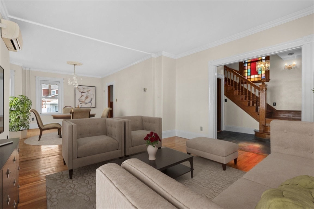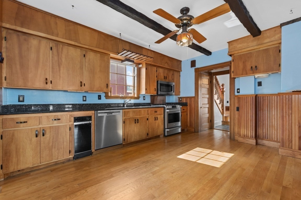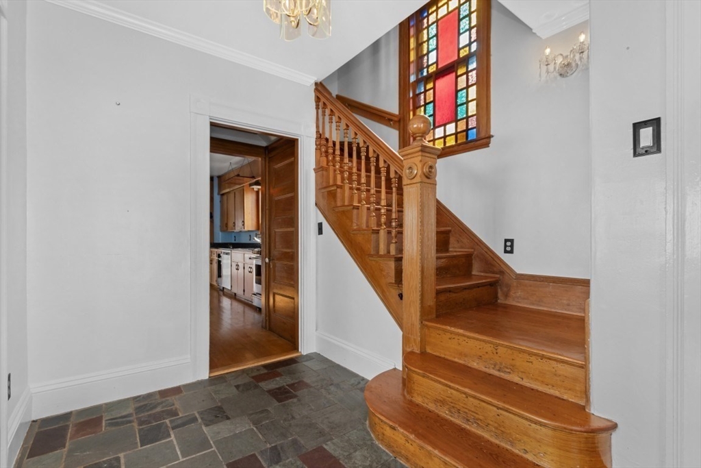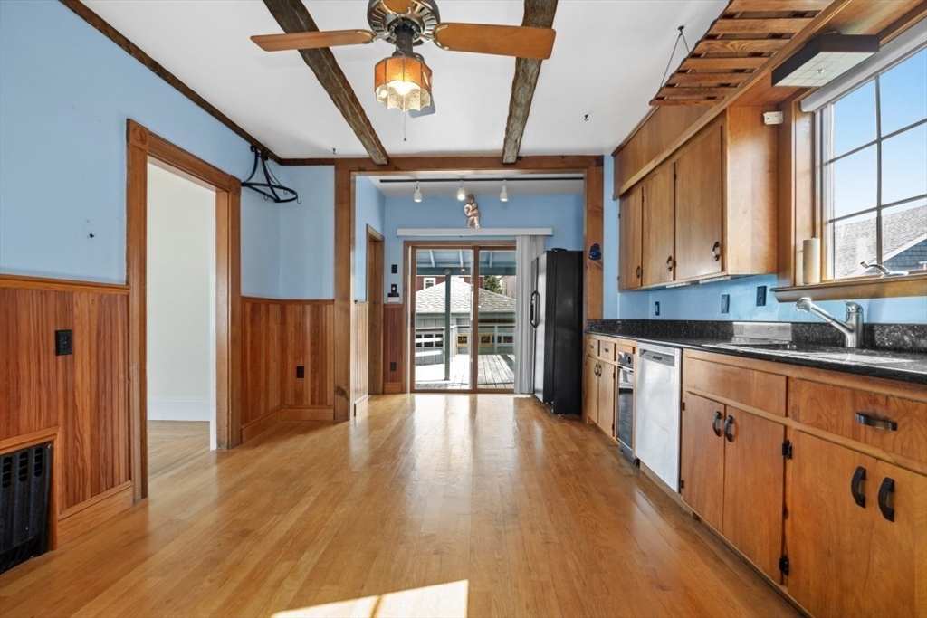 Discover this well-loved generational home where character greets you at every turn. Sunlight pours through a stunning stained-glass window in the foyer, hardwood floors flow throughout, and every room tells its own story. The spacious eat-in kitchen is perfect for gatherings, while the large living areas offer space to entertain with ease. A full bath on the first floor adds convenience, and upstairs you’ll find five bedrooms, a second full bath with a tub, and a walk-in closet in the primary bedroom. The basement features a bonus room ready for your renovation vision, home office, or hobby space. Outdoors, enjoy a fully fenced yard with a large deck, patio space, and plenty of room to host summer celebrations, garden, or simply relax in your own private retreat. Move right in and enjoy the charm, or bring your ideas to add even more value-this is a home built for memories, ready for its next chapter.
