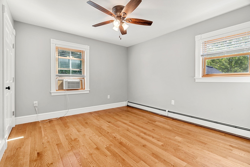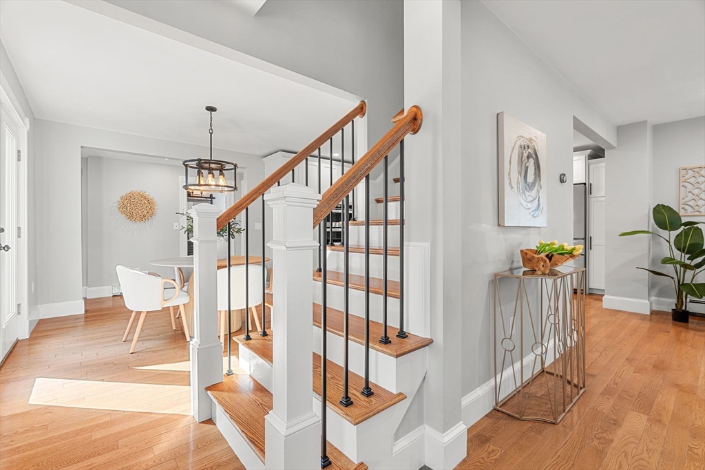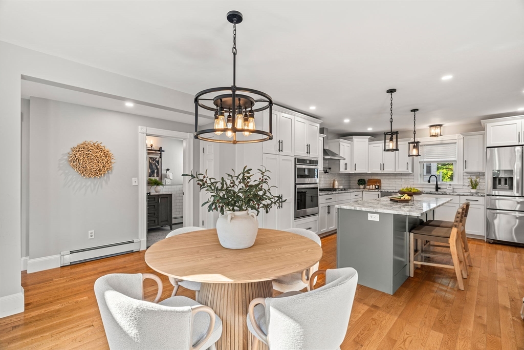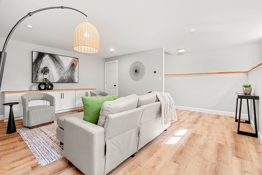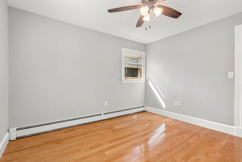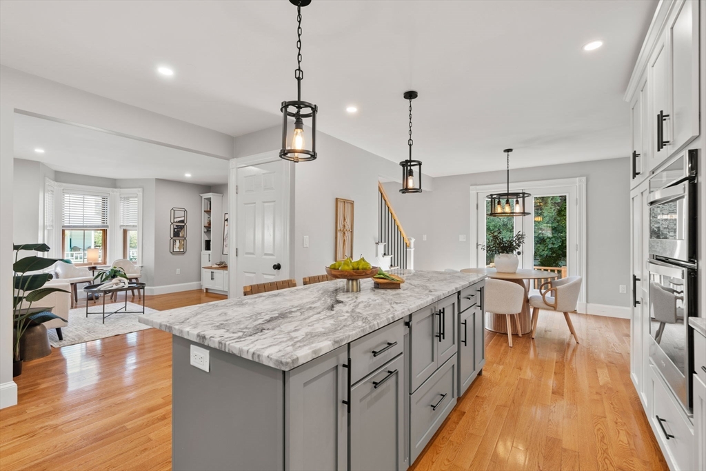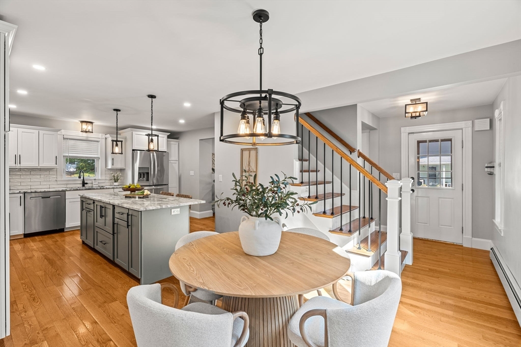 From the designer kitchen to the updated systems, 18 Byron St will make you say WOW! The front porch welcomes you into the foyer which flows beautifully into the living room with built-ins. The expertly designed kitchen features an island with seating, stainless appliances, and stone countertops perfect for the home chef. The first floor primary bedroom has vaulted ceilings and tons of closet space. A full bathroom with tiled walk in shower complete this floor. Three well-proportioned bedrooms with custom closets and another full bath complete the upstairs. The finished basement is the ideal family room, home gym, or teen hangout. The fenced back yard with custom patio and fire pit is perfect for entertaining and has hosted many movie nights and play dates. Enjoy the ideal West Side location close to the commuter rail, farmer's market, Lake Quannapowitt, Beebe Library, and Wakefield center stores and restaurants. OHS Sat 11:30-1 and Sun 1:30-3:00. Offers due 8/19@12N.