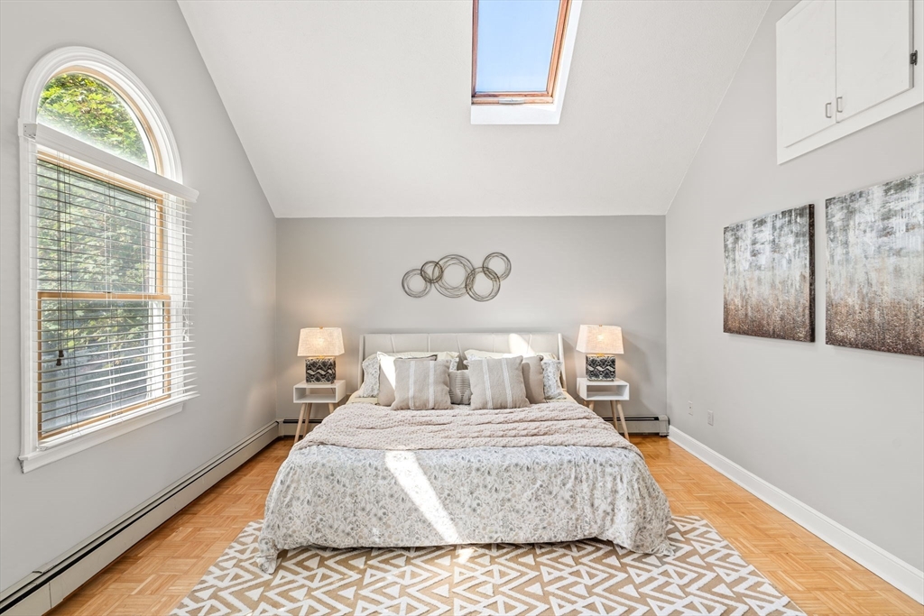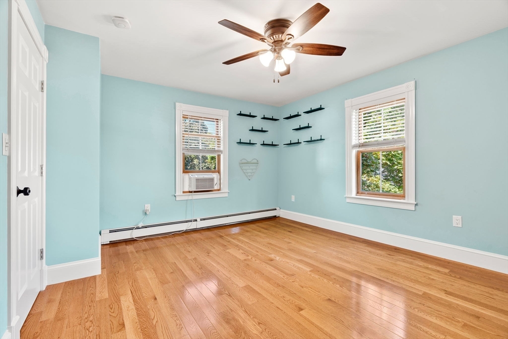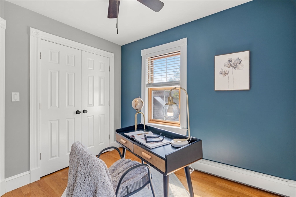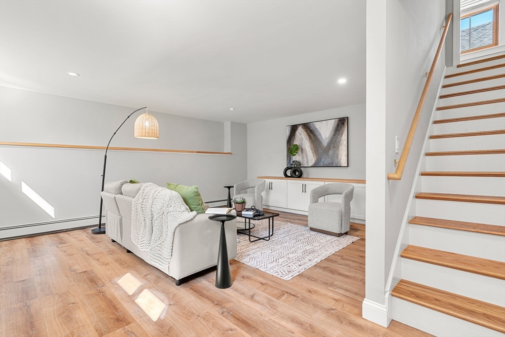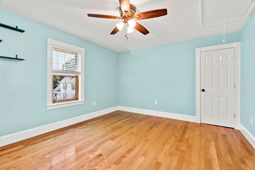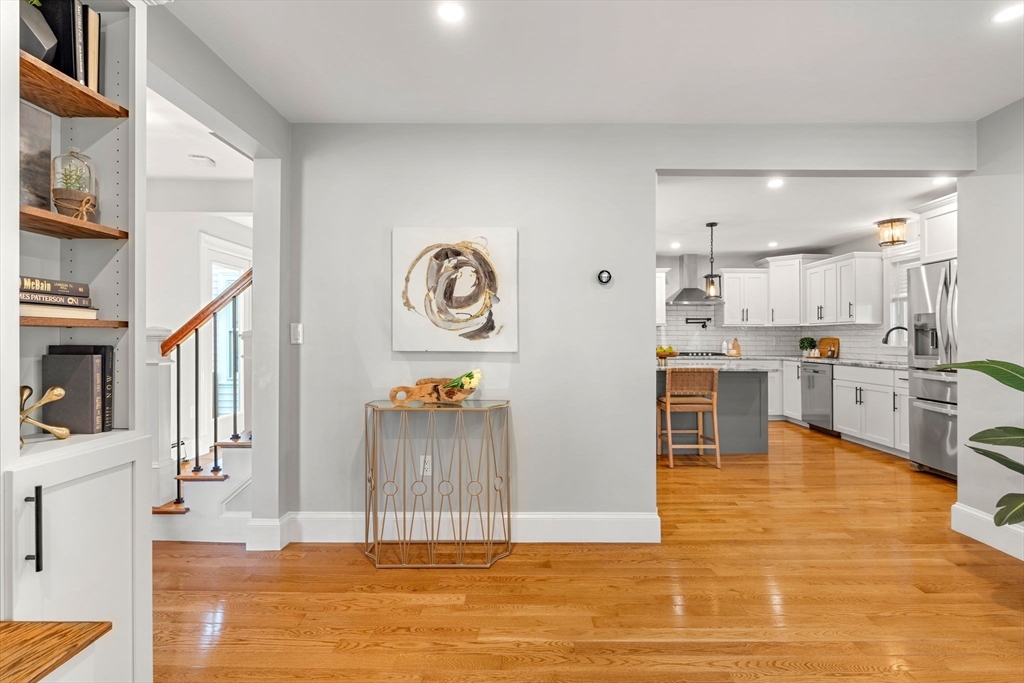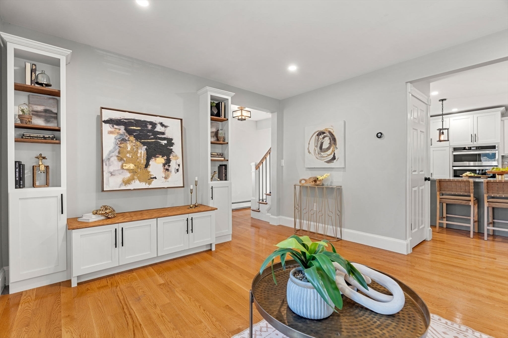From the designer kitchen to the updated systems, 18 Byron St will make you say WOW! The front porch welcomes you into the foyer which flows beautifully into the living room with built-ins. The expertly designed kitchen features an island with seating, stainless appliances, and stone countertops perfect for the home chef. The first floor primary bedroom has vaulted ceilings and tons of closet space. A full bathroom with tiled walk in shower complete this floor. Three well-proportioned bedrooms with custom closets and another full bath complete the upstairs. The finished basement is the ideal family room, home gym, or teen hangout. The fenced back yard with custom patio and fire pit is perfect for entertaining and has hosted many movie nights and play dates. Enjoy the ideal West Side location close to the commuter rail, farmer's market, Lake Quannapowitt, Beebe Library, and Wakefield center stores and restaurants. OHS Sat 11:30-1 and Sun 1:30-3:00. Offers due 8/19@12N.