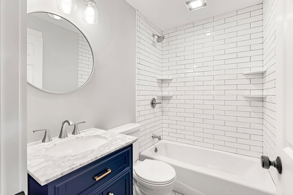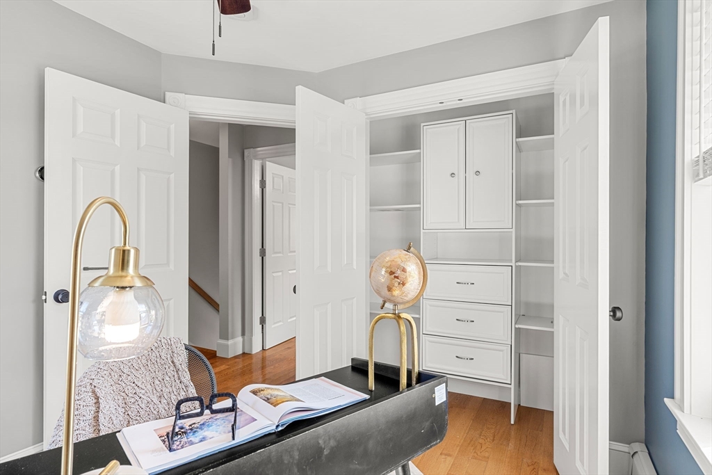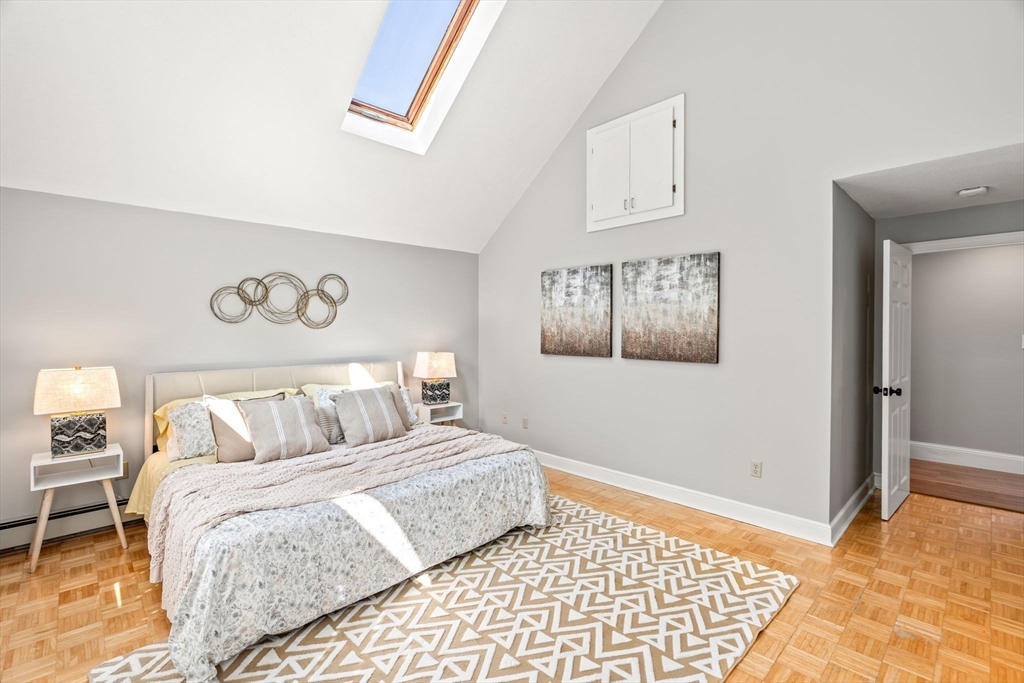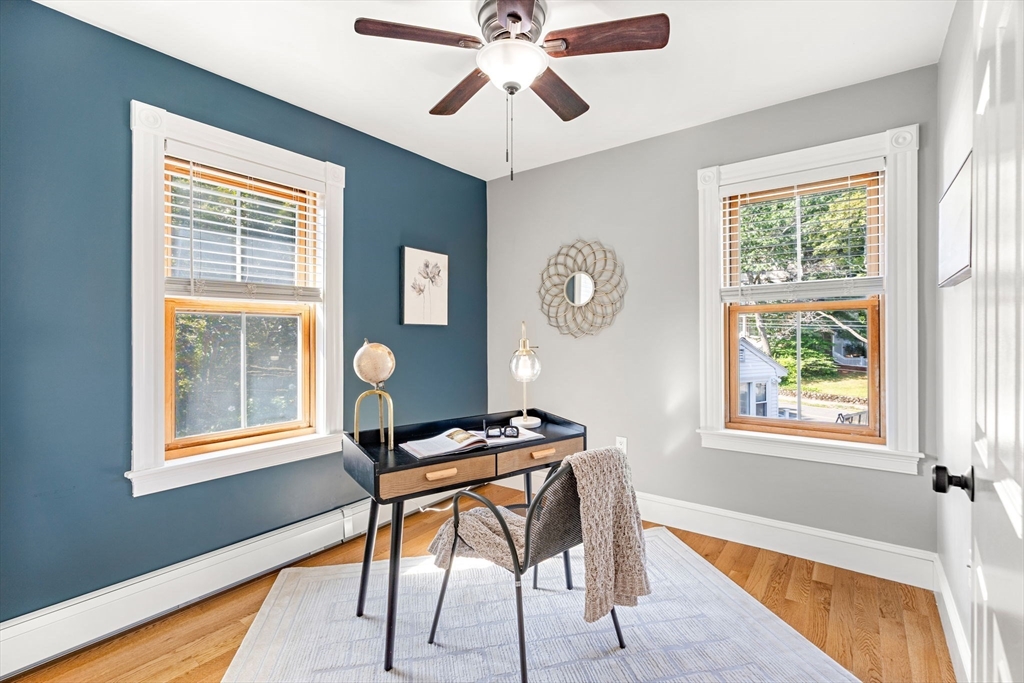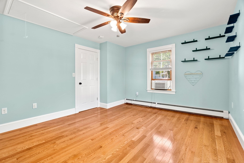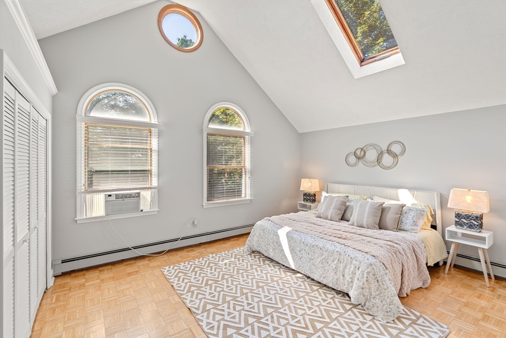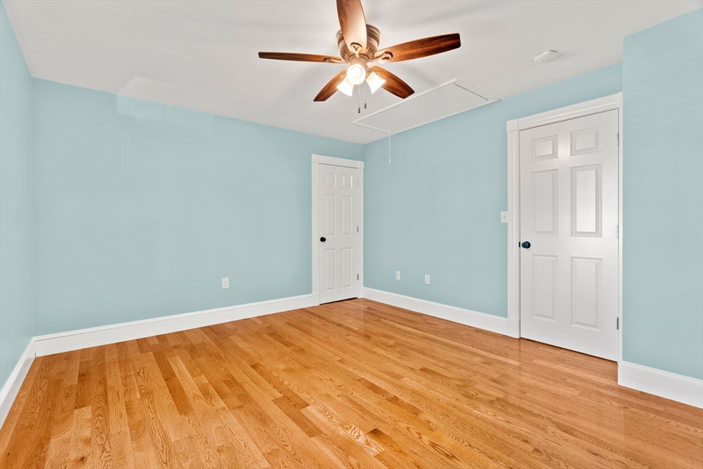From the designer kitchen to the updated systems, 18 Byron St will make you say WOW! The front porch welcomes you into the foyer which flows beautifully into the living room with built-ins. The expertly designed kitchen features an island with seating, stainless appliances, and stone countertops perfect for the home chef. The first floor primary bedroom has vaulted ceilings and tons of closet space. A full bathroom with tiled walk in shower complete this floor. Three well-proportioned bedrooms with custom closets and another full bath complete the upstairs. The finished basement is the ideal family room, home gym, or teen hangout. The fenced back yard with custom patio and fire pit is perfect for entertaining and has hosted many movie nights and play dates. Enjoy the ideal West Side location close to the commuter rail, farmer's market, Lake Quannapowitt, Beebe Library, and Wakefield center stores and restaurants. OHS Sat 11:30-1 and Sun 1:30-3:00. Offers due 8/19@12N.