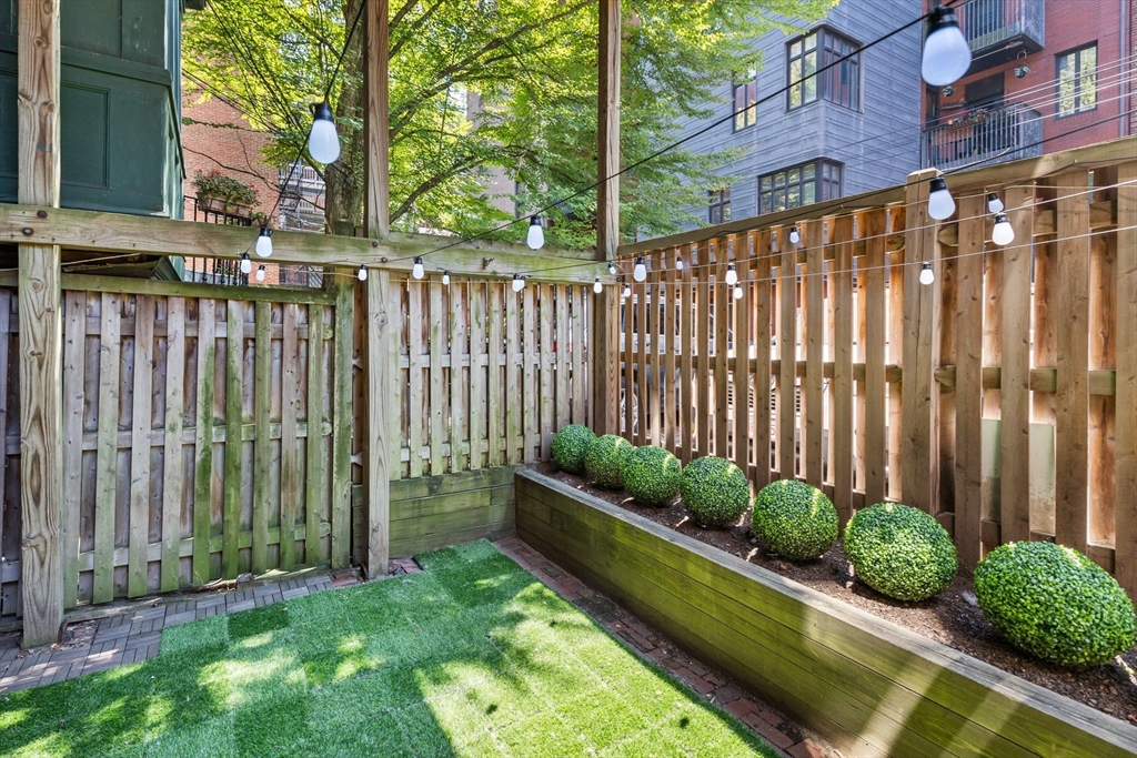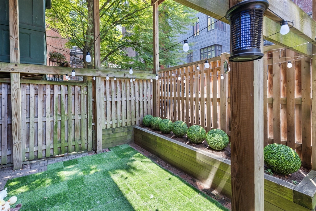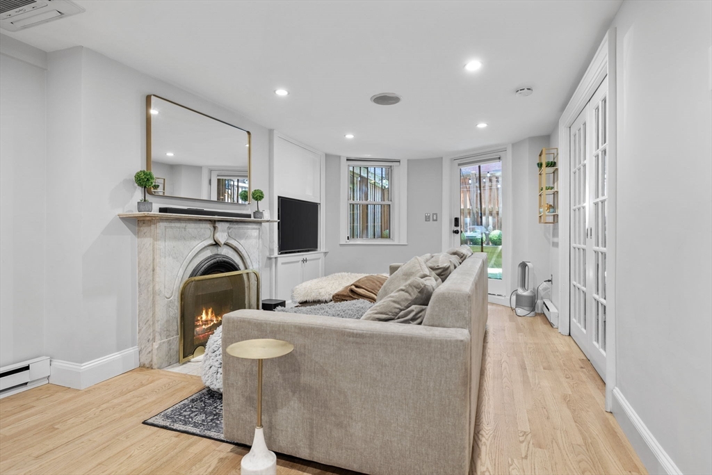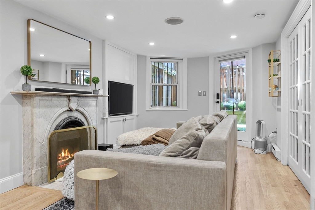 The city goers DREAM unit! Enjoy your private entry that leads into an expansive layout with French doors connecting the living, dining, and kitchen areas—ideal for entertaining. Charming details include a marble mantel, custom built-ins, and hardwood floors. A large private patio with newly added artificial grass offers the perfect setting for dining. relaxing, & hosting your friends before a night out in the city. The upgraded kitchen features newer high-end Fisher & Paykel appliances, stone countertops, breakfast bar, and oversized pantry. Additional updates include a newer LG Wash Tower laundry center and custom Closets by Design in the bedroom and hallway. Located on leafy, cobblestoned Wellington Street next to the Southwest Corridor Park, enjoy easy access to top South End restaurants, cafés, shops, green spaces, public transit, and BMC. This unit has it all, the ultimate urban living experience. Historic Boston charm with a modern chapter. A MUST SEE!