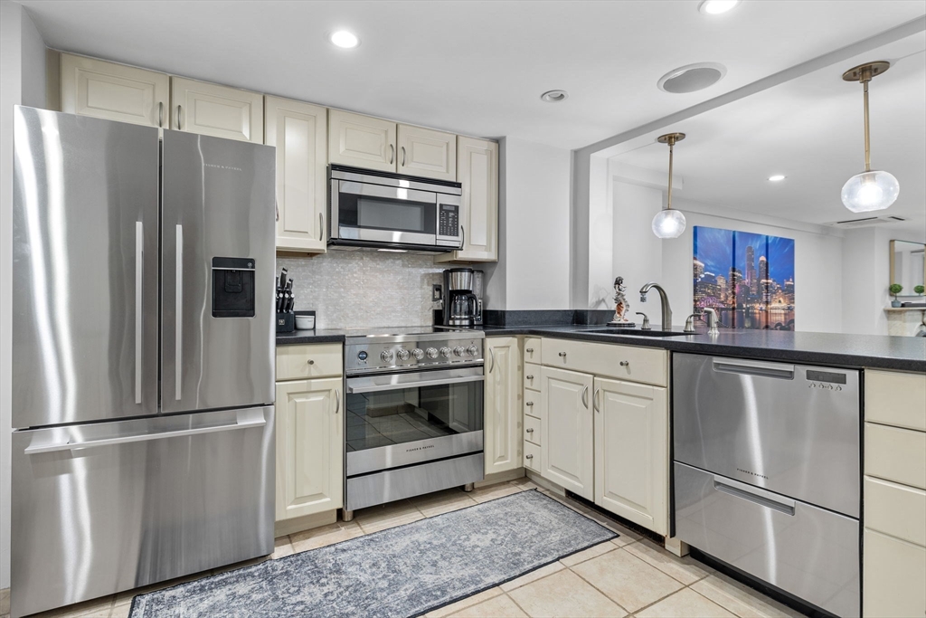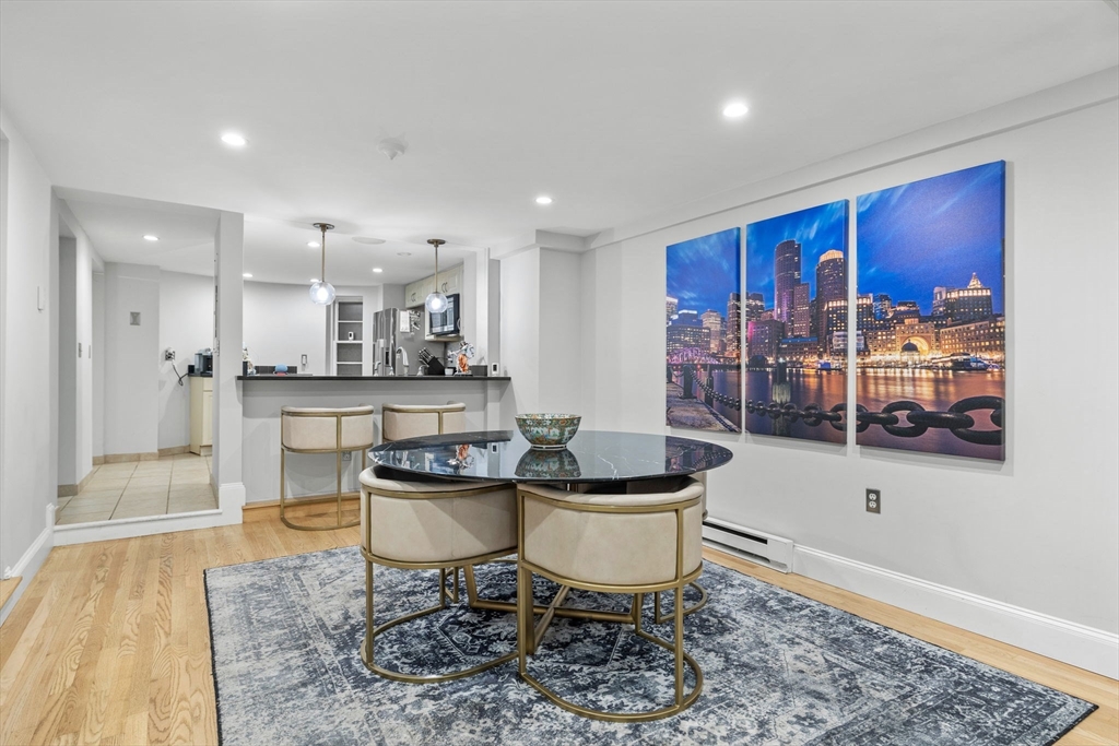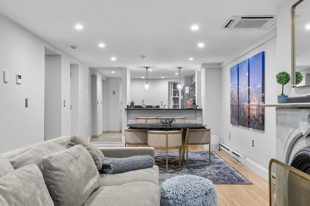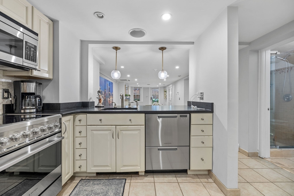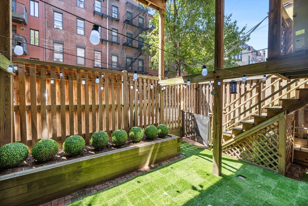 The city goers DREAM unit! Enjoy your private entry that leads into an expansive layout with French doors connecting the living, dining, and kitchen areas—ideal for entertaining. Charming details include a marble mantel, custom built-ins, and hardwood floors. A large private patio with newly added artificial grass offers the perfect setting for dining. relaxing, & hosting your friends before a night out in the city. The upgraded kitchen features newer high-end Fisher & Paykel appliances, stone countertops, breakfast bar, and oversized pantry. Additional updates include a newer LG Wash Tower laundry center and custom Closets by Design in the bedroom and hallway. Located on leafy, cobblestoned Wellington Street next to the Southwest Corridor Park, enjoy easy access to top South End restaurants, cafés, shops, green spaces, public transit, and BMC. This unit has it all, the ultimate urban living experience. Historic Boston charm with a modern chapter. A MUST SEE!