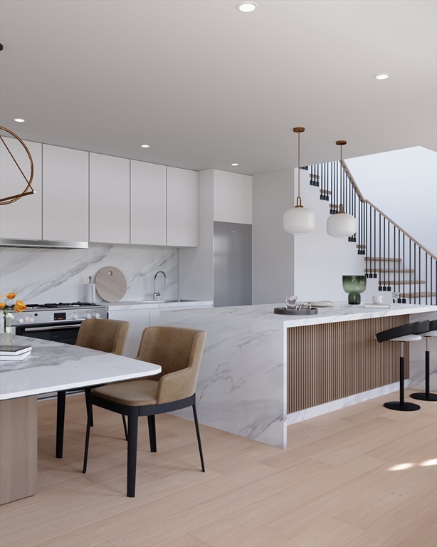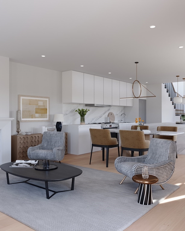 Introducing 455 Summer St. in Arlington Heights, an attached townhome spanning 4 total floors w/ a large open-concept and beautifully styled 1st floor. An elegant arched ceiling stuns as you enter into the bright kitchen, dining & living space, where there is a full bathroom and a bedroom on this floor, with a patio walkout onto a private elevated rear deck. The top floor features generous wide hallway space with a large nook space by the window. On this floor, you will find 2 large bedrooms, one with an en-suite bathroom and large closet; the other bedroom is like a separated wing with privacy, with a full bathroom just off the hallway entrance. The primary bedroom features a unique elegantly designed vestibule. This floor contains an enclosed laundry area. The 3rd floor features a built-in bed and half bathroom. The basement has a large family room and a full bathroom with additional storage and a walkout to the yard. 1 garage parking and up to 3 cars in the driveway.