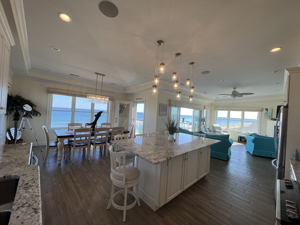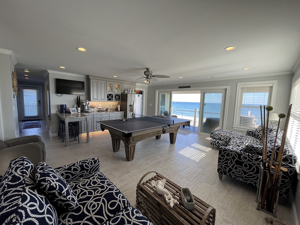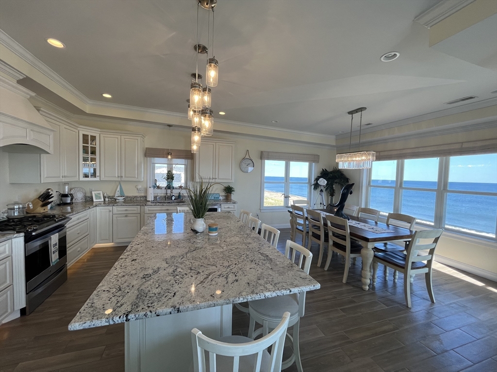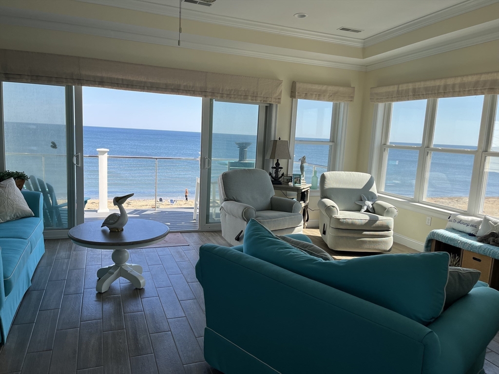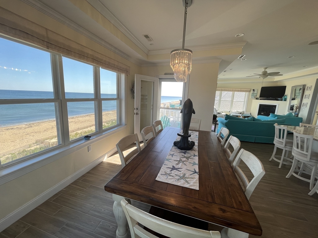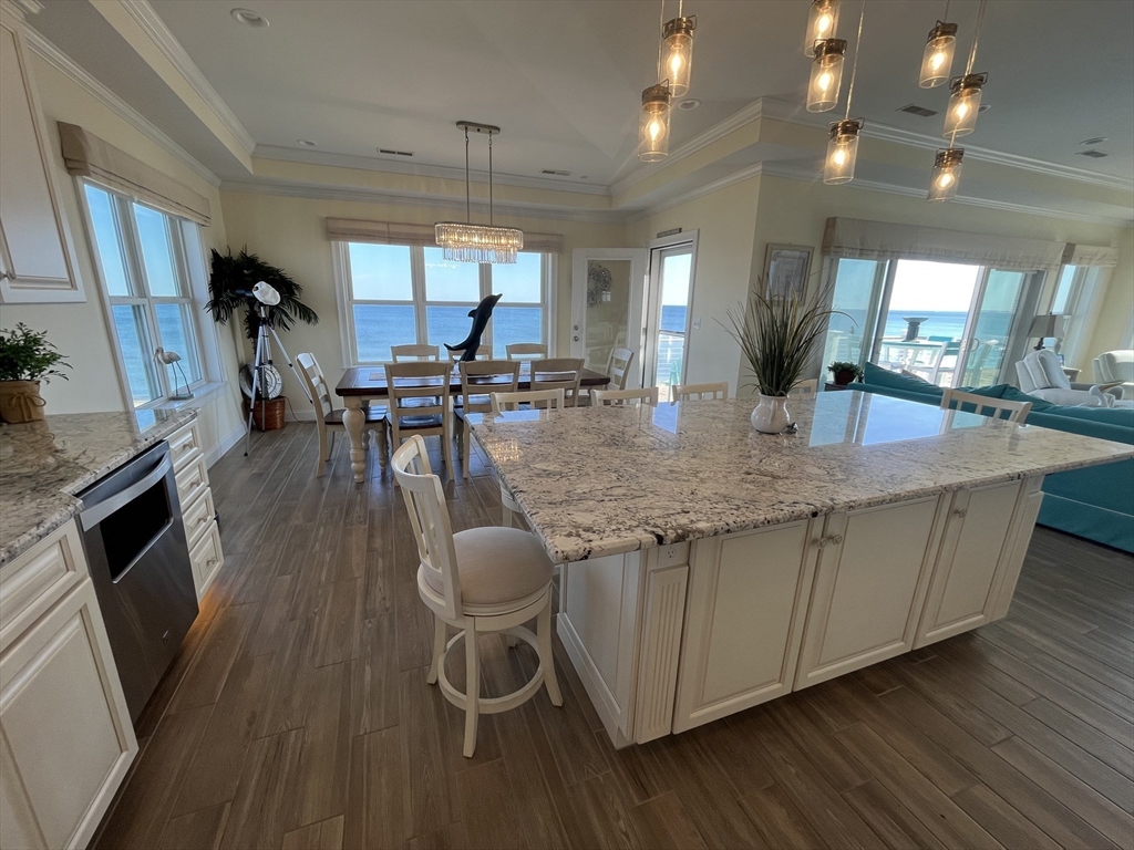 Breathtaking OCEAN FRONT condo with 2 full floors of the most spectacular views on the beach, complete with your own private elevator to this amazing home. Enjoy the breathtaking views from the comforts of your home with views from every window or step out to either of the 4 DECKS, front decks on beach, watch sunrises or back decks for sunsets. 1st floor has a game room with Wet bar, gas fireplace, full bath, 2 bedrooms, a guest bunk/ office space, full size washer and dryer and 2 covered decks. The gorgeous top floor again with amazing views has an open concept kitchen/living room, includes a grand kitchen with custom cabinetry, under cabinet lighting, 2 ovens, large granite island, seats 8, and dinning table, seats 10, spacious Living room with gas fireplace, remote shades, trace ceiling. also a 1/2 bath, grand primary bedroom suite, walk in shower, double sinks, chandeliers, walk in closet top deck, OFF STREET PARKING, ring, nest and surround, maintenance free ext vinyl,trek