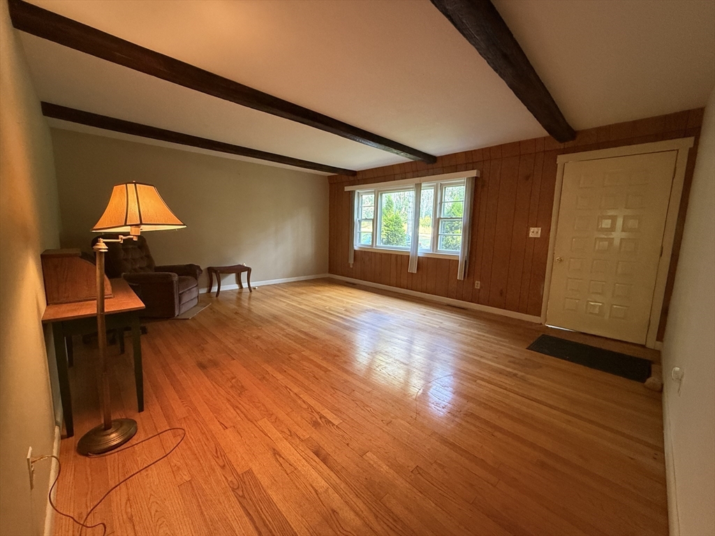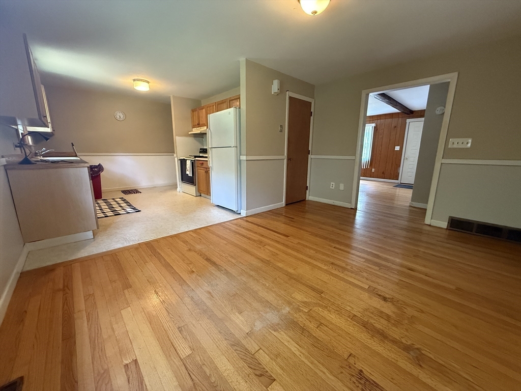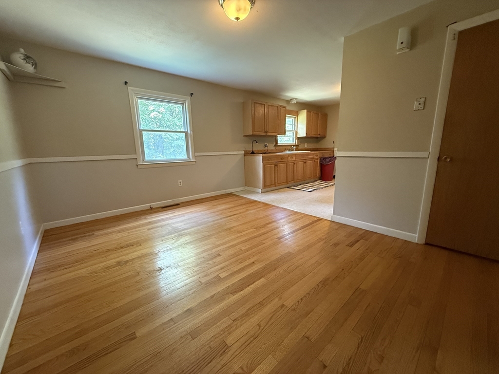 Welcome to this inviting 3-bedroom, 1.5-bath ranch nestled on 1.07 acres in a quiet, tree-lined neighborhood just 15 minutes from Amherst. Offering 1,320 sq ft of comfortable living space, this home blends the tranquility of country living with easy access to town conveniences. Step inside to find a bright and functional layout with hardwood flooring throughout the bedrooms and common areas, perfect for everyday living and entertaining. The spacious living area flows seamlessly into the kitchen and dining space, while large windows bring in abundant natural light. Three well-sized bedrooms and a full bath are complemented by a convenient half bath attached to the master bedroom. Outside, enjoy the expansive yard—ideal for gardening, play, or simply soaking in the peaceful surroundings. The property’s location offers privacy without sacrificing accessibility, with nearby trails, lakes, and community amenities. Whether you’re looking for you